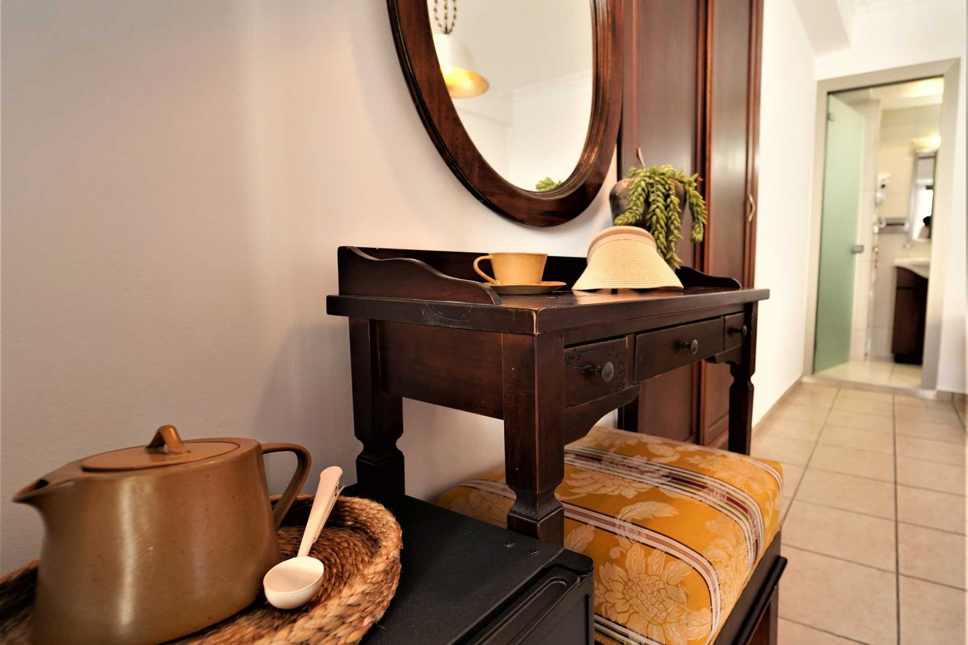 Suite med balkong. Suiten består av soverom og stue. En dobbeltseng eller to enkeltsenger. Mulig med en ekstraseng i sovesofa. Wifi, luftkondisjonering og safe inkludert. Kjøleskap. TV. Hårføner. Badekar eller dusj samt wc. Rengjøring 7 ggr/uke.