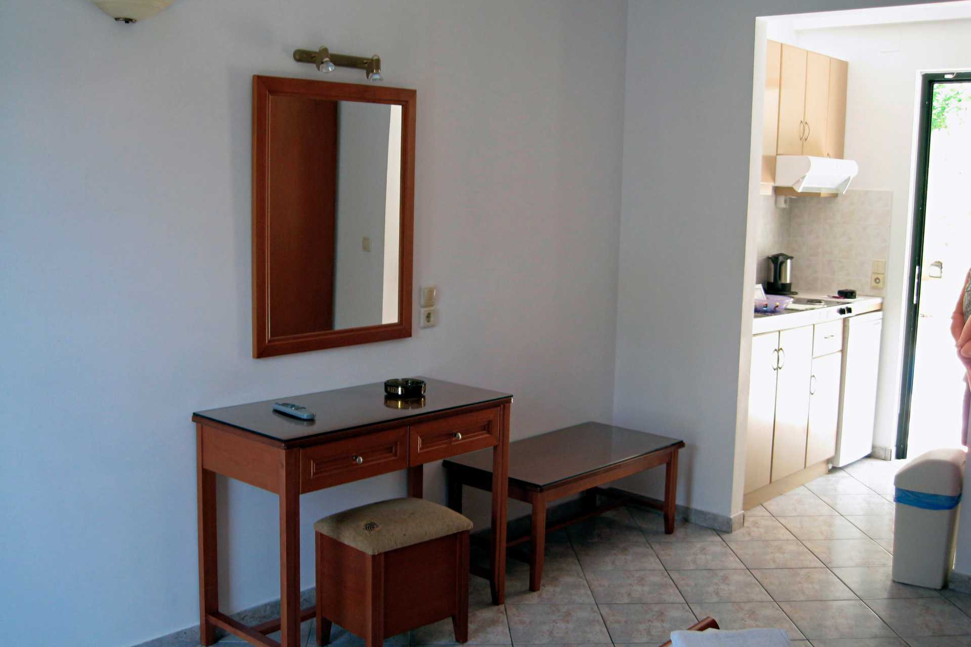 Ettromsleiligheter med balkong eller markterrasse. To enkeltsenger i kombinert stue/minikjøkken. Minikjøkken med kjøleskap, kokeplater, vannkoker og enkelt kjøkkenutstyr. Spisebord på uteplassen. Wifi inkludert. Luftkondisjonering og safe mot avgift. TV. Dusj og wc, hårføner. Rengjøring 6 ggr/uke.