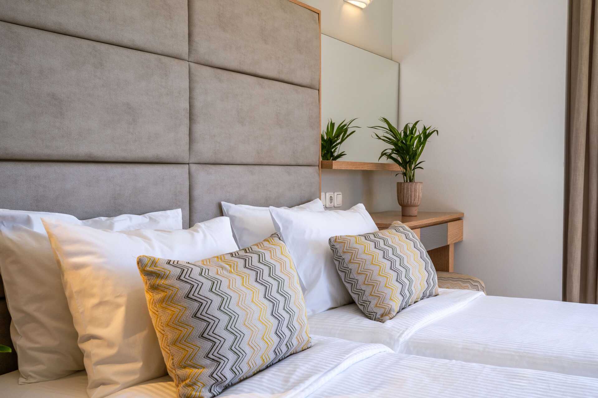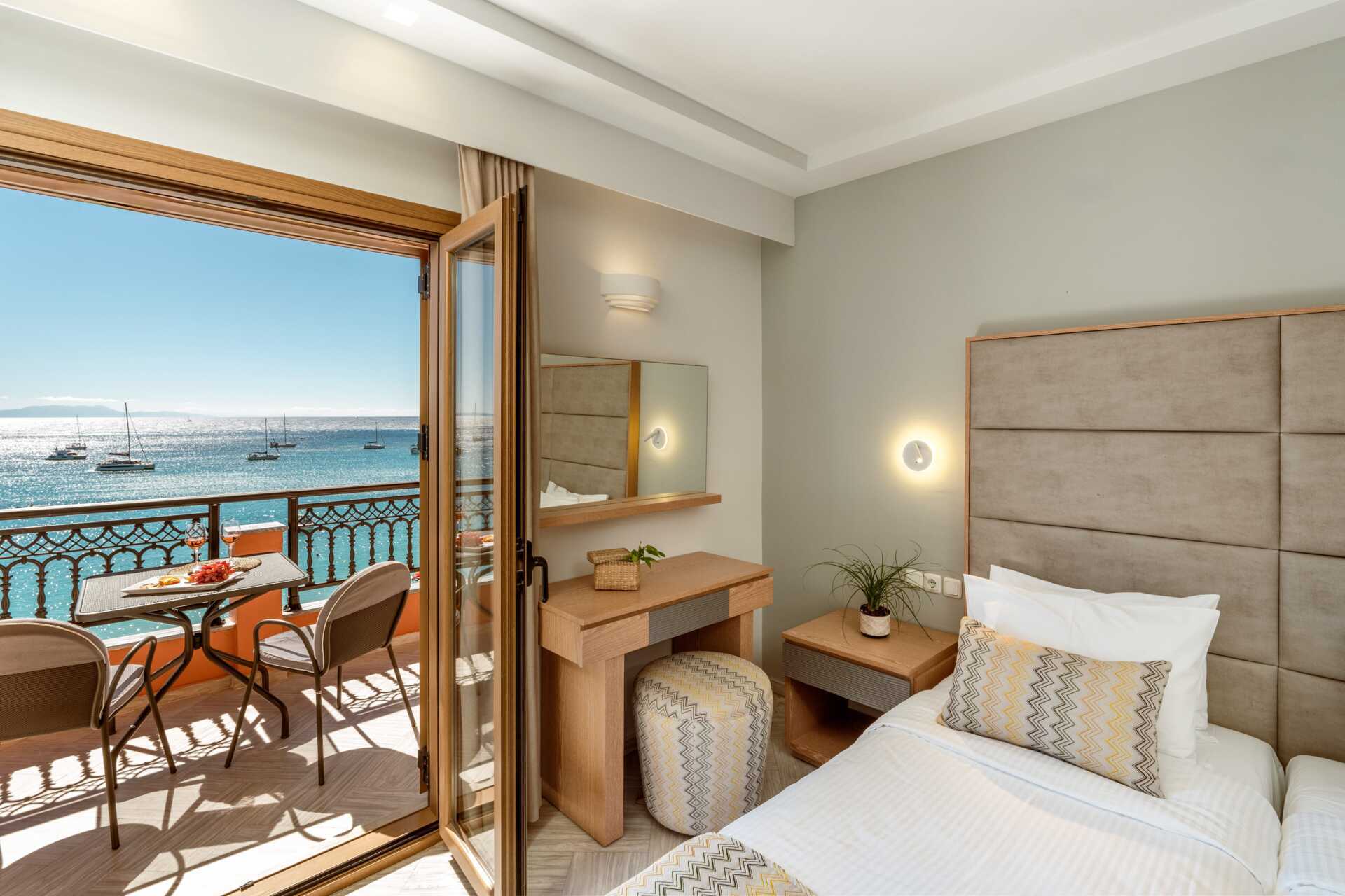 Ettromsleilighet med balkong og havutsikt. Varierende størrelse og moderne innredning. Minikjøkken. To enkeltsenger. Mulig med ekstrasenger i sovesofa. Minikjøkken med kokeplater, kjøleskap, brødrister, kaffetrakter, vannkoker, mikrobølgeovn og enkelt kjøkkenutstyr. Wifi og luftkondisjonering inkludert. Safe mot avgift. TV. Hårføner. Dusj og wc. Rengjøring 6 ggr/uke.