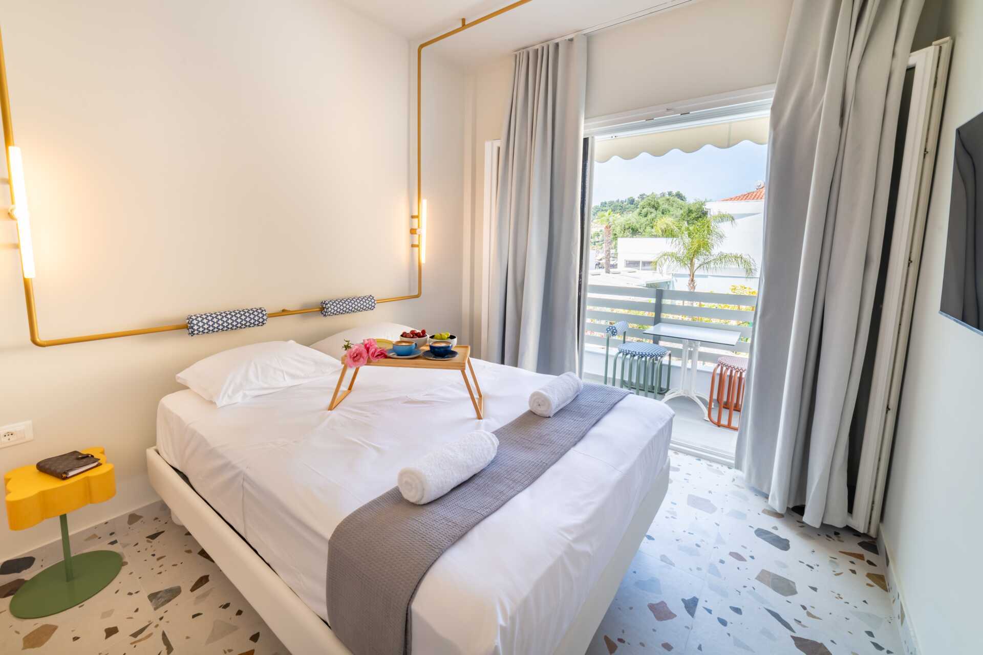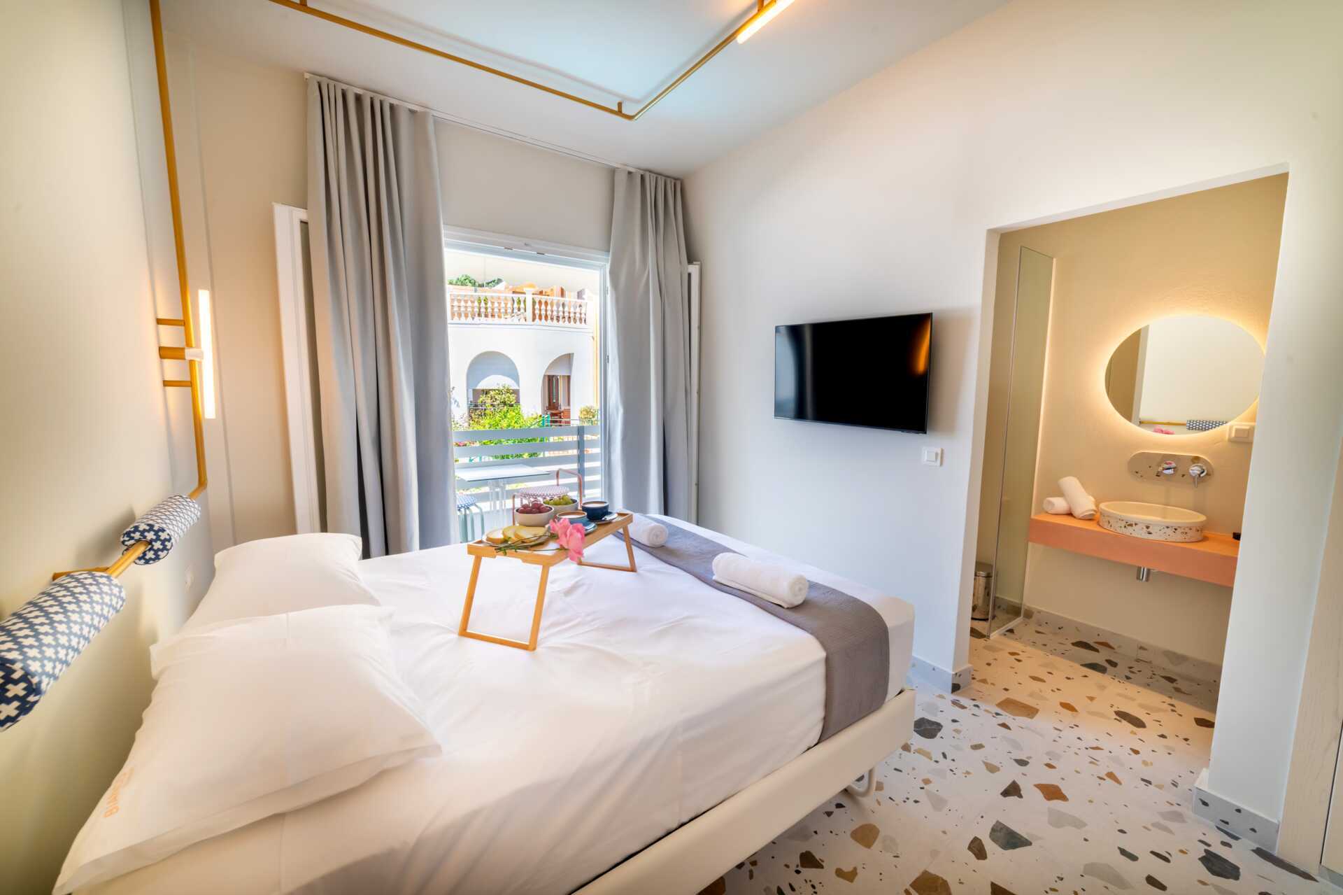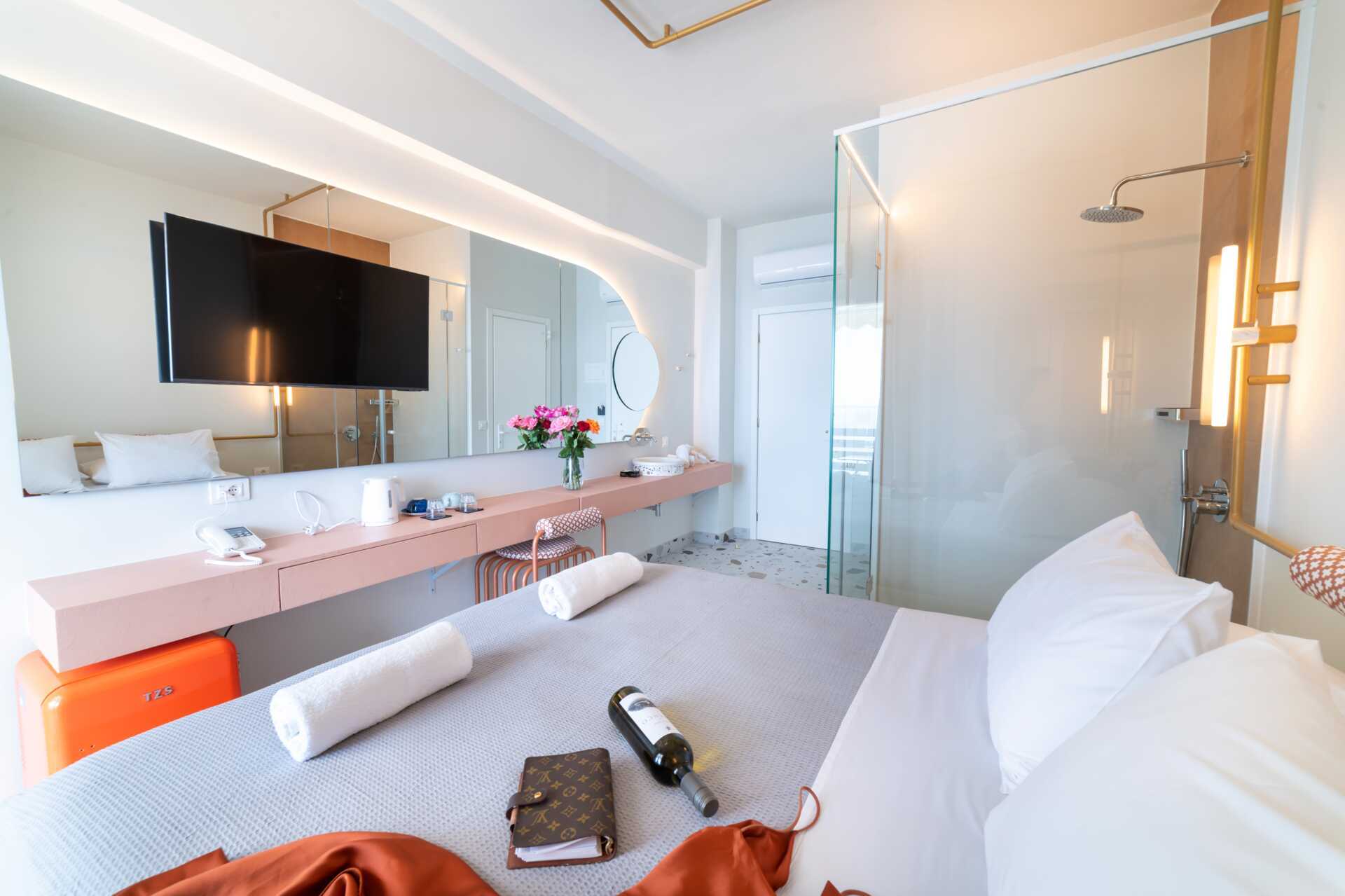 Juniorsuite med balkong og havutsikt. En dobbeltseng. Wifi, luftkondisjonering og safe inkludert. Lite kjøleskap. Vannkoker. TV. Hårføner. Badekåper og tøfler Badekar og dusj samt wc. Rengjøring 7 ggr/uke.