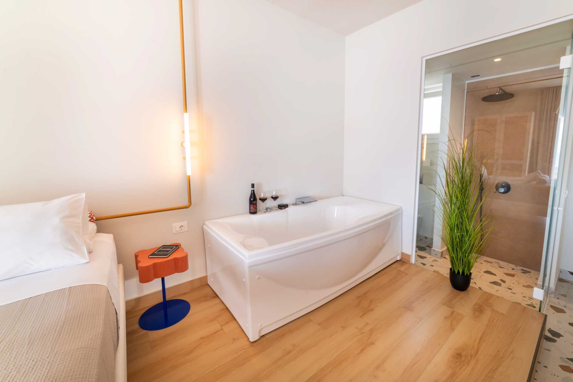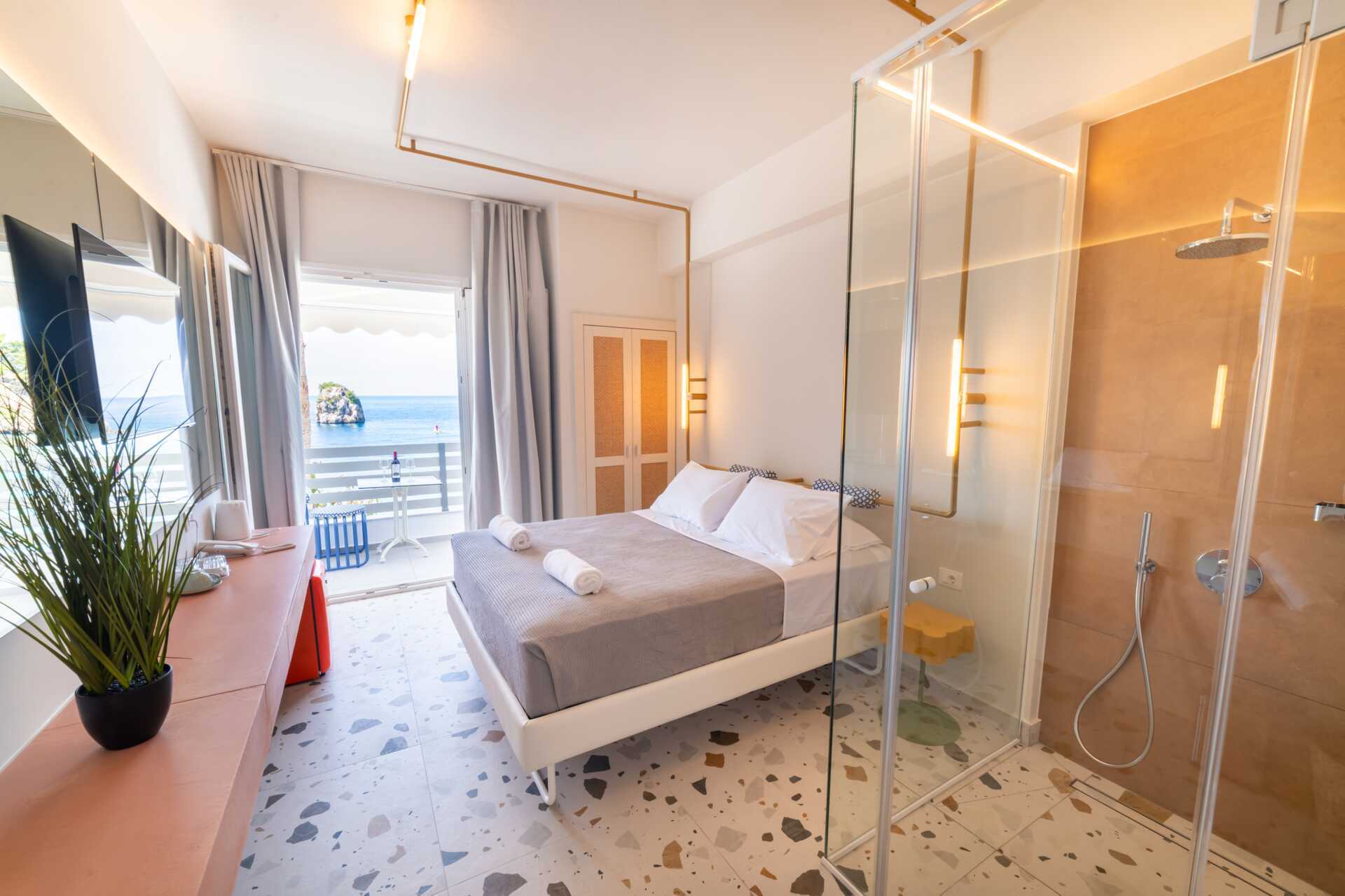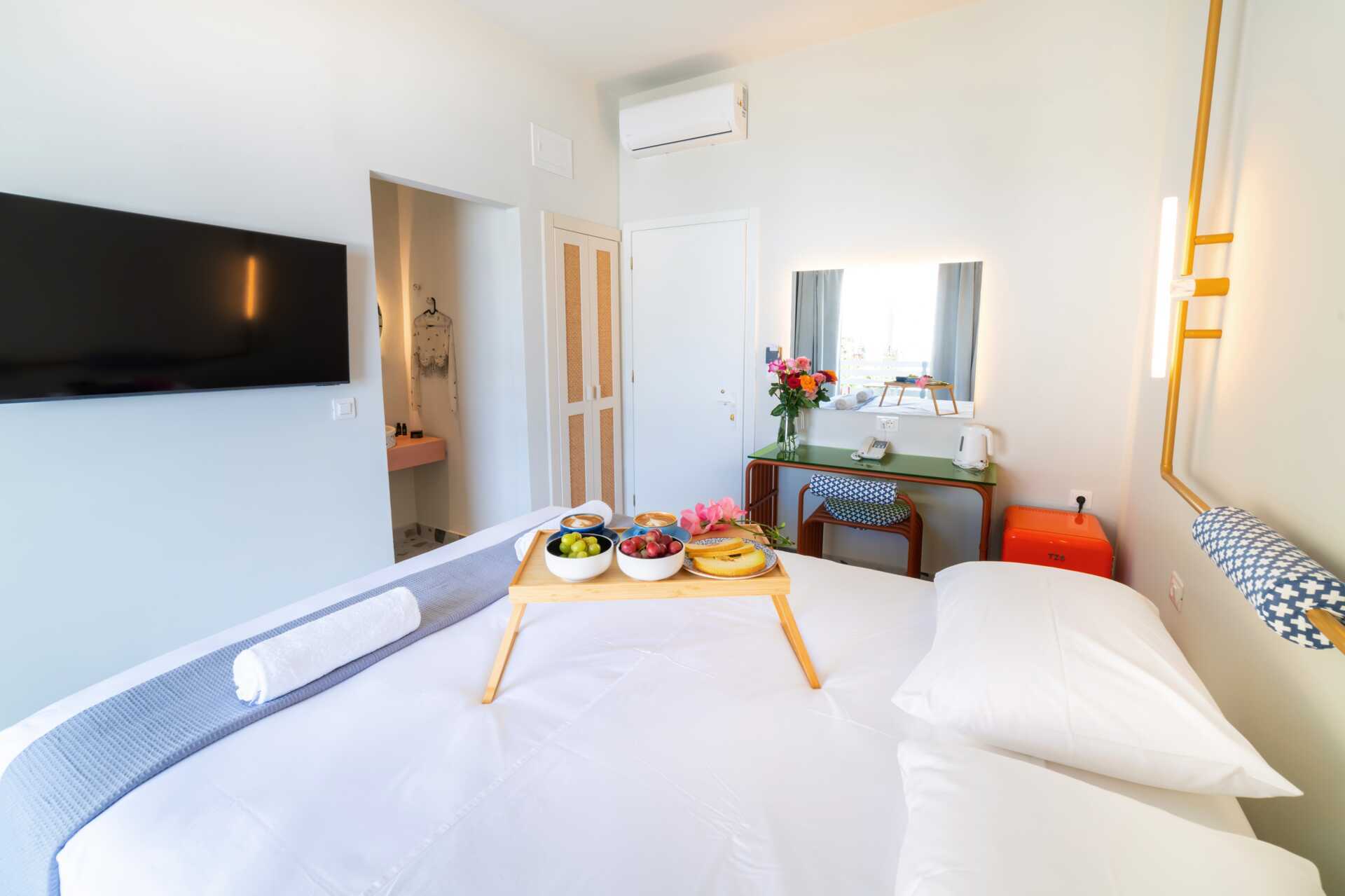 Juniorsuite med balkong og havutsikt. En dobbeltseng. Wifi, luftkondisjonering og safe inkludert. Lite kjøleskap. Vannkoker. TV. Hårføner. Badekåper og tøfler Badekar og dusj samt wc. Rengjøring 7 ggr/uke.