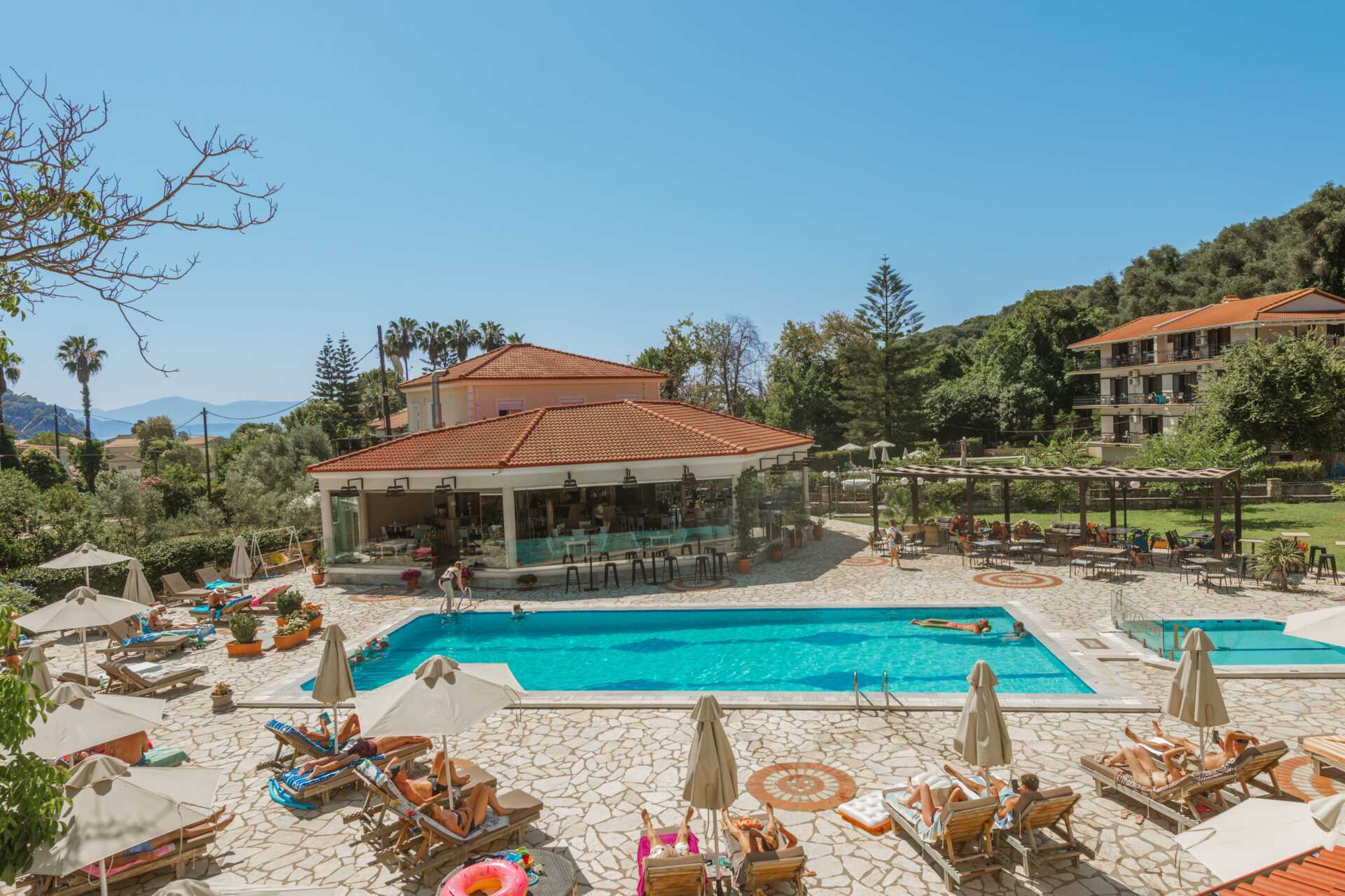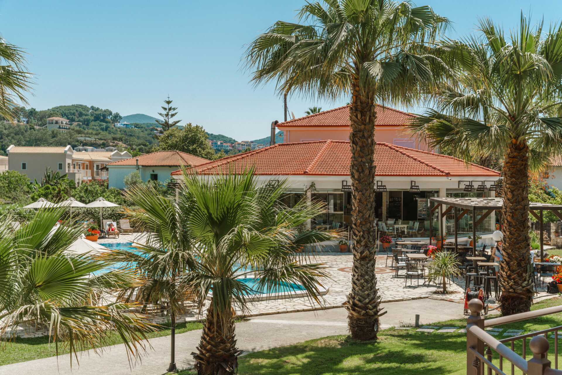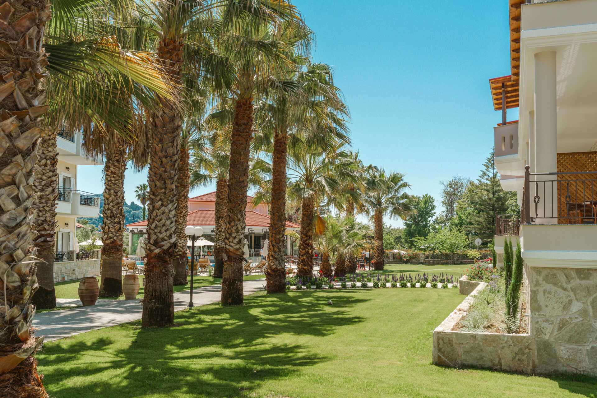 Hotellet består av tre bygninger som ligger i en vakker hage med mye grøntområder. Hagen har også et bassengområde med basseng og et separat barnebasseng. Solsenger og parasoller inkludert.