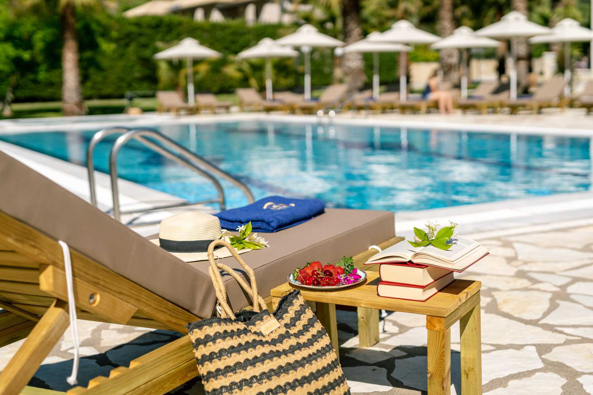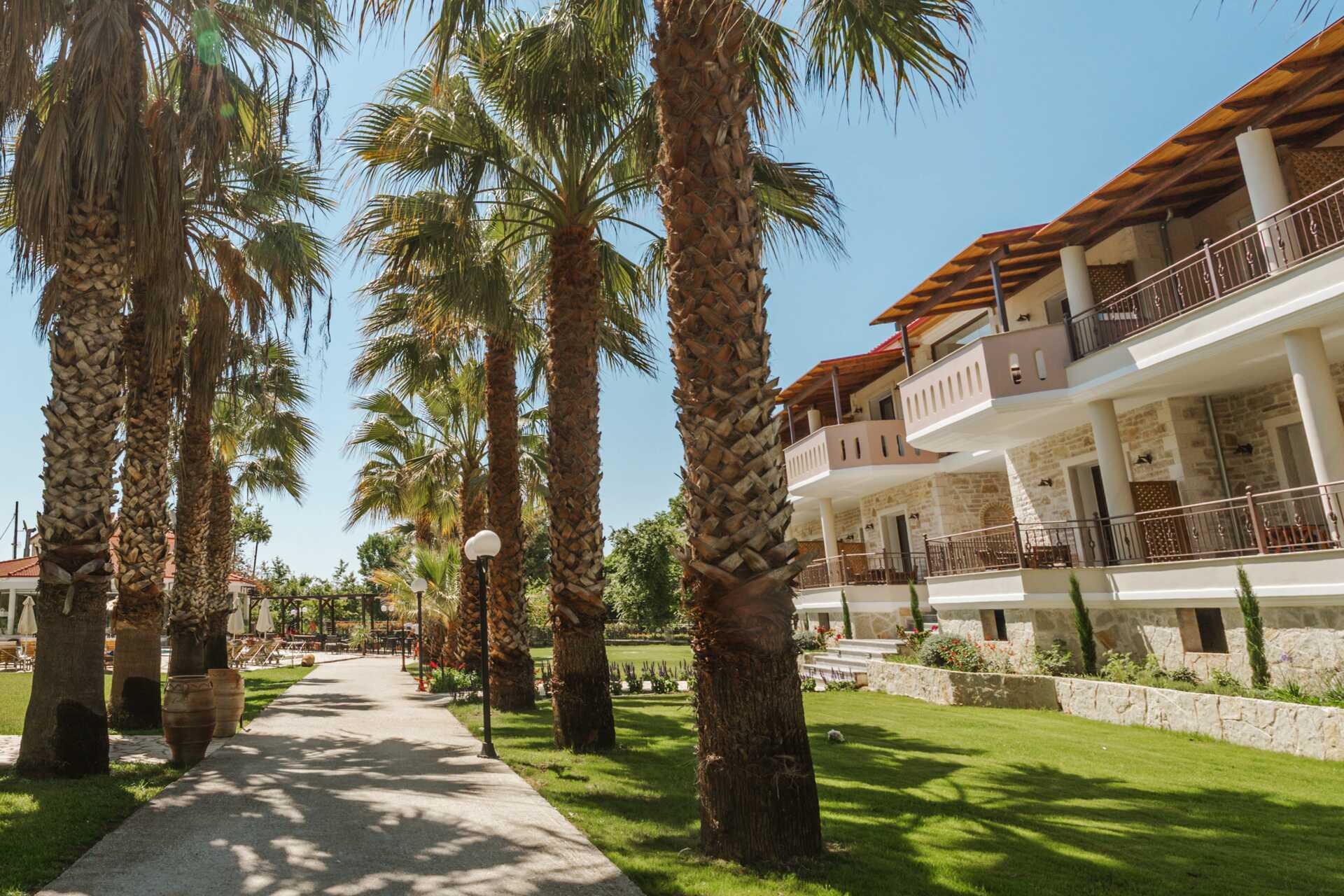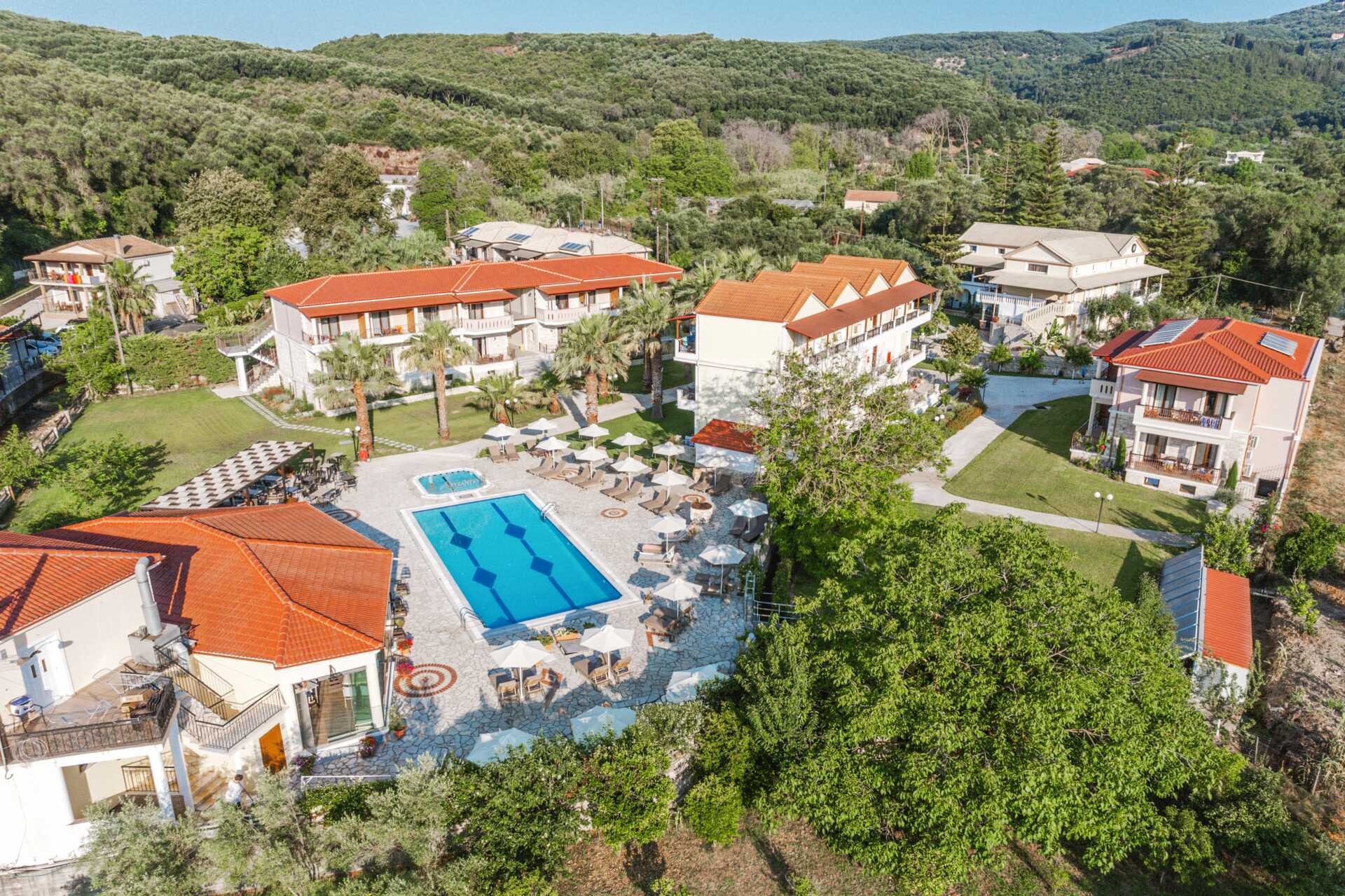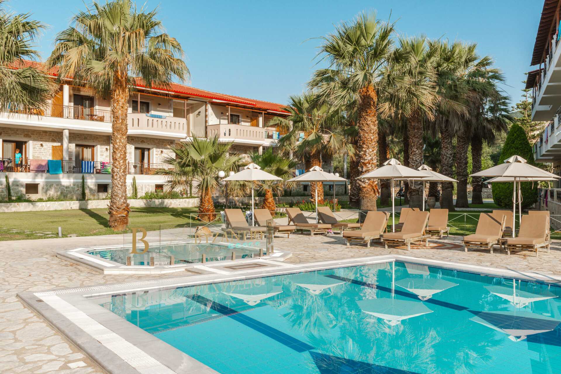 Hotellet består av tre bygninger som ligger i en vakker hage med mye grøntområder. Hagen har også et bassengområde med basseng og et separat barnebasseng. Solsenger og parasoller inkludert.