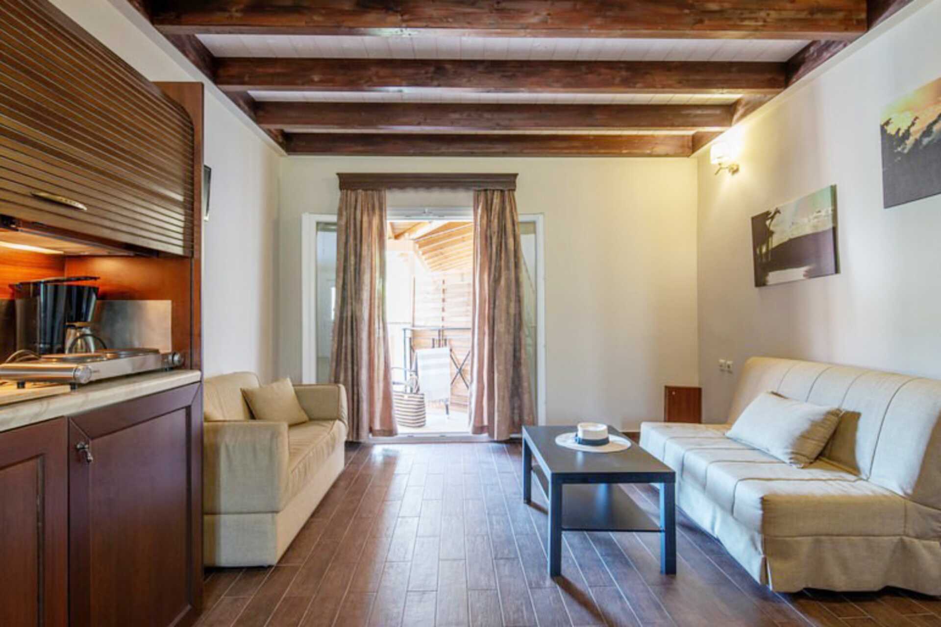 Ettromsleilighet superior med balkong eller terrasse og utsikt mot hagen. Minikjøkken. En dobbeltseng eller to enkeltsenger. Mulig med en ekstraseng i sovesofa. Vær oppmerksom på at leiligheten kan bli trang når ekstrasengen er i bruk. Minikjøkken med kjøleskap, kokeplater, kaffetrakter, vannkoker og enkelt kjøkkenutstyr. Spisebord på balkong eller terrasse. Luftkondisjonering, safe og wifi inkludert. TV. Hårføner. Badekar eller dusj og wc. Rengjøring 7 ggr/uke. Barn under 2 år regnes inn i maksantallet i leiligheten.