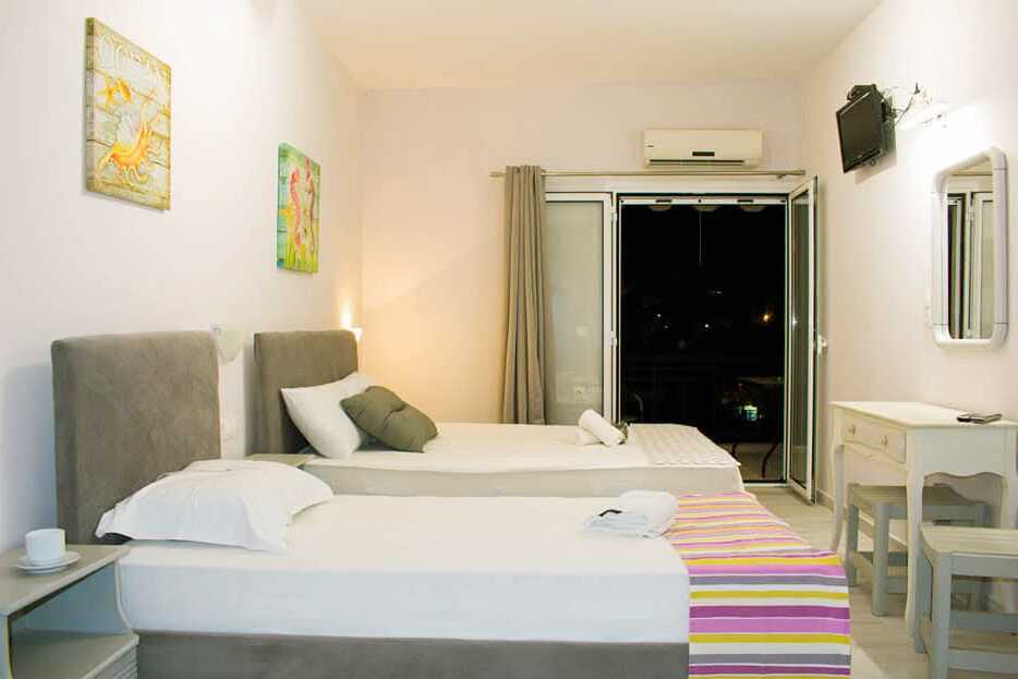Ettromsleilighet med balkong. Soverom og kombinert med minikjøkken. En dobbeltseng eller to enkeltsenger. Minikjøkken med kjøleskap, kokeplater og enkelt kjøkkenutstyr. Wifi og safe inkludert. Luftkondisjonering mot avgift. TV. Baderom med dusj og wc. Rengjøring 3 ggr/uke.