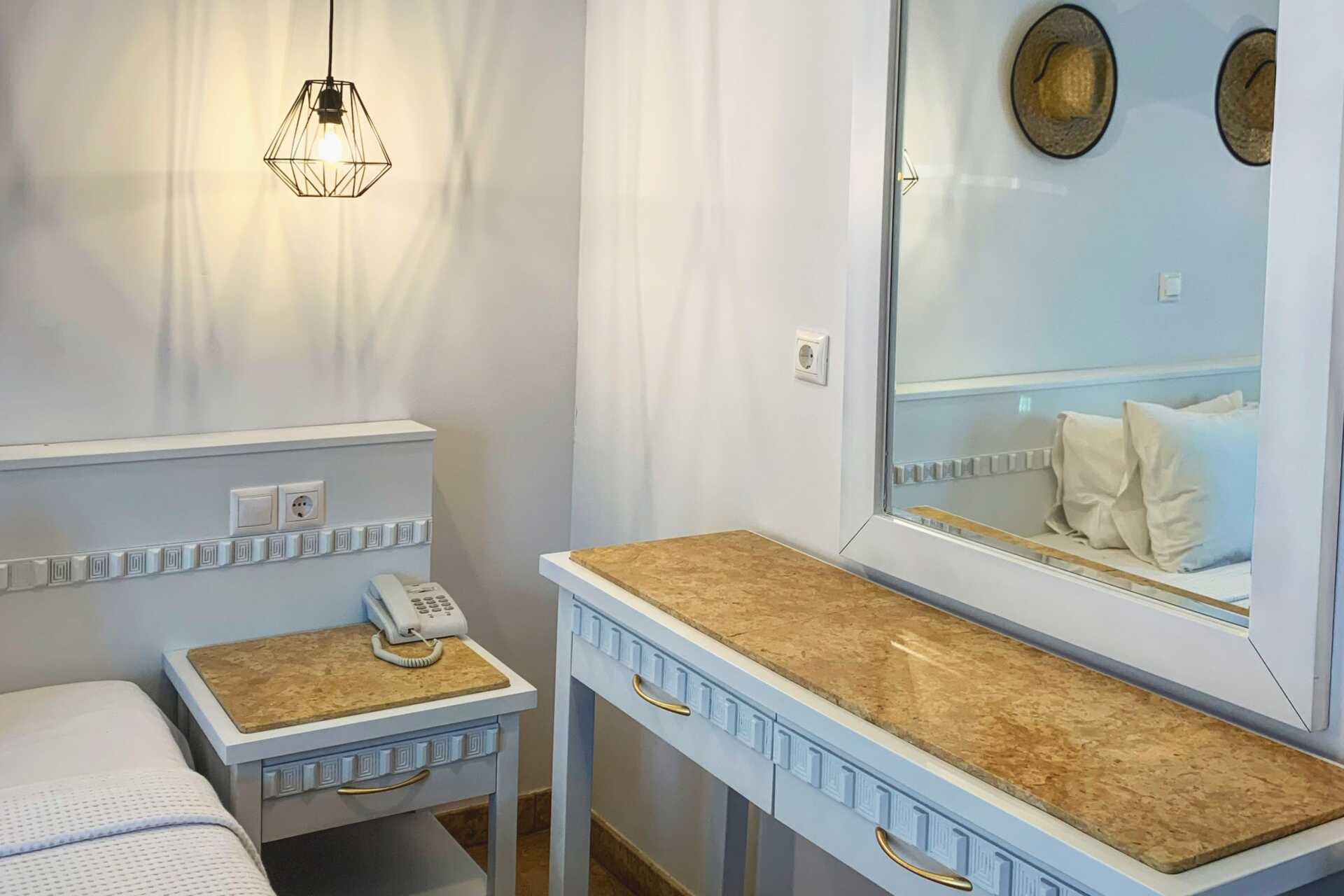 Ettromsleilighet med terrasse, markedsterrasse eller balkong. Minikjøkken. To enkeltsenger. Minikjøkken med kokeplater, kjøleskap, vannkoker og enkelt kjøkkenutstyr. Wifi, safe og luftkondisjonering inkludert. TV. Hårføner. Dusj og wc. Rengjøring 7 ggr/uke.