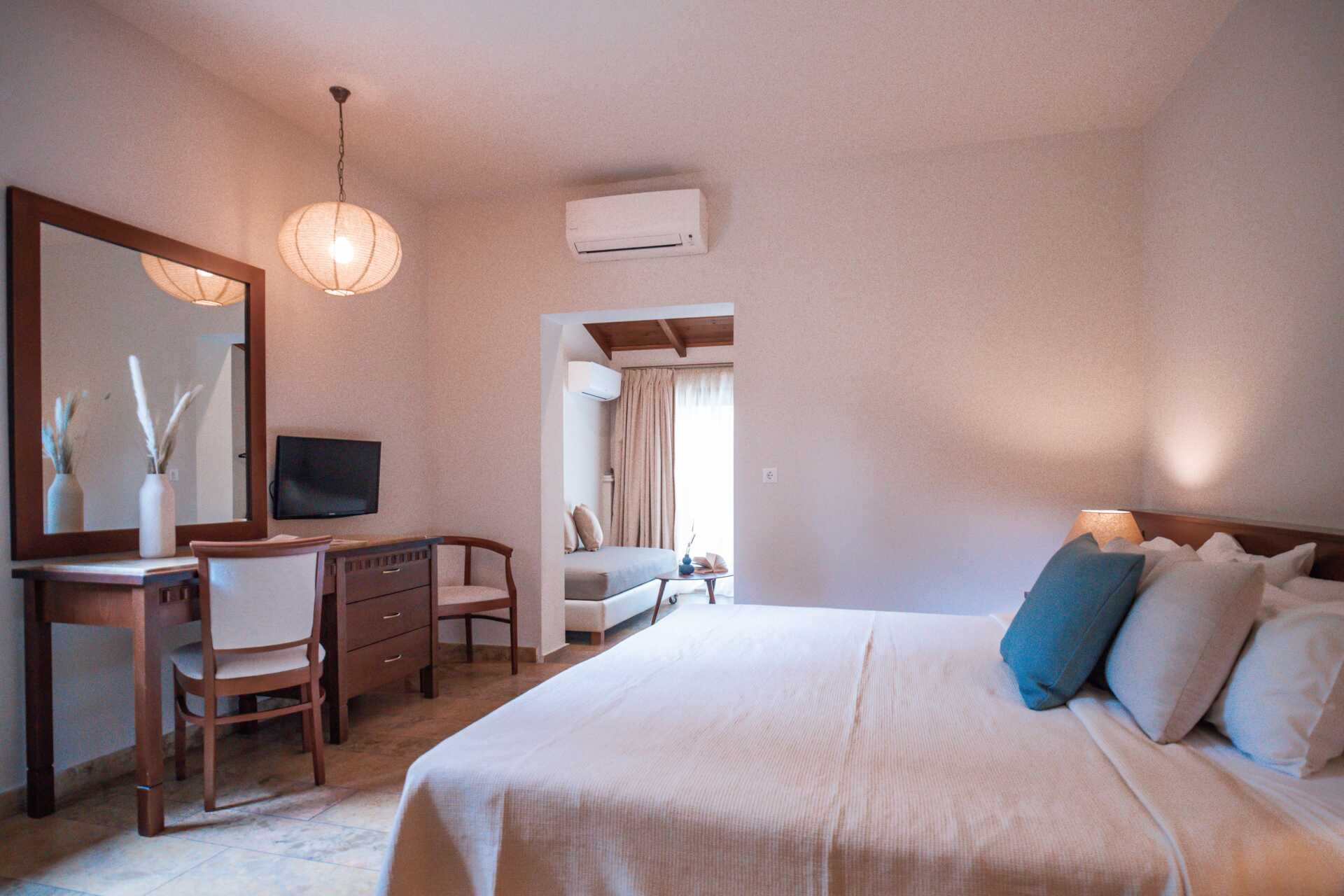 Ettromsleilighet med balkong, terrasse eller markterrasse. Leilighetene ble renovert til sommeren 2023. Minikjøkken. To enkeltsenger. Minikjøkken med kokeplater, kjøleskap, vannkoker og enkelt kjøkkenutstyr. Wifi, safe og luftkondisjonering inkludert. TV. Hårføner. Baderom med dusj og wc. Rengjøring 7 ggr/uke.