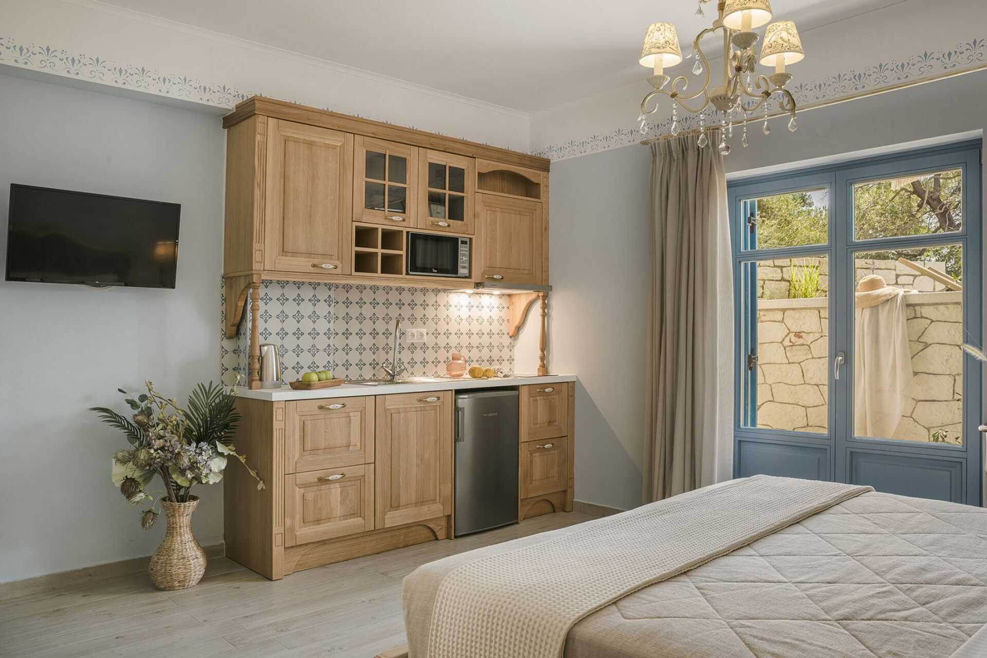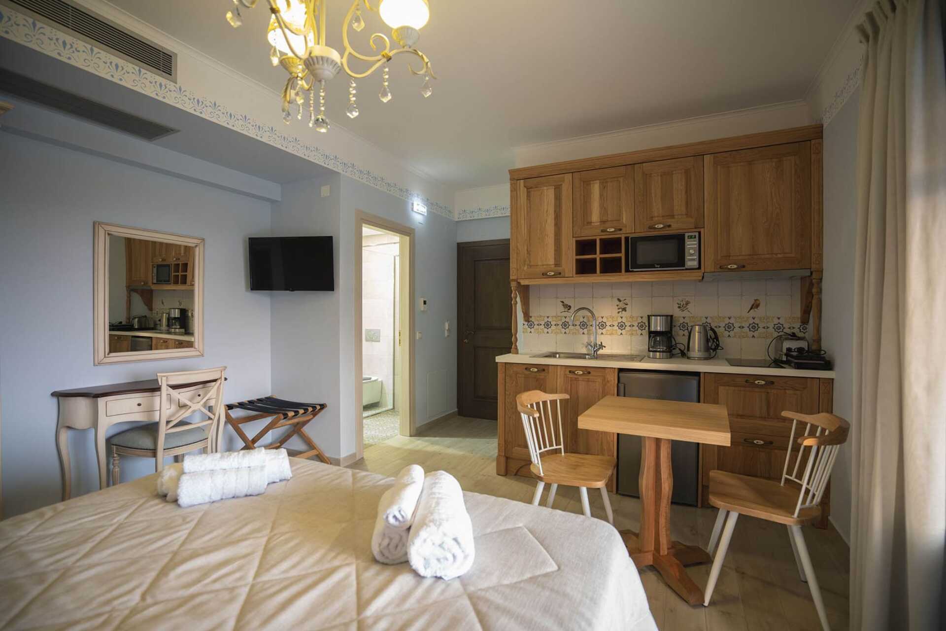 Ettromsleilighet superior med balkong og bassengutsikt. Soverom kombinert med minikjøkken. En dobbeltseng. Minikjøkken med kokeplater, kjøleskap, vannkoker, kaffetrakter, sandwichgrill, brødrister og enkel kjøkkenutstyr. Wifi, luftkondisjonering og safe inkludert. TV. Strykejern og strykebrett kan lånes i resepsjonen. Hårføner. Dusj og wc. Rengjøring 7 ggr/uke.