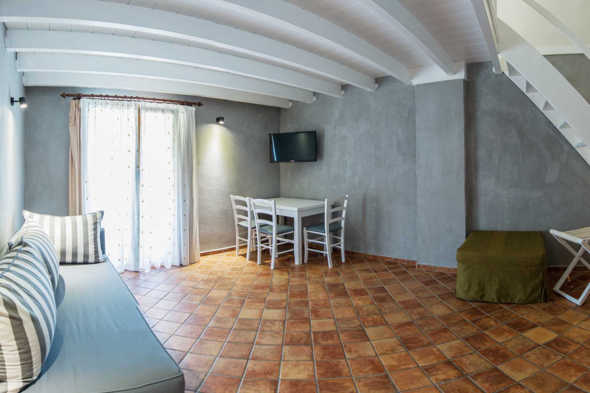 Dobbeltrom i etasje med balkong og havutsikt. En trapp opp er det sovehems med to enkeltsenger. På entréplan er det stue med mulighet for ekstrasenger i sovesofa. En flaske vann i leiligheten ved ankomst. Wifi, luftkondisjonering og safe inkludert. TV. Badekar eller dusj samt wc. Rengjøring 6 ggr/uke.