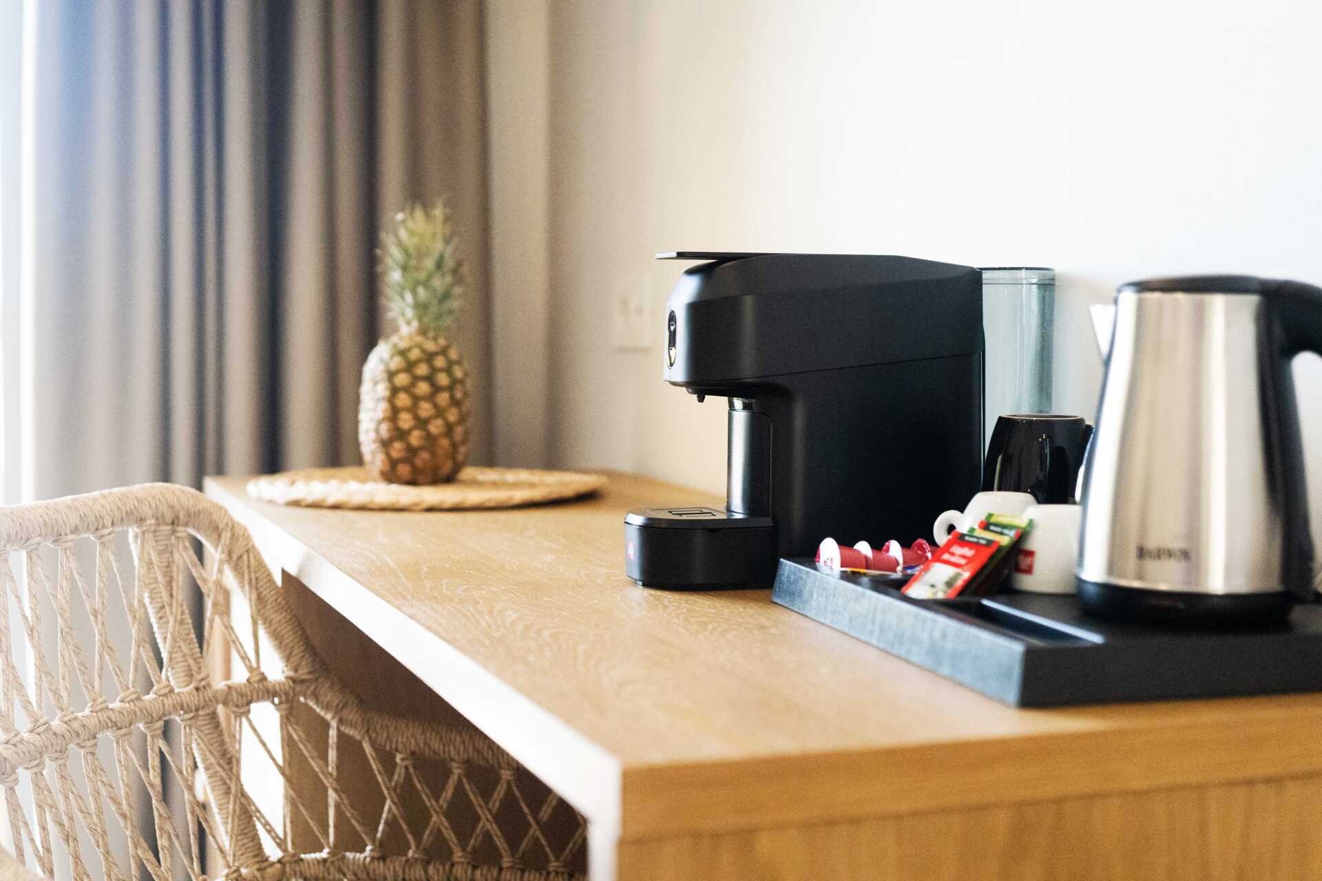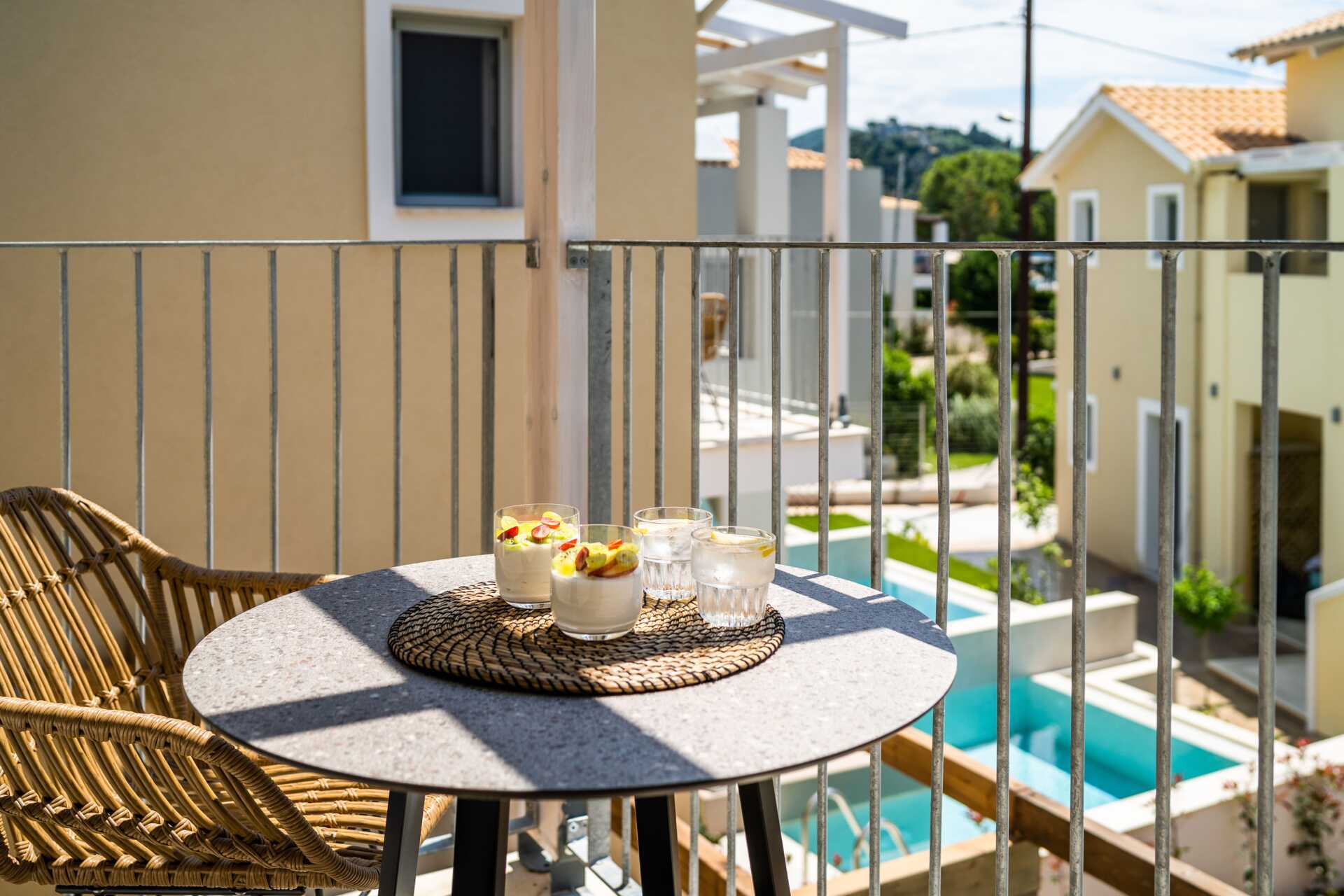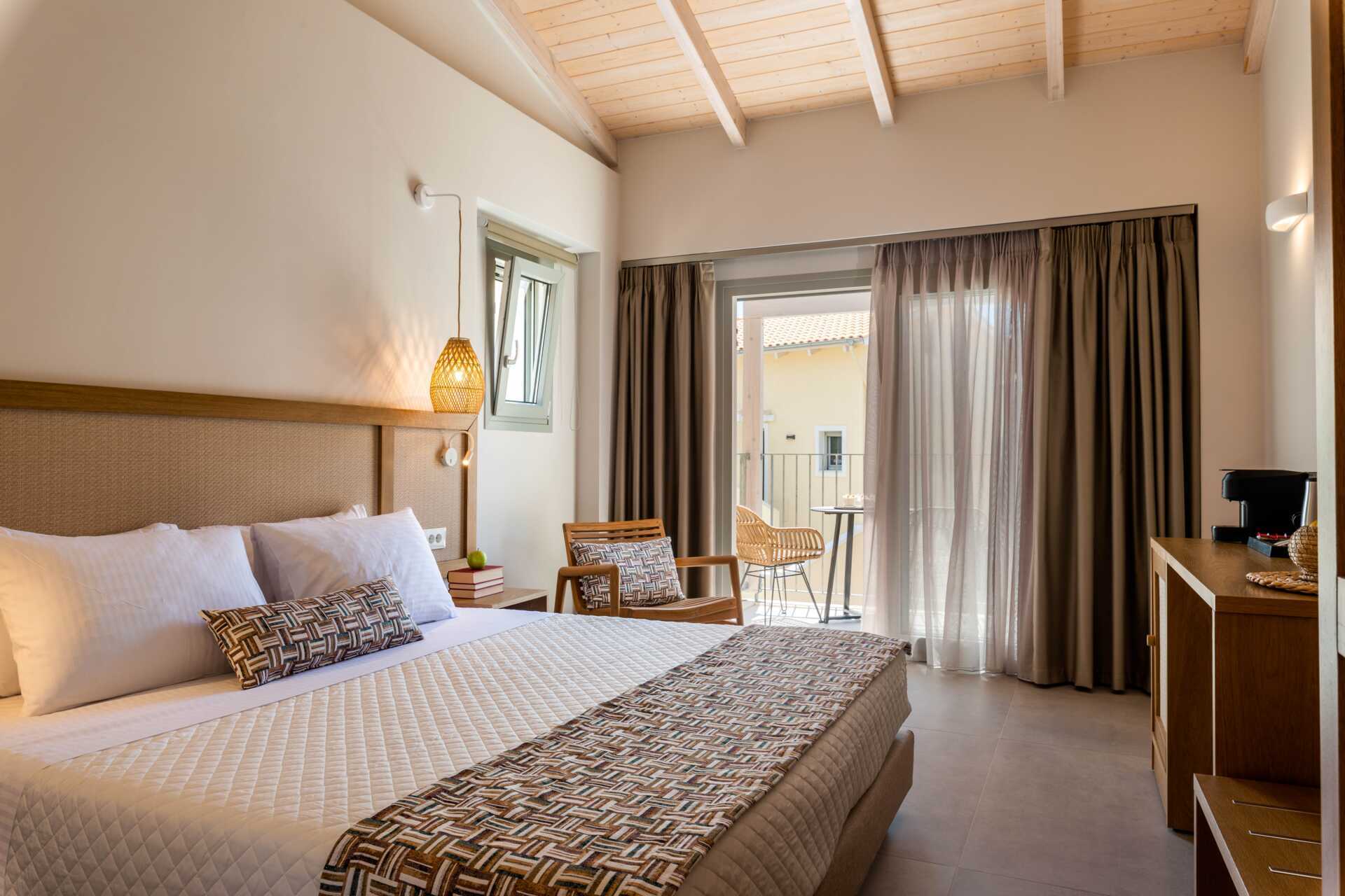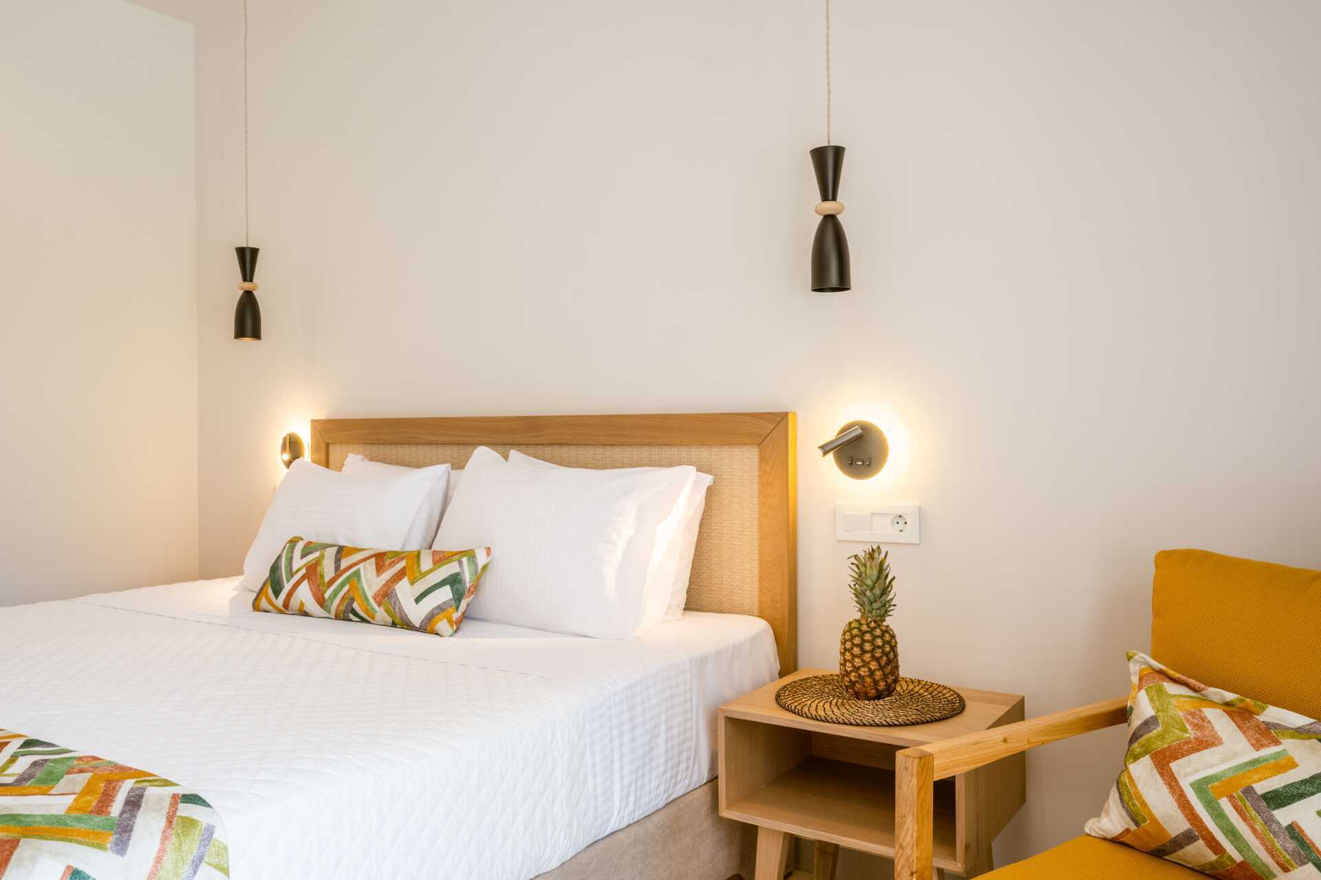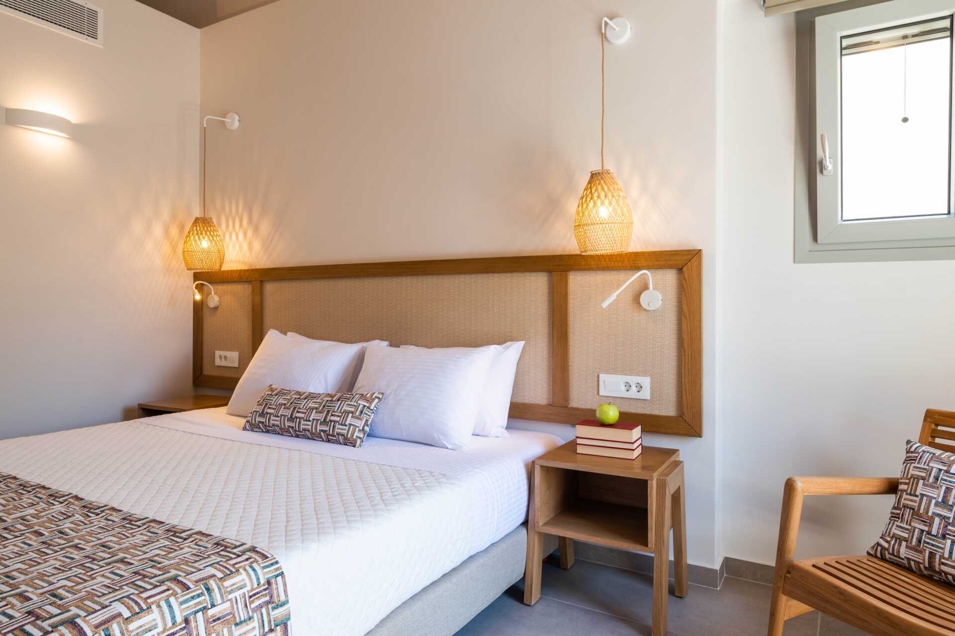 Dobbeltrom med balkong, noen med havutsikt. Stue med sovesofaer samt et bad med badekar og wc. En trapp opp er det soverom med dobbeltseng, balkong og bad med hårføner, dusj og wc. Wifi, luftkondisjonering og safe er inkludert. Kjøleskap. Vannkoker samt kaffe og te. Illy kaffemaskin, kapsler er inkludert ved ankomst og kan deretter kjøpes i resepsjonen. TV. Tøfler. Rengjøring 7 ggr/uke.