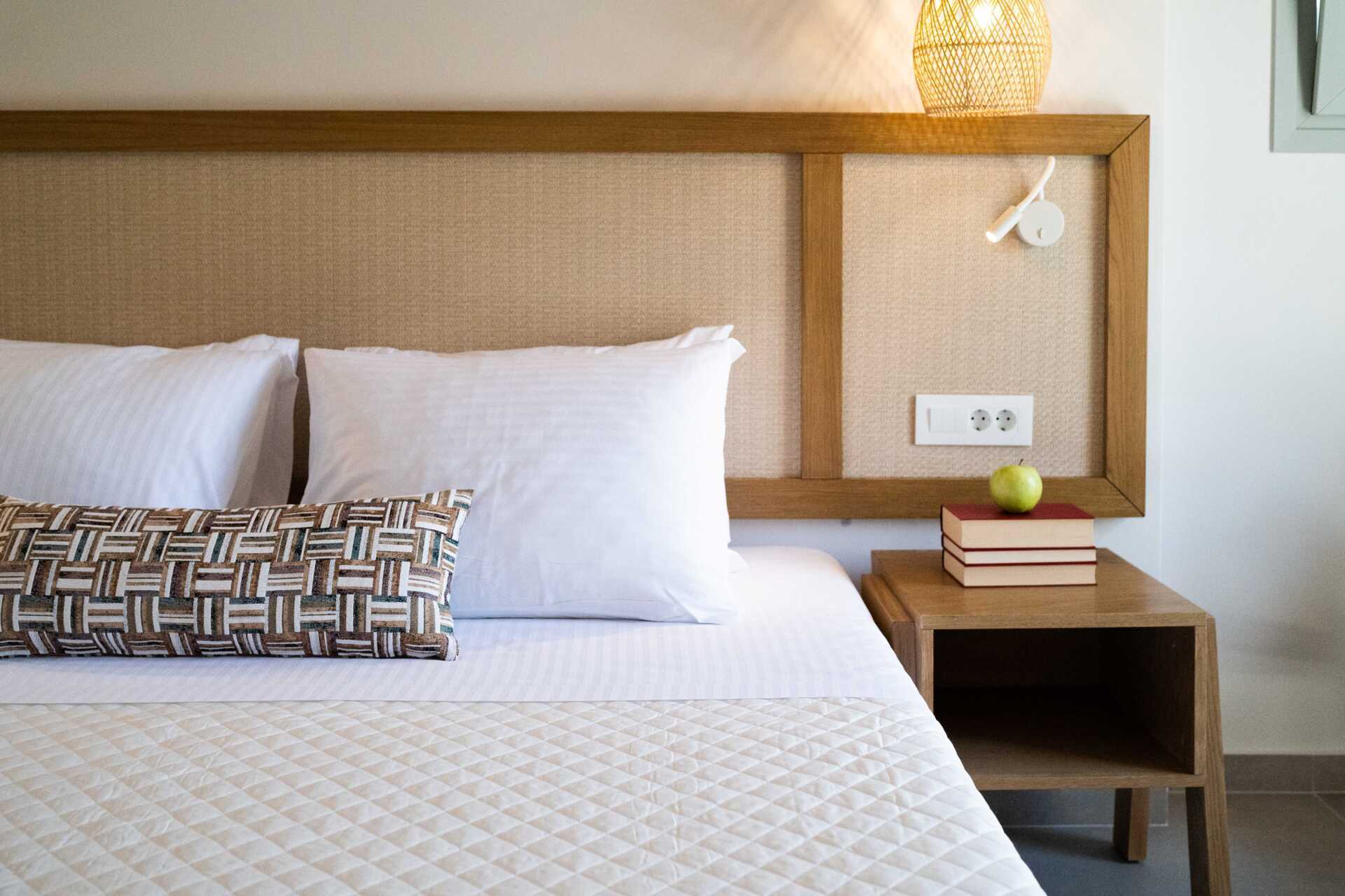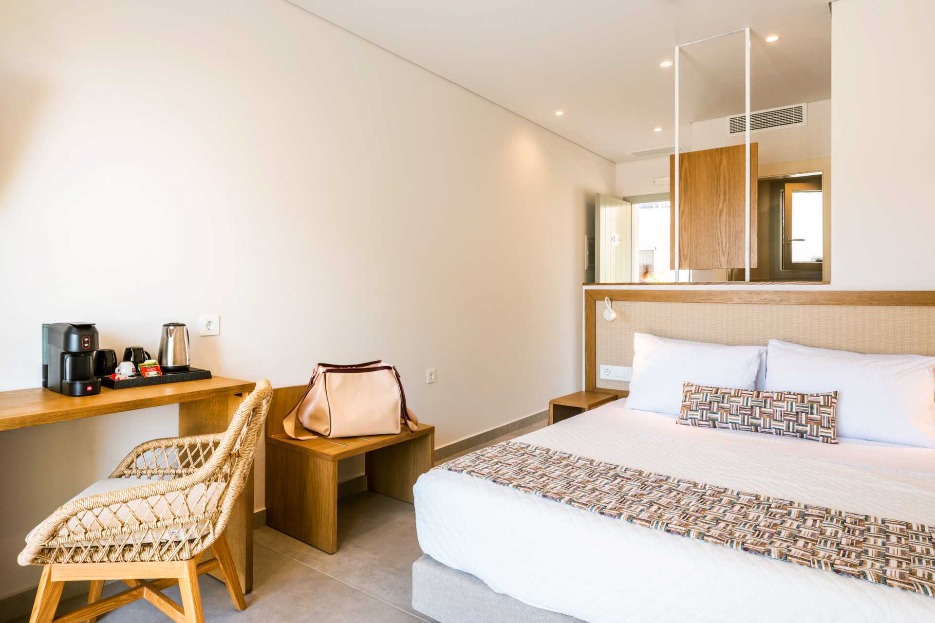 Dobbeltrom med balkong, noen med havutsikt. En dobbeltseng. Wifi, luftkondisjonering og safe er inkludert. Kjøleskap. Vannkoker samt kaffe og te. Illy kaffemaskin, kapsler er inkludert ved ankomst og kan deretter kjøpes i resepsjonen. TV. Hårføner. Tøfler. Baderom med dusj og wc. Rengjøring 7 ggr/uke.