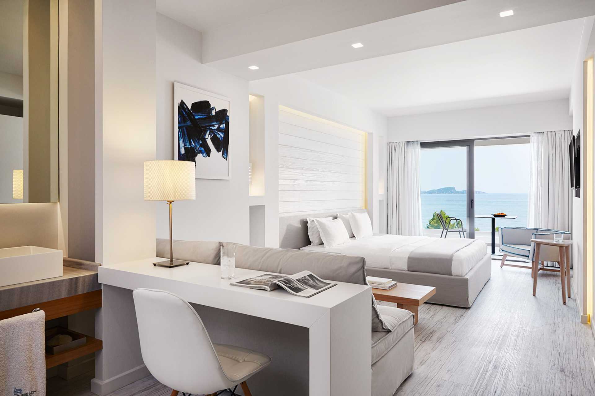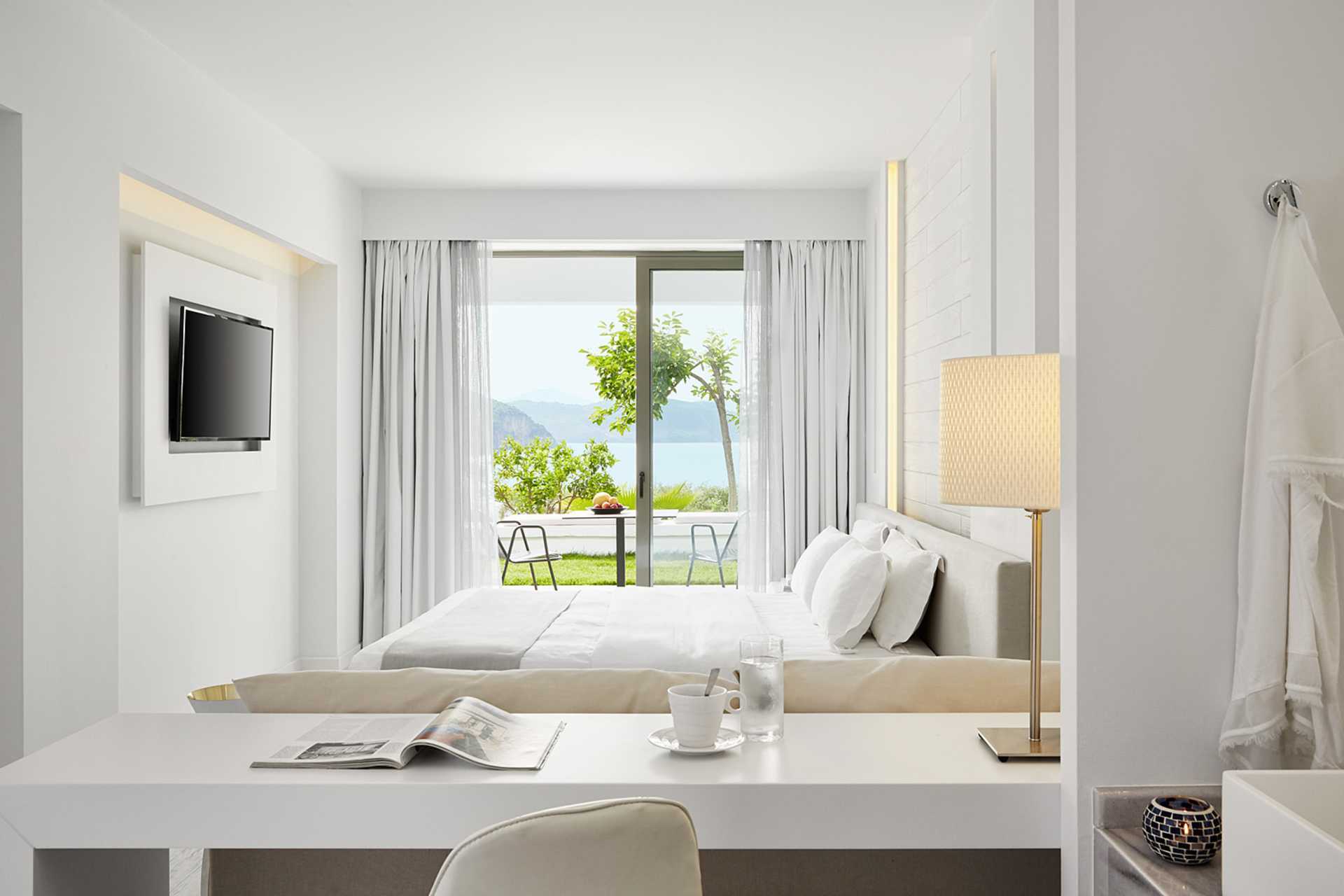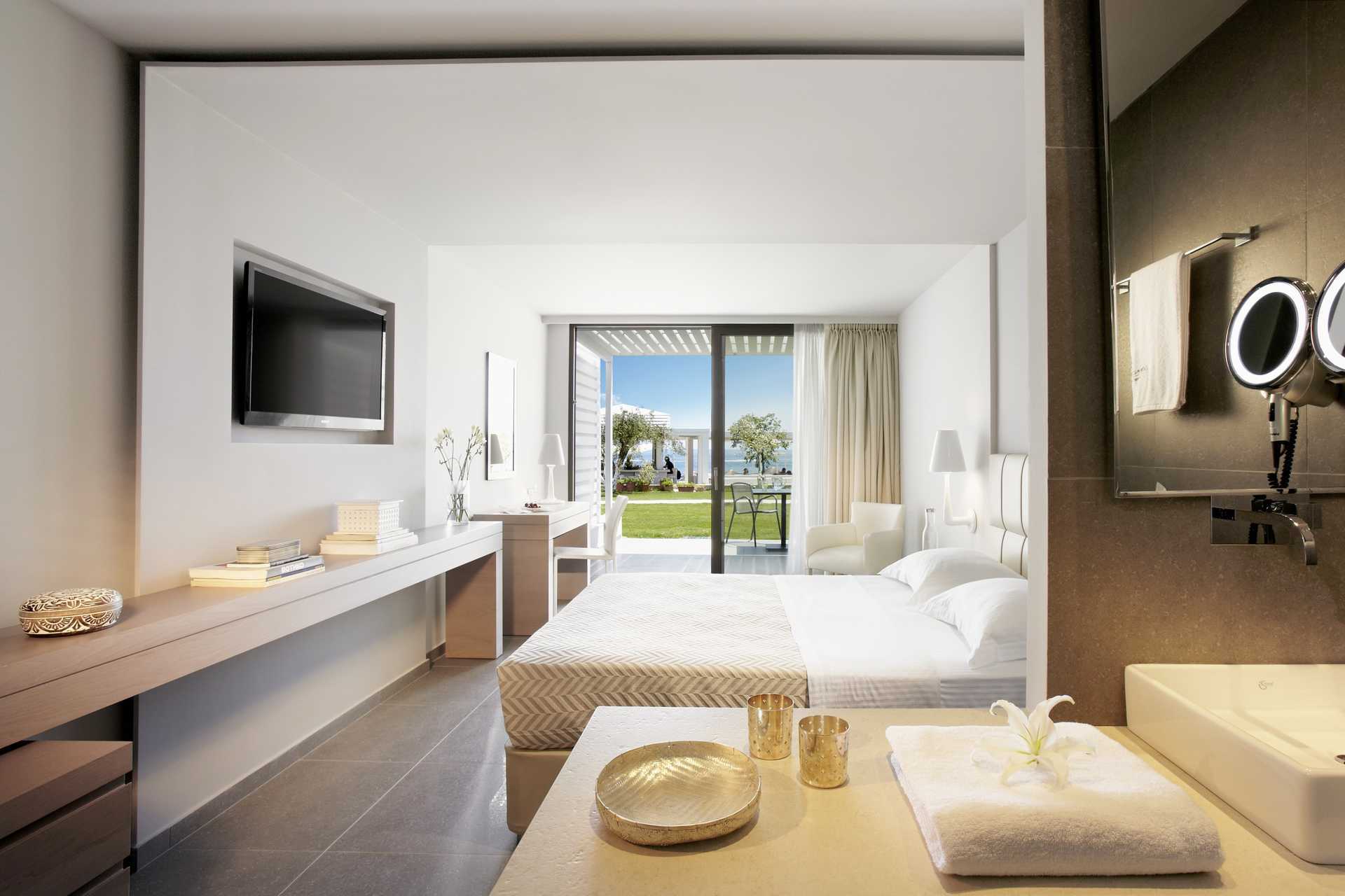 Executiverom med balkong eller terrasse og havutsikt. Rommene ligger i hovedbygningen ved bassenget. En stor dobbeltseng. Wifi, luftkondisjonering og safe inkludert. Kjøleskap. TV. Tøfler. Hårføner. Baderom med dusj og wc. Rengjøring 7 ggr/uke.