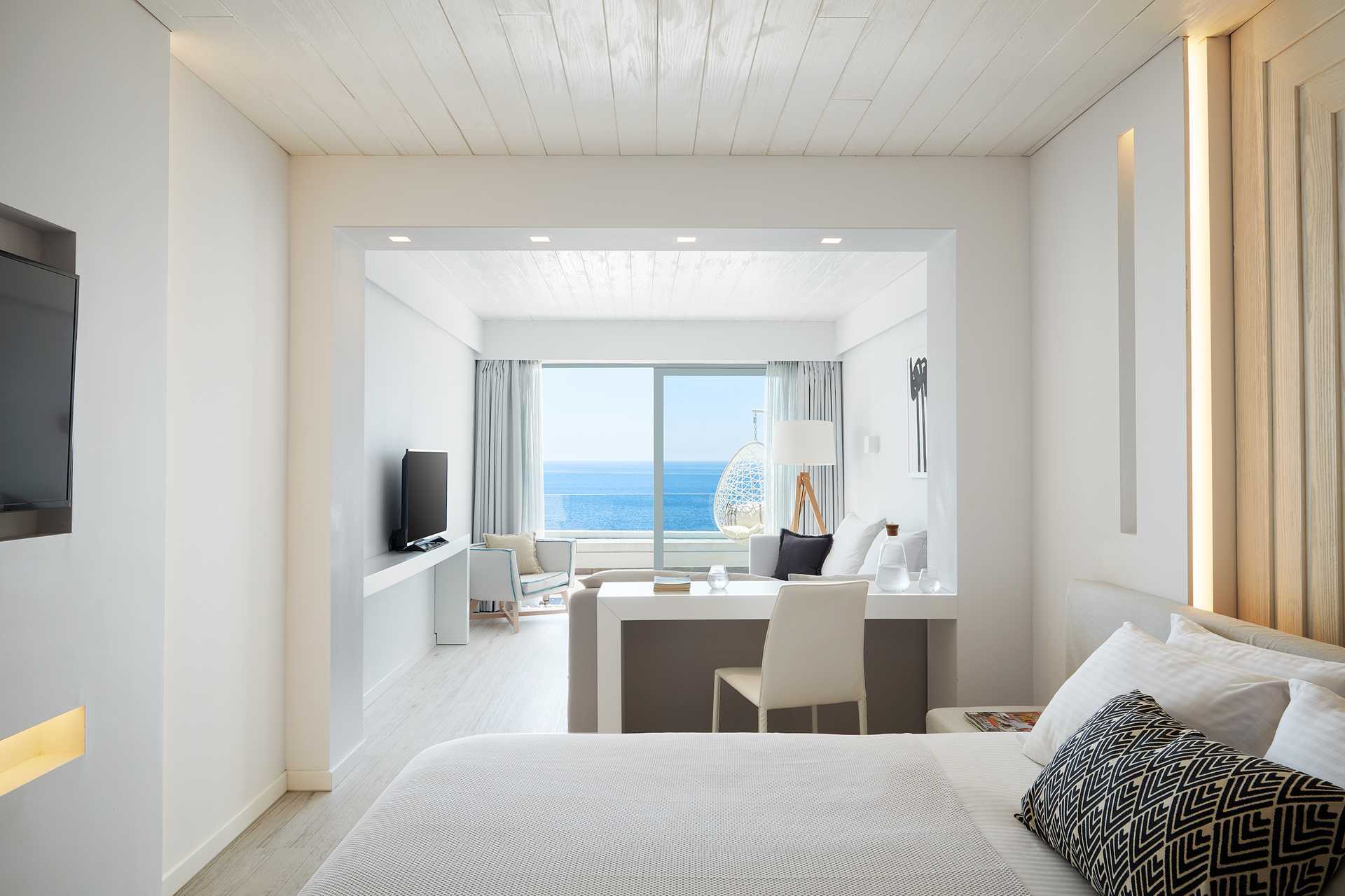 Superiorrom med balkong og havutsikt. Rommene ligger i hovedbygningen ved bassenget. En dobbeltseng eller to enkeltsenger. Wifi, luftkondisjonering og safe inkludert. Kjøleskap. TV. Tøfler. Hårføner. Baderom med dusj og wc. Rengjøring 7 ggr/uke.