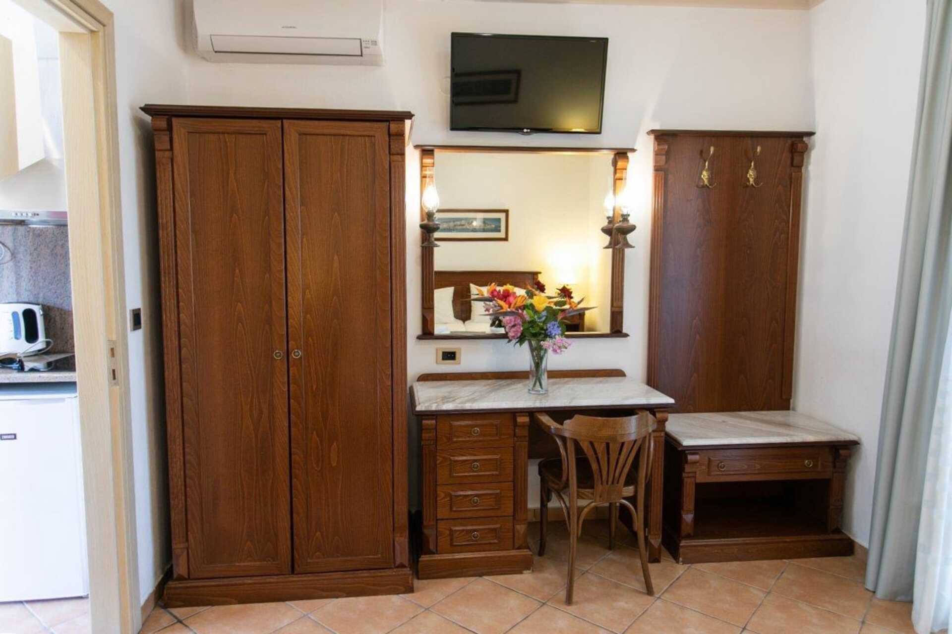 Ettromsleiligheter superior med balkong. En dobbeltseng eller to enkeltsenger. Mulig med ekstraseng i enkeltseng. Minikjøkken med kokeplater, kjøleskap, kaffetrakter, vannkoker, enten mikrobølgeovn eller stekeovn samt enkelt kjøkkenutstyr. Wifi og luftkondisjonering inkludert. Safe mot avgift. Takvifte. TV. Badekar eller dusj samt wc, hårføner. Rengjøring 6 ggr/uke.