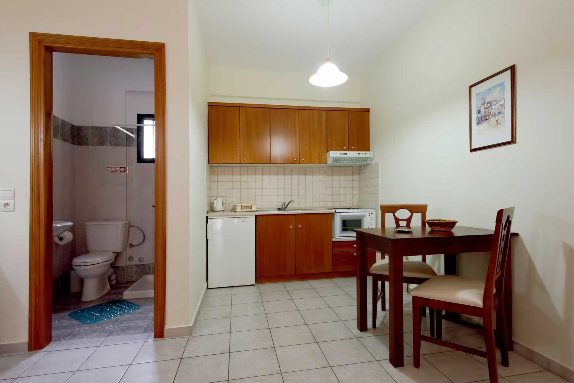 Ettromsleilighet med balkong eller markterrasse. Minikjøkken. En dobbeltseng eller to enkeltsenger. Wifi er inkludert, dekningen varierer og i noen rom er det kun dekning på terrassen. Luftkondisjonering og safe mot avgift. Minikjøkken med kokeplater, kjøleskap, vannkoker, sandwichgrill og enkelt kjøkkenutstyr. TV. Hårføner. Dusj og wc. Rengjøring 6 ggr/uke.