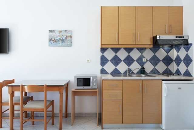Ettromsleilighet med balkong. Minikjøkken. To enkeltsenger eller en dobbeltseng. Mulighet for to ekstrasenger. Minikjøkken med kokeplater, kjøleskap, mikrobølgeovn og enkelt kjøkkenutstyr. Wifi, luftkondisjonering og safe inkludert. TV. Dusj og wc. Rengjøring 6 ggr/uke.