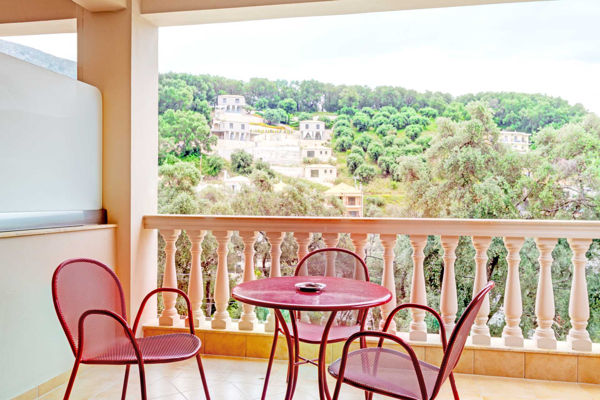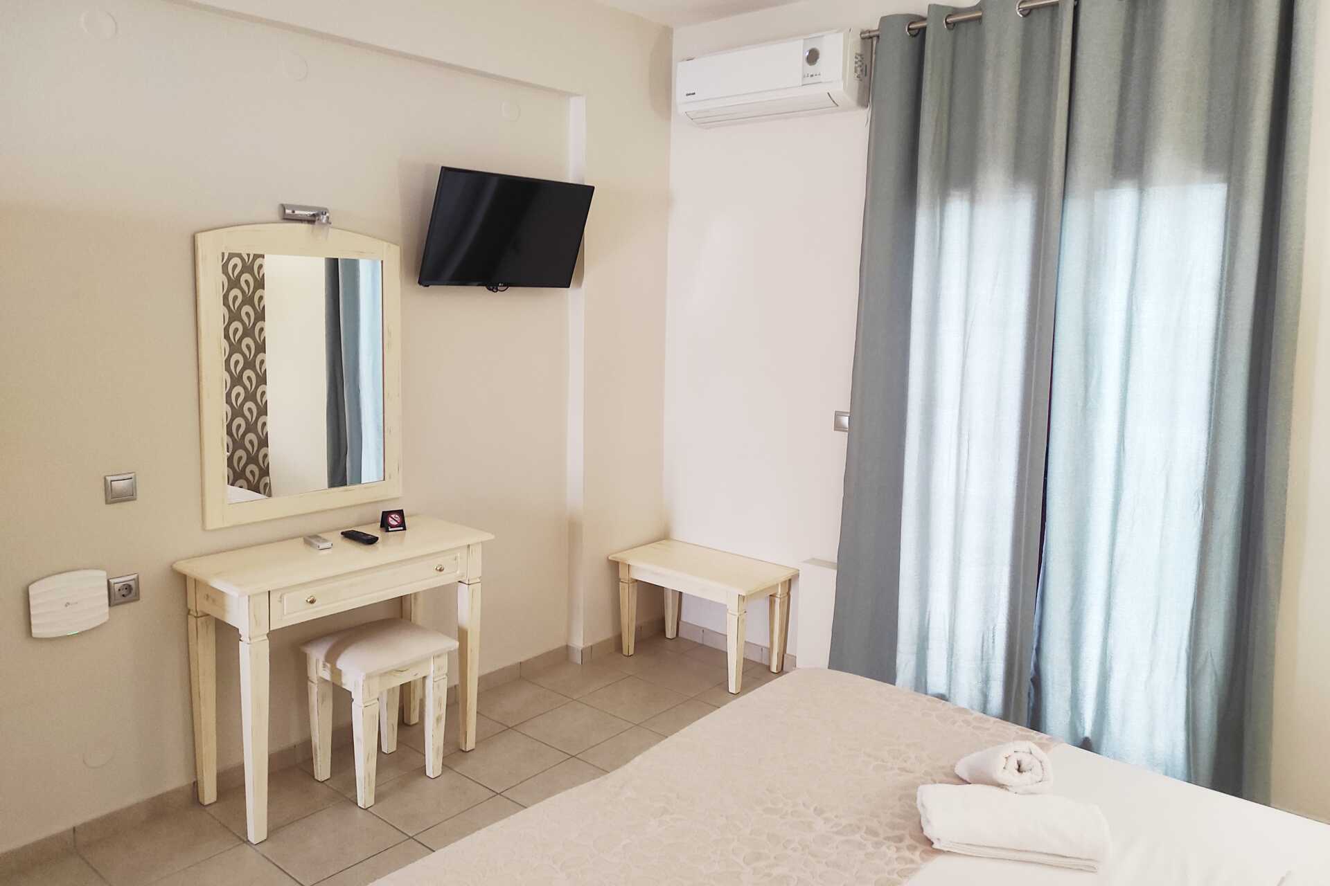 Deluxerom med balkong. En dobbeltseng eller to enkeltsenger. Wifi, luftkondisjonering og safe inkludert. Kjøleskap. TV. Hårføner. Dusj og wc. Rengjøring 6 ggr/uke.