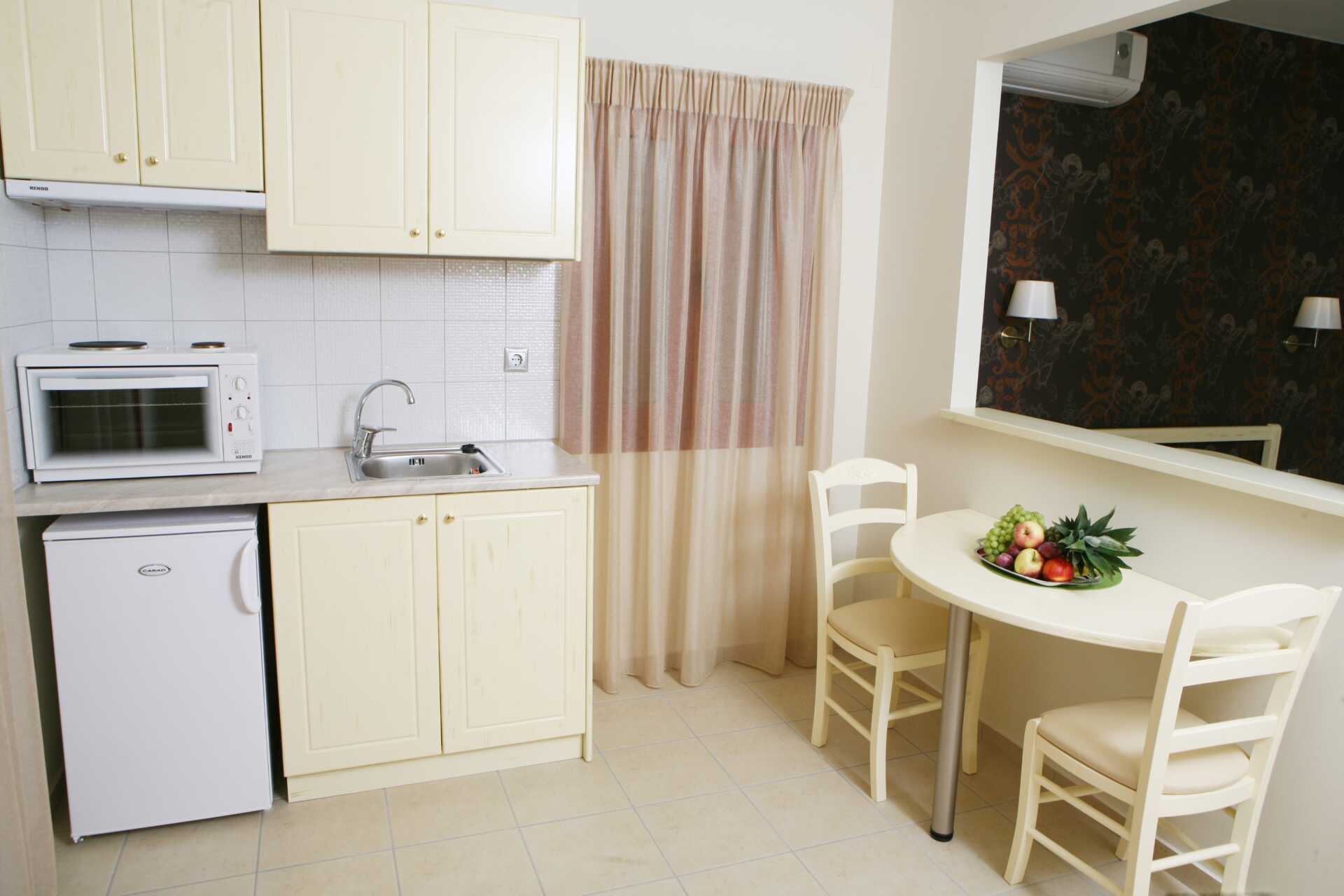 Ettromsleilighet med markterrasse. Soverom kombinert med minikjøkken. En dobbeltseng. Minikjøkken med kjøleskap, kokeplater, stekeovn, kaffetrakter, vannkoker og enkelt kjøkkenutstyr. Wifi, luftkondisjonering og safe inkludert. TV. Hårføner. Dusj og wc. Rengjøring 6 ggr/uke.
