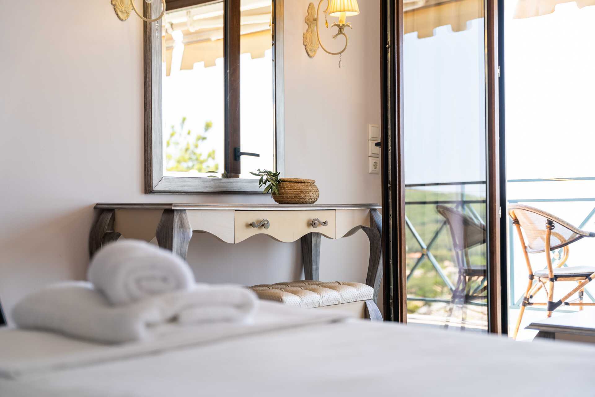 Deluxerom med balkong, noen med havutsikt. En dobbeltseng eller to enkeltsenger. Wifi og luftkondisjonering er inkludert. Safe mot avgift. Kjøleskap. TV med lokale kanaler. Hårføner. Dusj og wc. Rengjøring 7 ggr/uke.