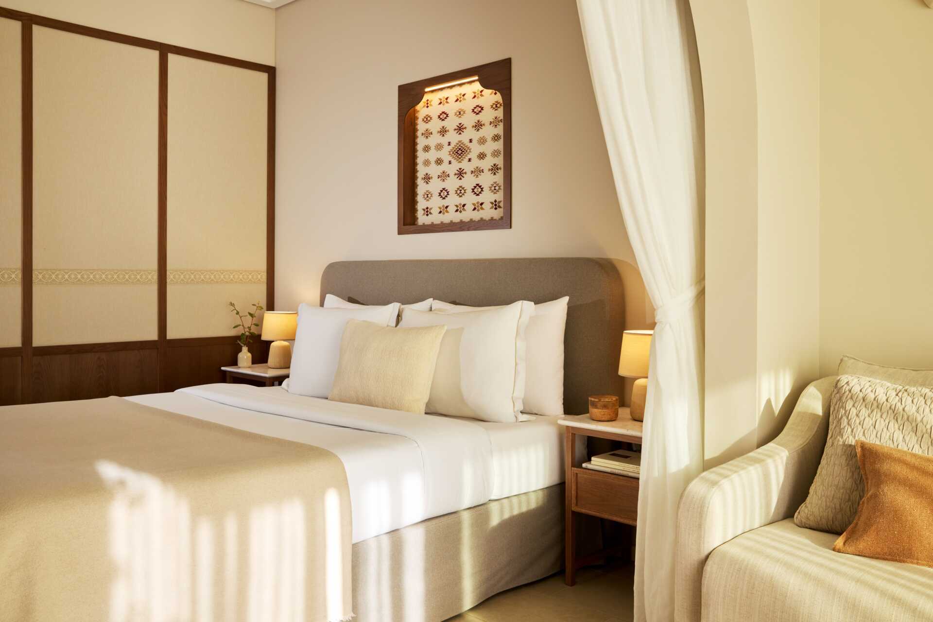 Suite med balkong eller terrasse. En dobbeltseng. Mulig med ekstrasenger i sovesofa. Putemeny. Wifi, luftkondisjonering og safe inkludert. Minibar. Nespresso kaffemaskin, kapsler mot avgift. Vannkoker samt kaffe og te. TV. Badekåper og tøfler. Hårføner. Baderom med dusj og wc. Rengjøring 7 ggr/uke. Suitene ligger i en egen bygning, og en mindre vei med begrenset trafikk må krysses for å nå stranden og andre deler av hotellet.
