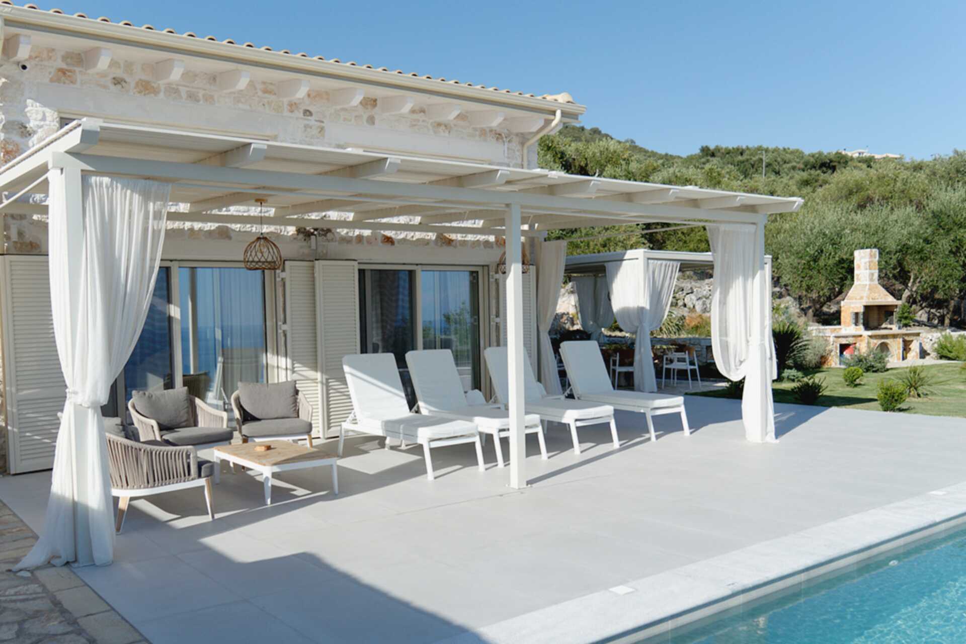 Fireroms villa med privat basseng og havutsikt. Villaen ble bygget i 2022.