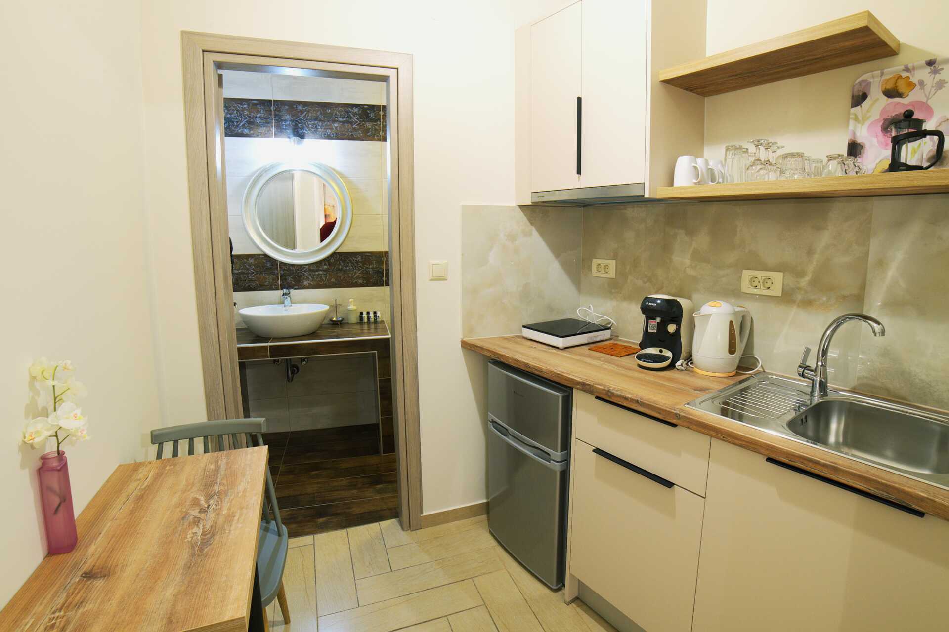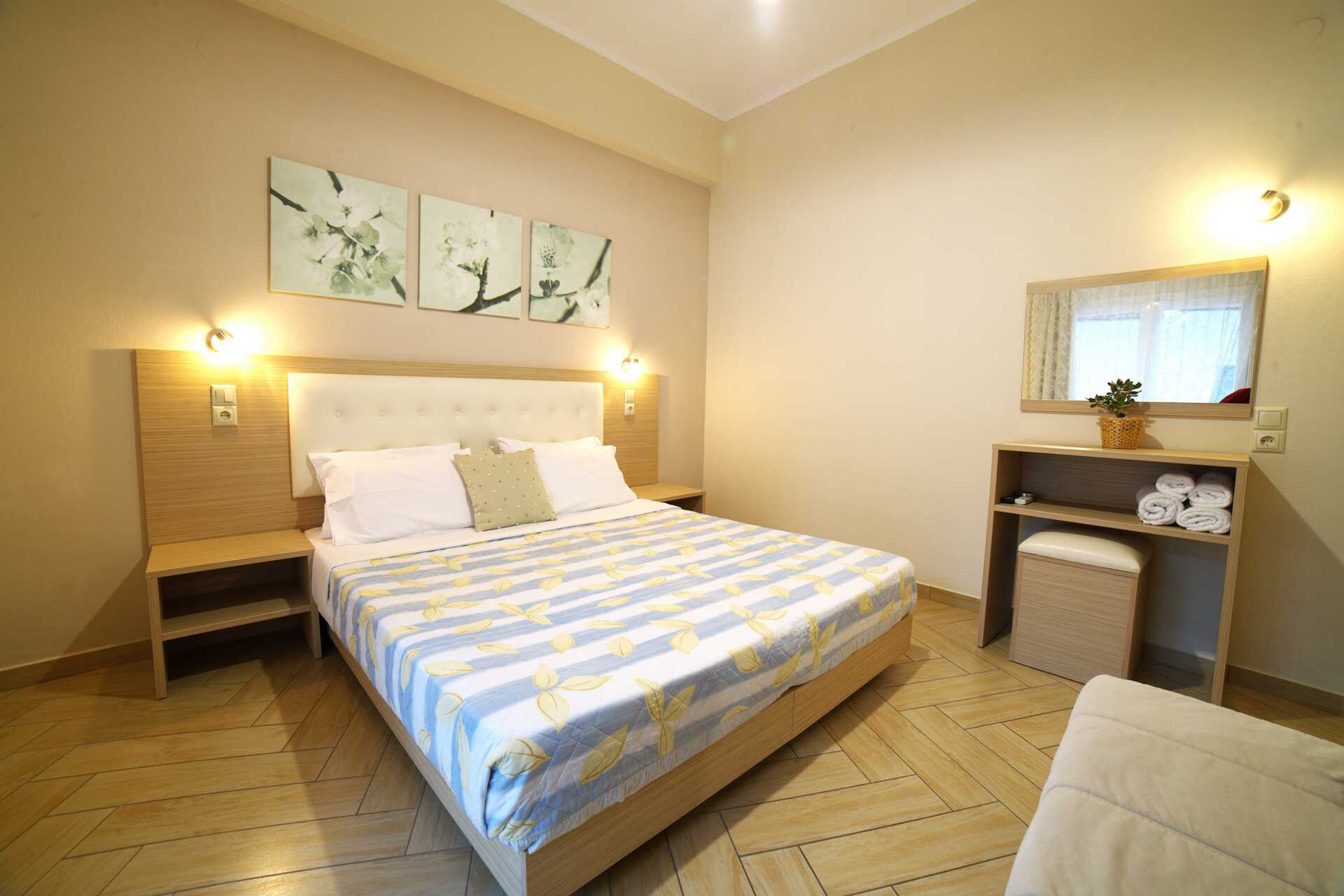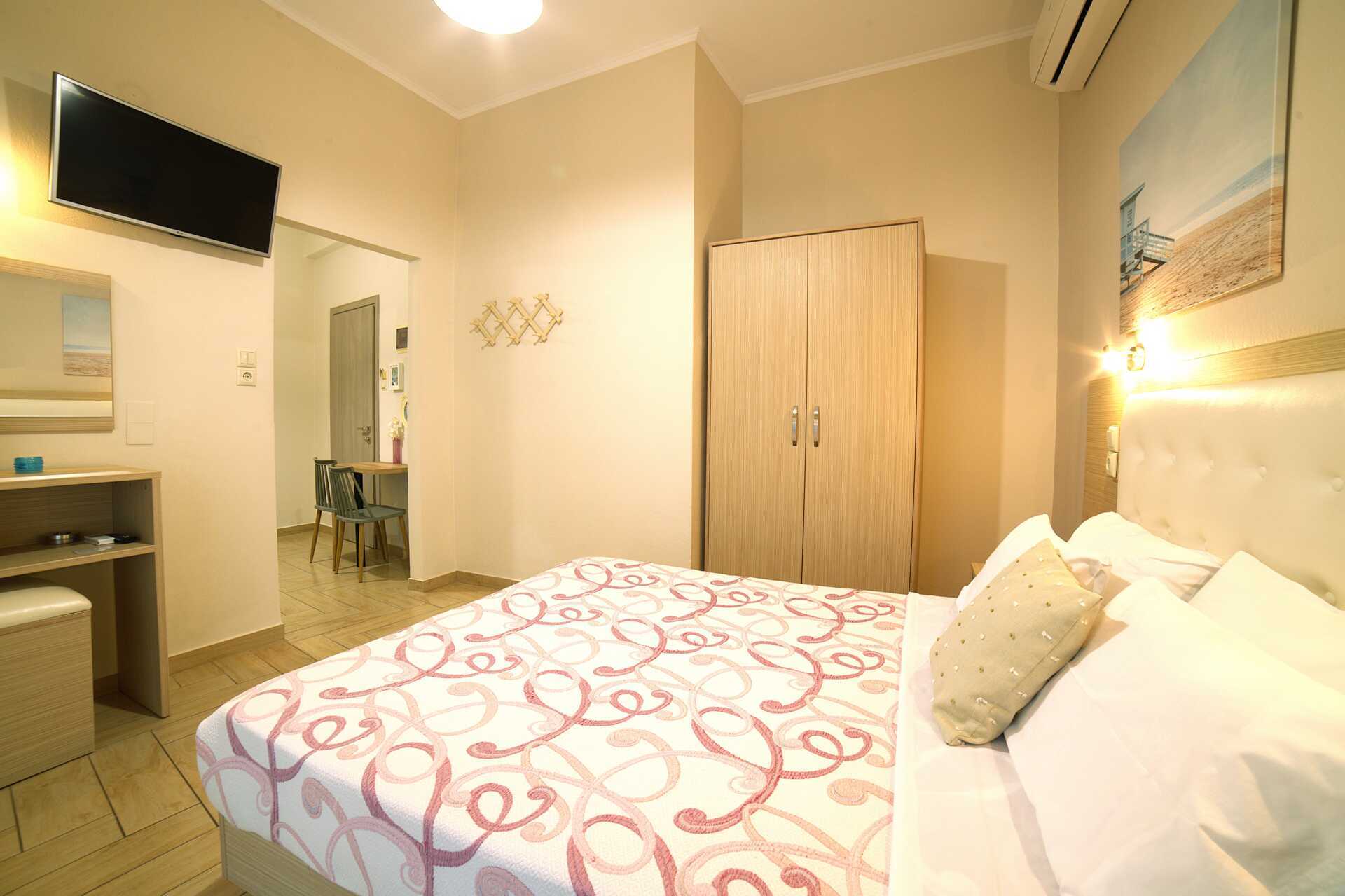 Ettromsleilighet med balkong. Minikjøkken. En dobbeltseng. Minikjøkken med kokeplate, kjøleskap, vannkoker, kaffemaskin og enkelt kjøkkenutstyr. Wifi, luftkondisjonering og safe. Hårføner. Dusj og wc. Rengjøring 5 ggr/uke.