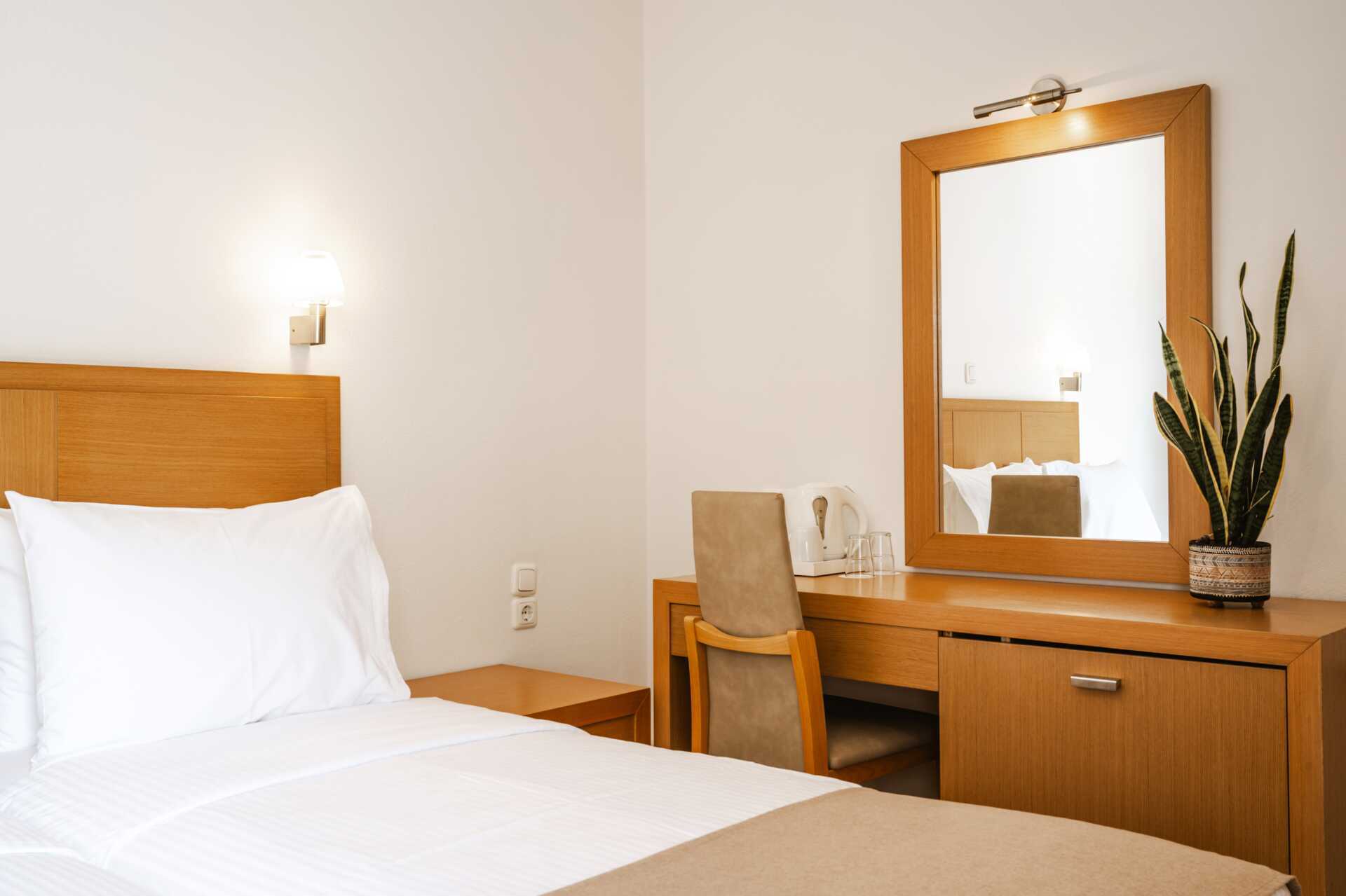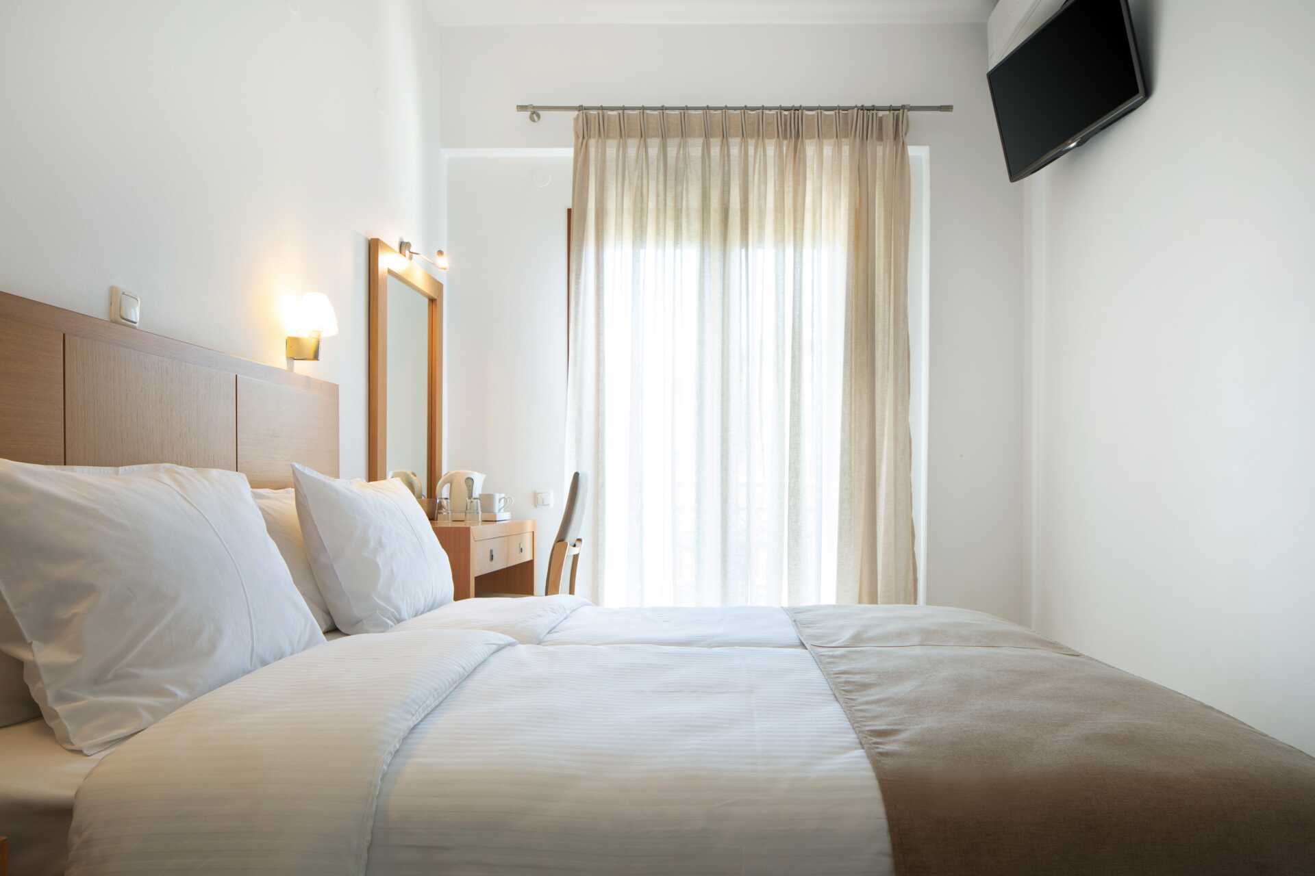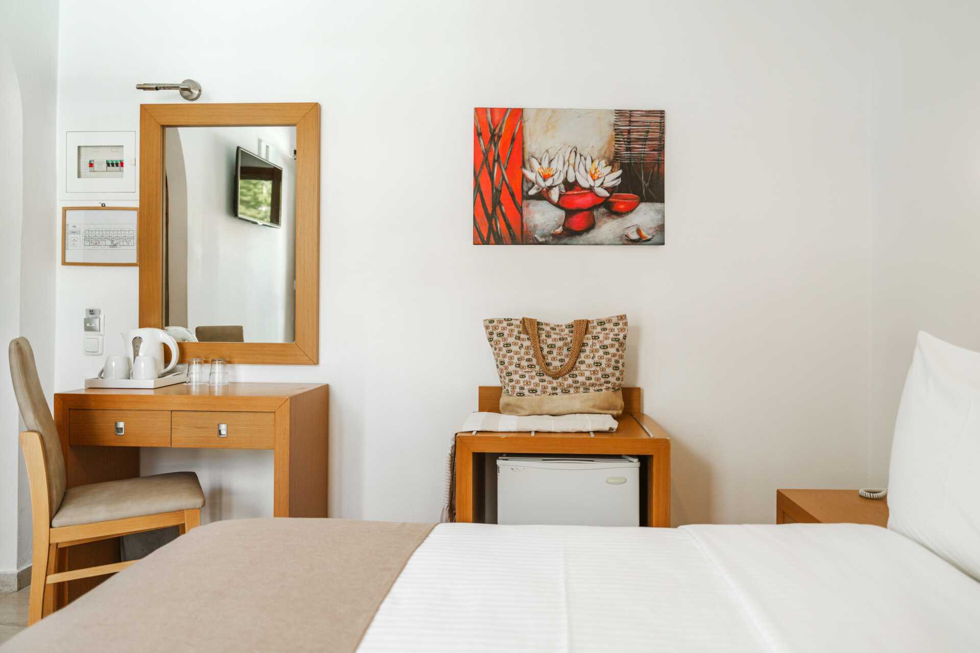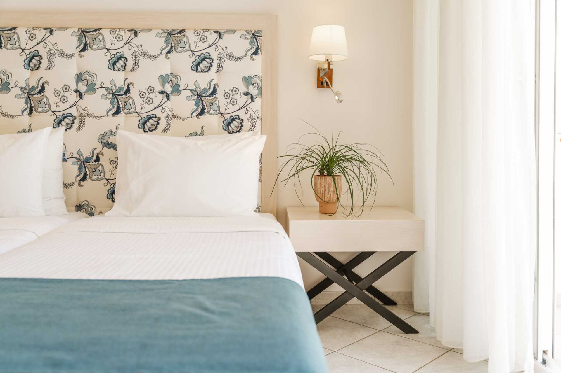 Dobbeltrom med balkong med utsikt over hagen, fjellene eller byen. En dobbeltseng eller to enkeltsenger. Wifi og luftkondisjonering inkludert. Safe mot avgift. Kjøleskap. Vannkoker. TV. Hårføner. Baderom med dusj og wc. Noen dobbeltrom har små bad. Rengjøring 7 ggr/uke.