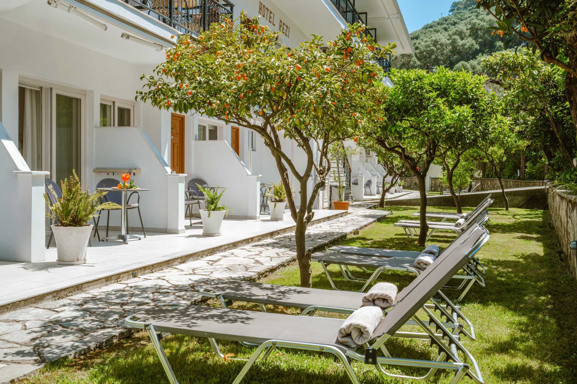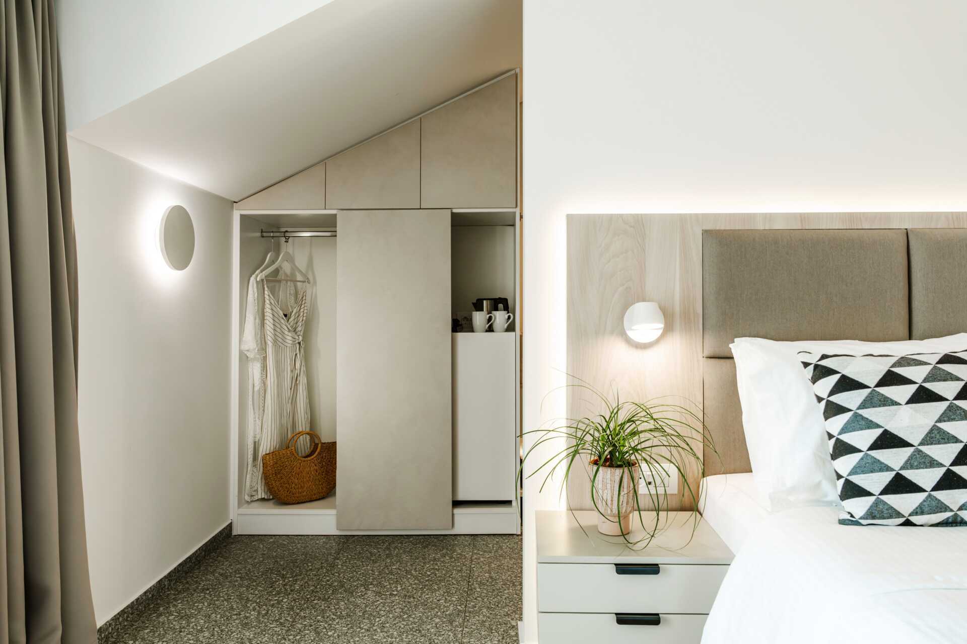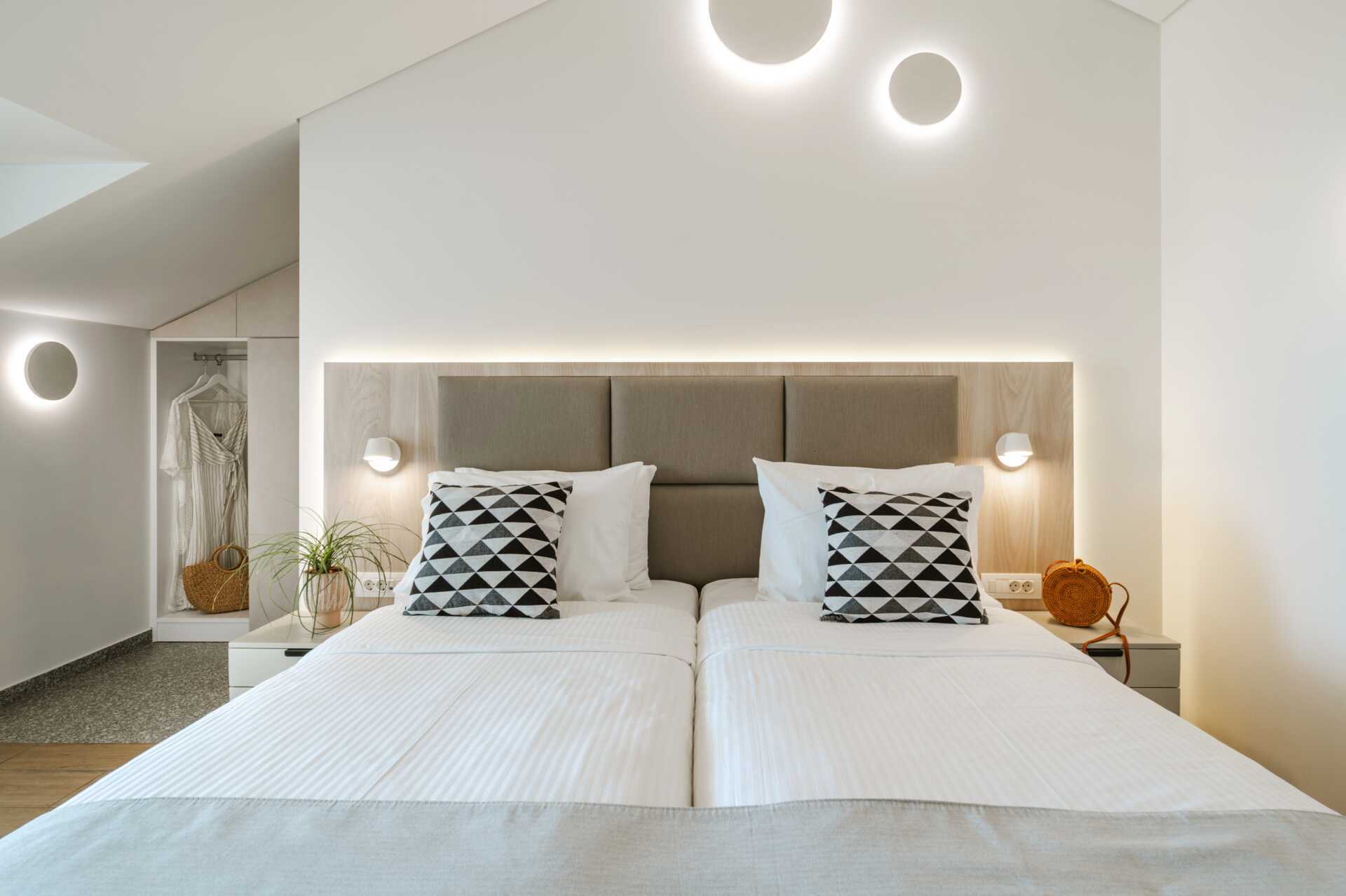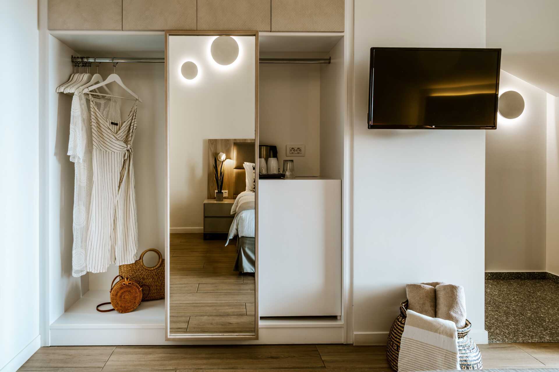 Dobbeltrom med balkong med utsikt over hagen, fjellene eller byen. En dobbeltseng eller to enkeltsenger. Wifi og luftkondisjonering inkludert. Safe mot avgift. Kjøleskap. Vannkoker. TV. Hårføner. Baderom med dusj og wc. Noen dobbeltrom har små bad. Rengjøring 7 ggr/uke.
