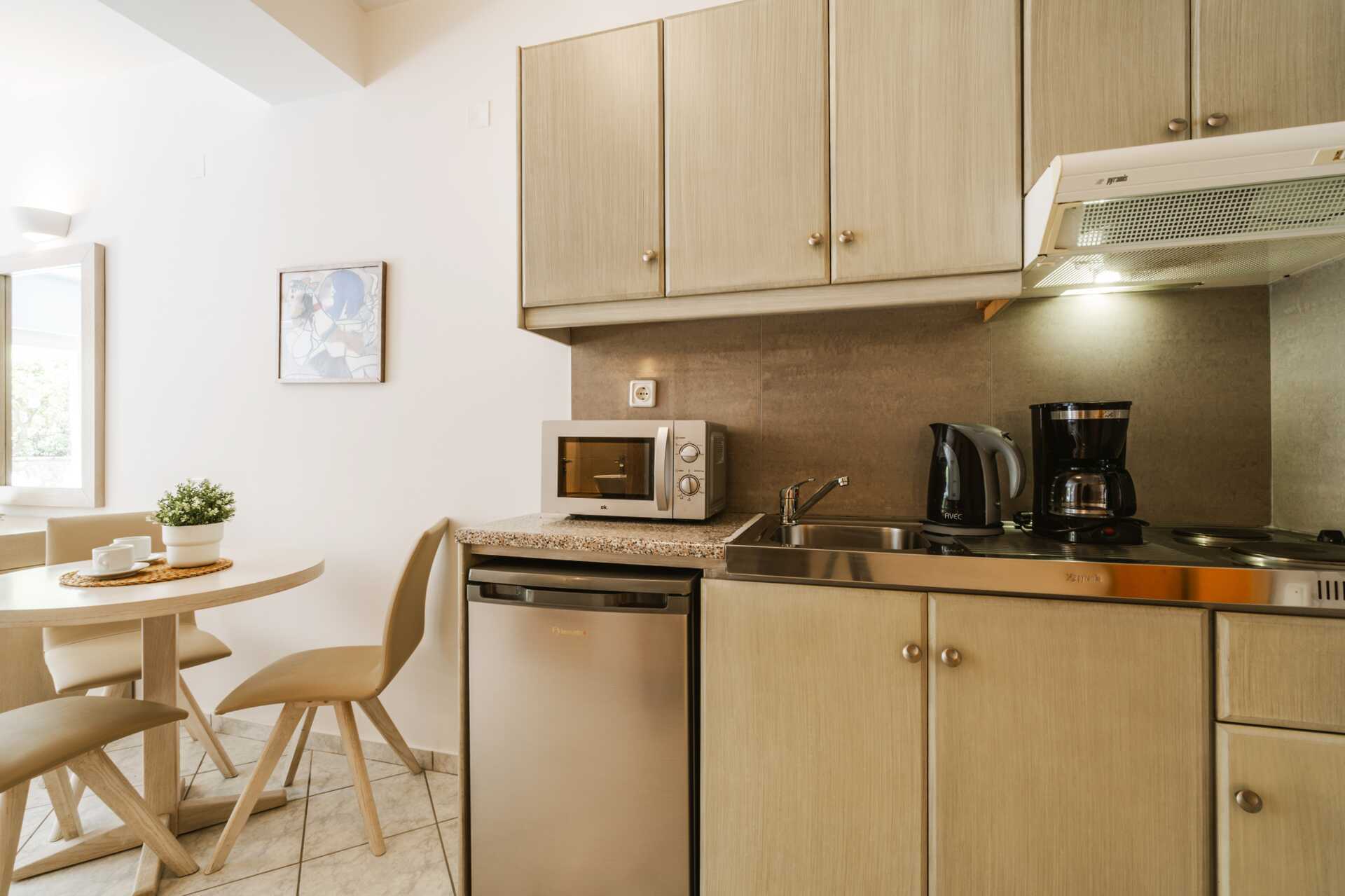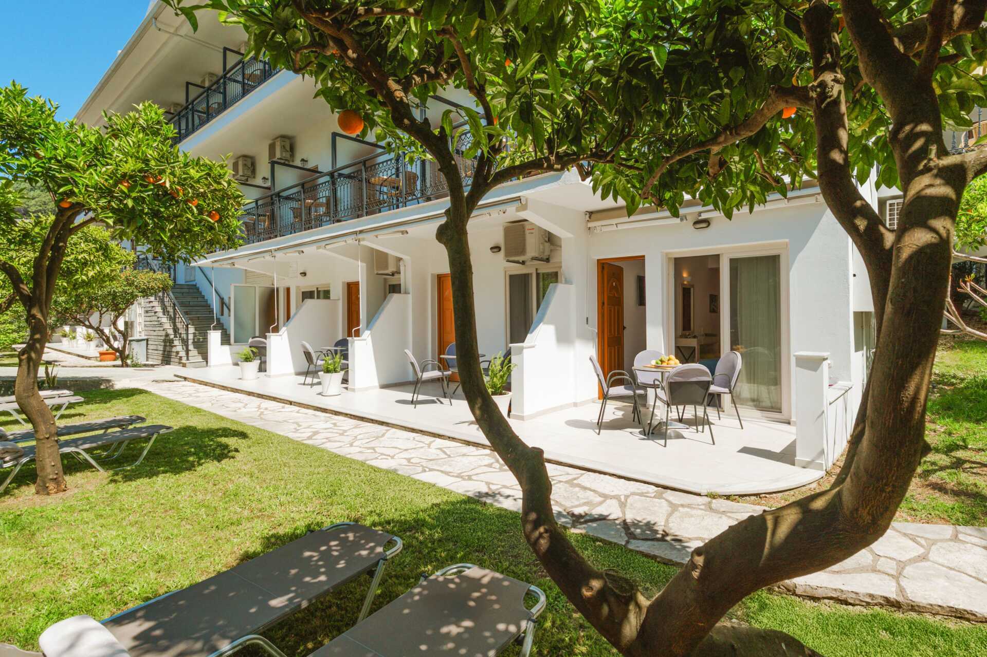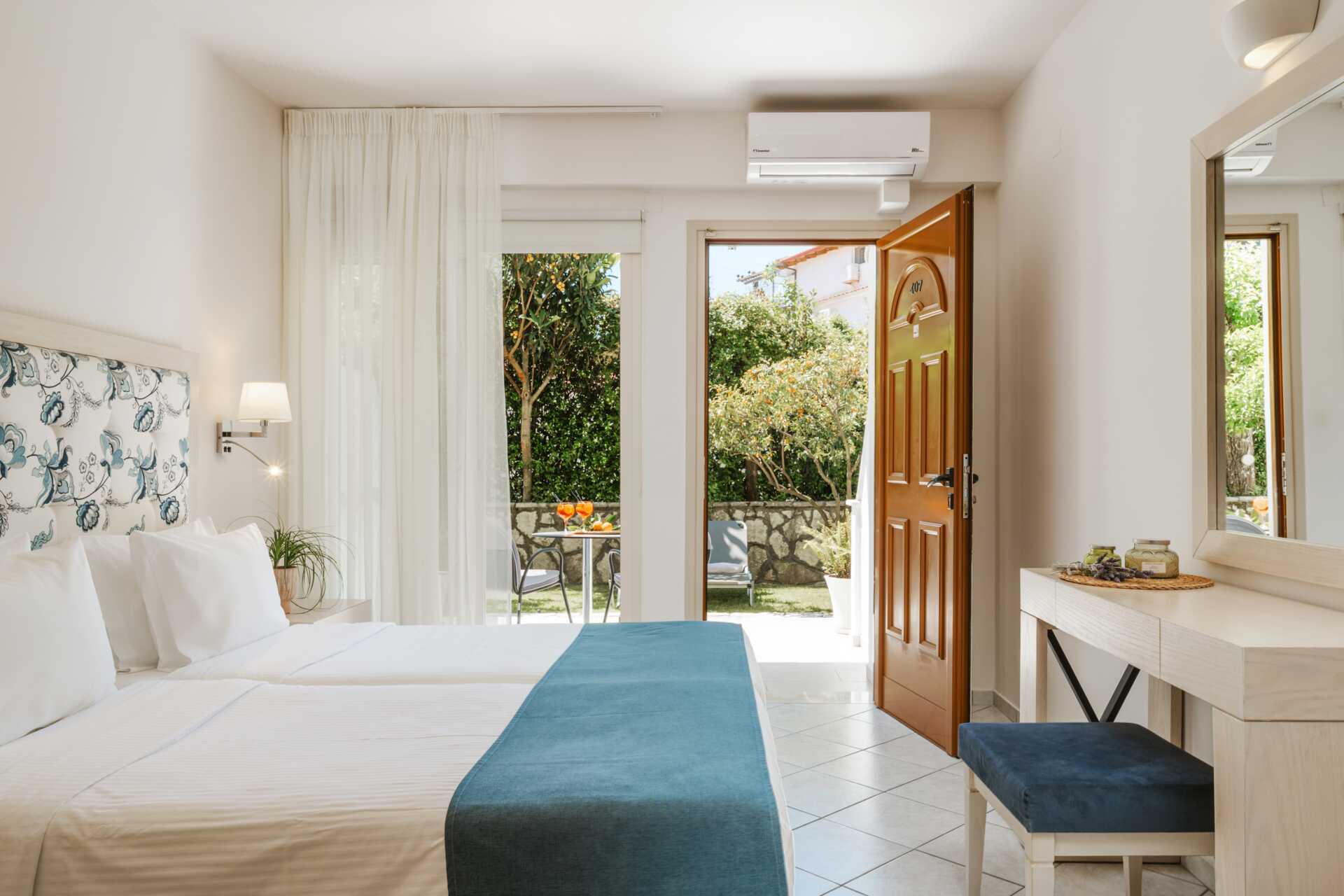 Toromsleilighet med markterrasse og utsikt over hagen. Et soverom med to enkeltsenger og en kombinert stue/kjøkkenkrok med ytterligere to enkeltsenger. Minikjøkken med kokeplater, kjøleskap, vannkoker, kaffetrakter, brødrister og enkelt kjøkkenutstyr. Wifi og luftkondisjonering inkludert. Safe mot avgift. TV. Hårføner. Dusj og wc. Rengjøring 7 ggr/uke.