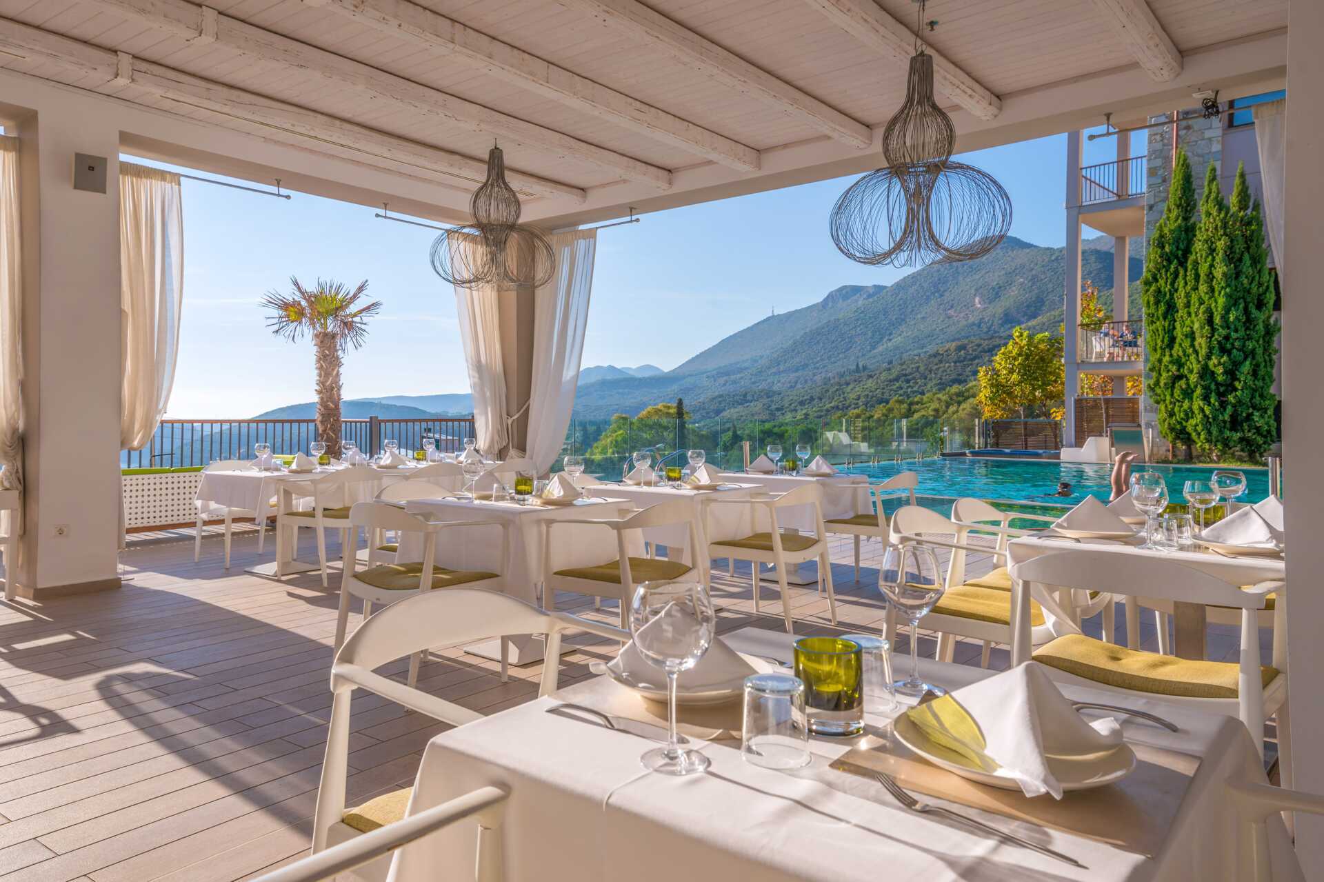 Superiorsuite med markterrasse og eget basseng. En dobbeltseng. Mulig med en ekstraseng i sovesofa. Wifi, luftkondisjonering og safe inkludert. Kjøleskap. Vannkoker. Kaffemaskin. Brødrister. TV. Badekåper og tøfler. Hårføner. Badekar eller dusj samt wc. Rengjøring 7 ggr/uke.