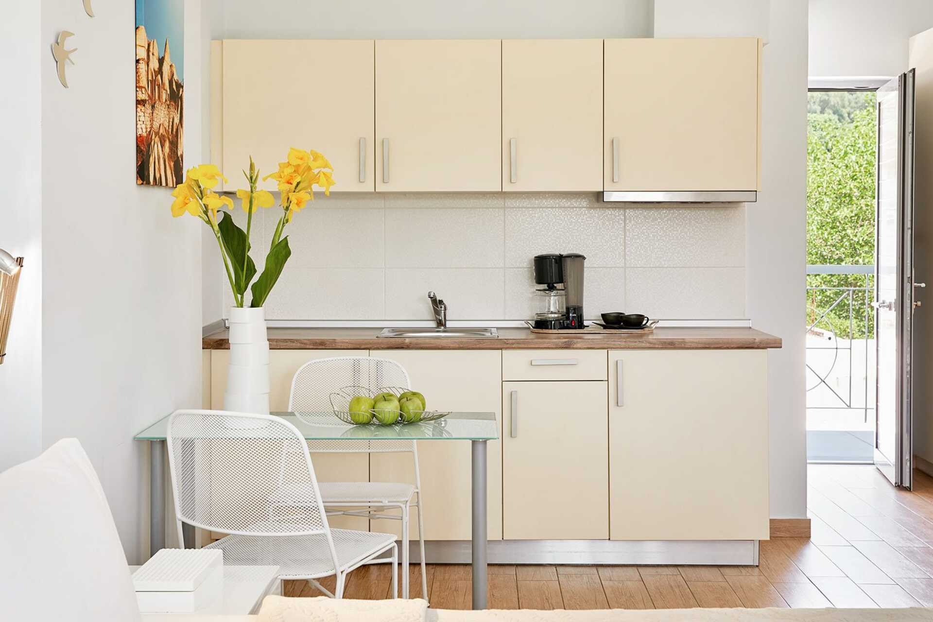Ettromsleilighet med balkong eller markterrasse. Minikjøkken. Leilighetene har ulik planløsning. En dobbeltseng eller to enkeltsenger. Mulig med ekstraseng i sovesofa. Putemeny. Wifi, luftkondisjonering og safe er inkludert. Minikjøkken med kjøleskap, kokeplate, vannkoker og enkelt kjøkkenutstyr. TV. Hårføner. Badekåper og tøfler. Baderom med badekar og wc. Rengjøring 7 ggr/uke.