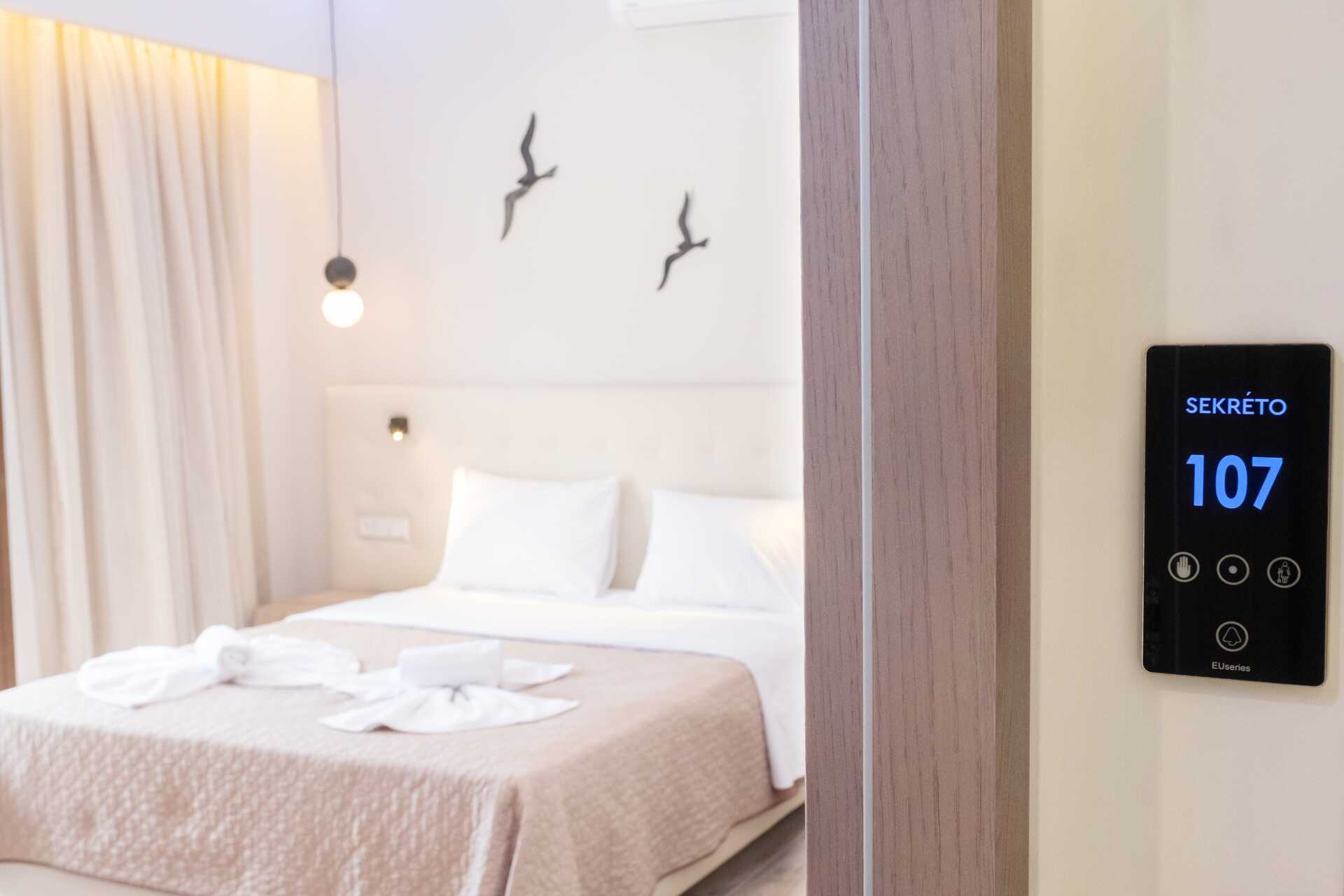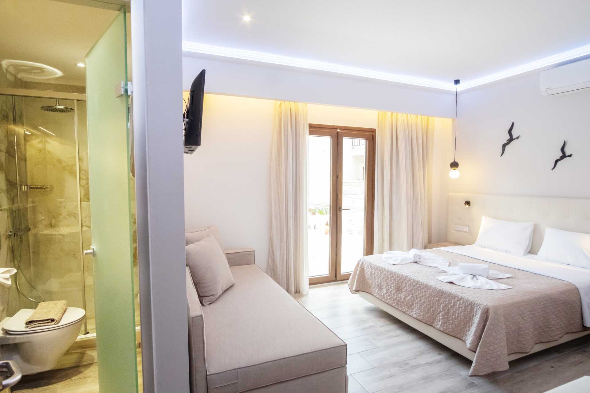 Renovert dobbeltrom med balkong. En dobbeltseng. Mulig med ekstrasenger i sovesofa. Wifi og luftkondisjonering inkludert. Kjøleskap, vannkoker, kaffetrakter og sandwichgrill. TV. Hårføner. Baderom med dusj og wc. Rengjøring 7 ggr/uke.