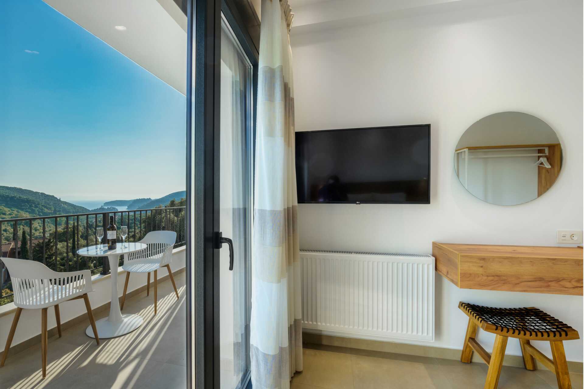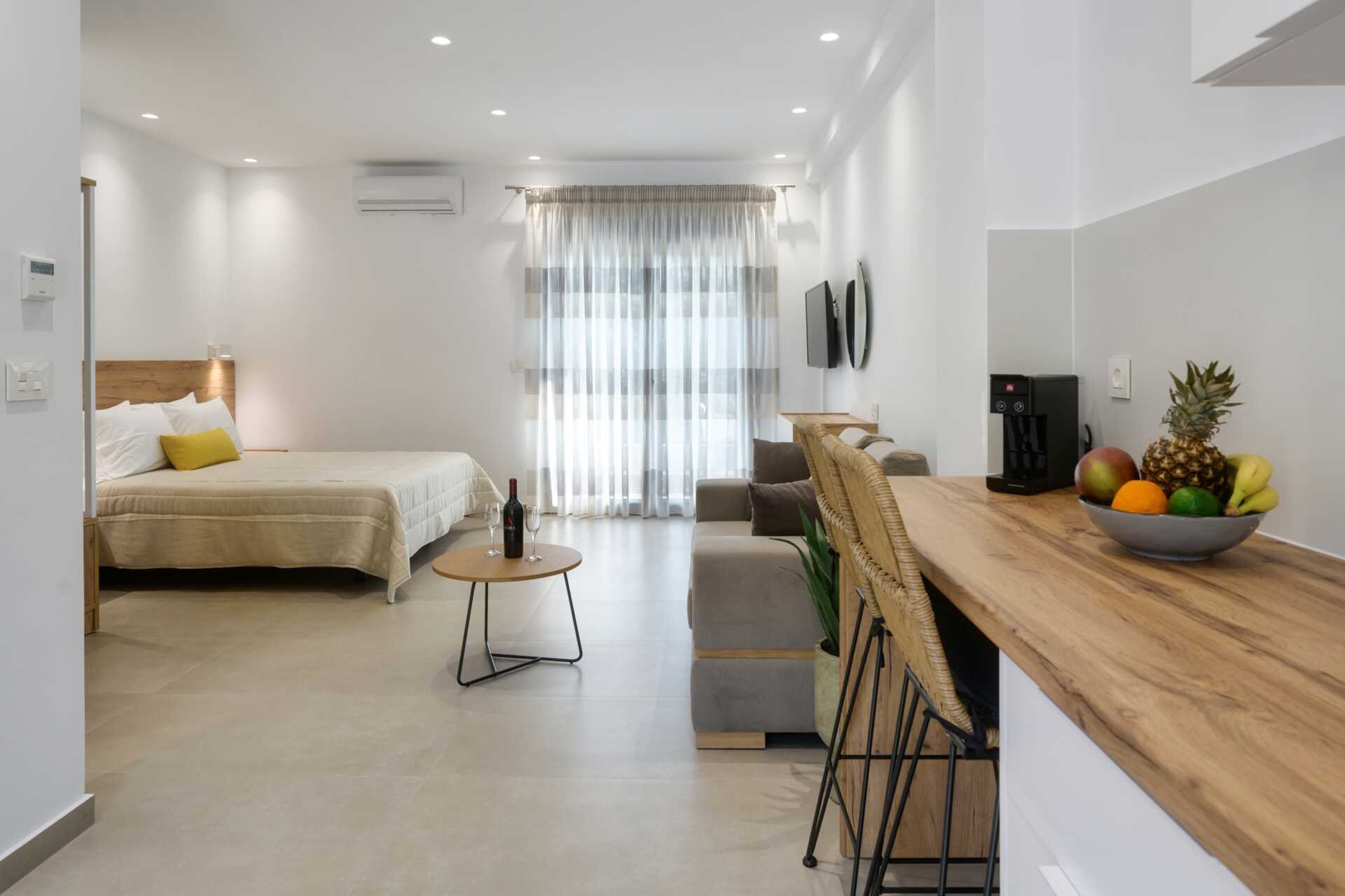Ettromsleilighet superior med balkong. Minikjøkken. En dobbeltseng. Mulig med en ekstraseng i sovesofa. Minikjøkken med kokeplater, stekeovn, kjøleskap, kaffetrakter, vannkoker, espresso kaffemaskin (kapsler inkludert) og enkelt kjøkkenutstyr. Wifi, luftkondisjonering og safe inkludert. TV. Badekåper og tøfler. Hårføner. Dusj og wc. Rengjøring 6 ggr/uke.