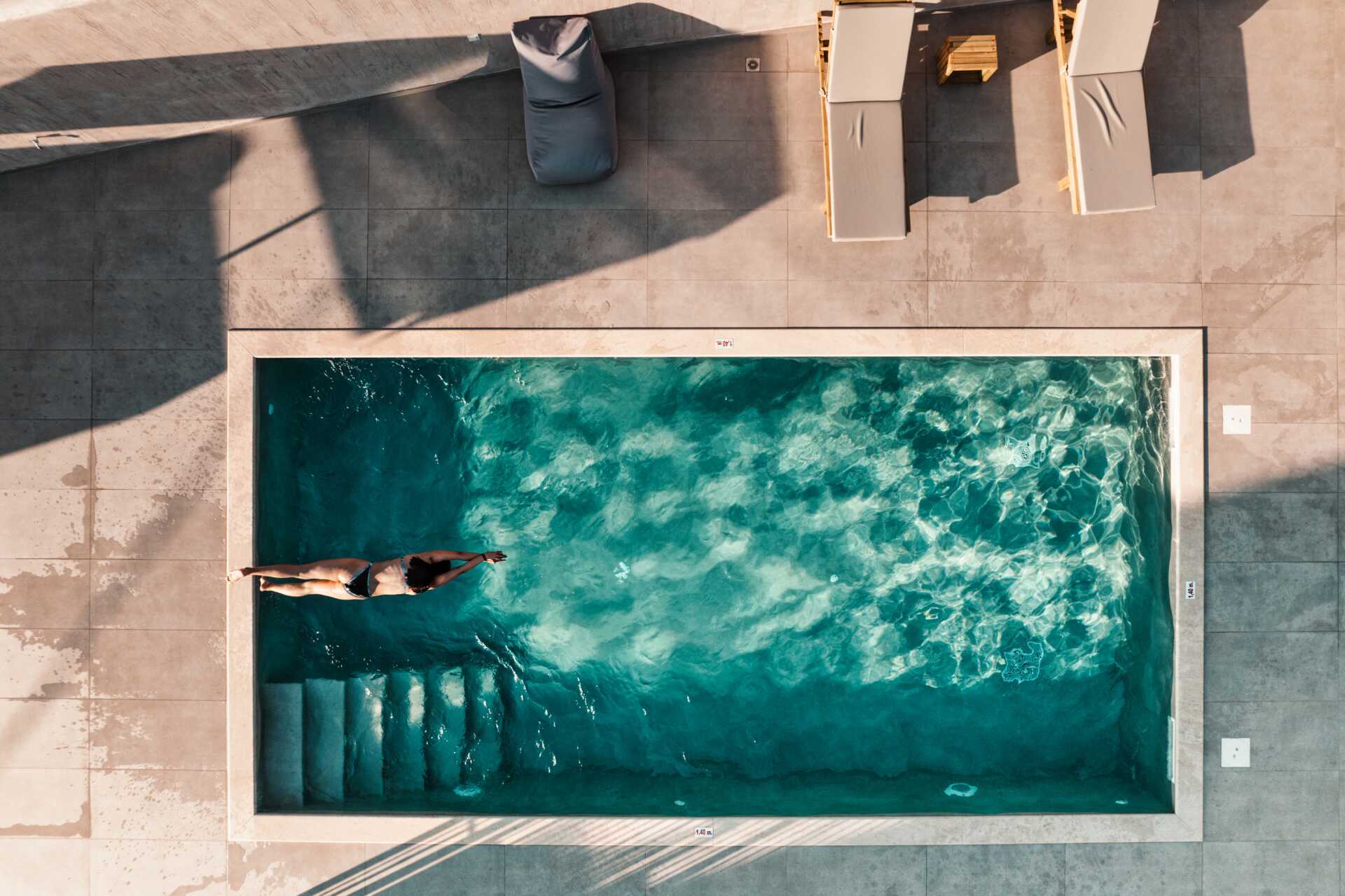 Ettromsleilighet med stor markterrasse med eget basseng. Rundt saltvannsbassenget er det solsenger, en overbygd spiseplass. Soverom kombinert med minikjøkken i åpen planløsning. En dobbeltseng. Mulig med en ekstraseng i sovesofa. Minikjøkken med kokeplater, stekeovn, kjøleskap, espresso kaffemaskin - kapsler inkludert og enkelt kjøkkenutstyr. Wifi, luftkondisjonering og safe inkludert. TV. Badekåper og tøfler Hårføner. Dusj og wc. Rengjøring 6 ggr/uke.