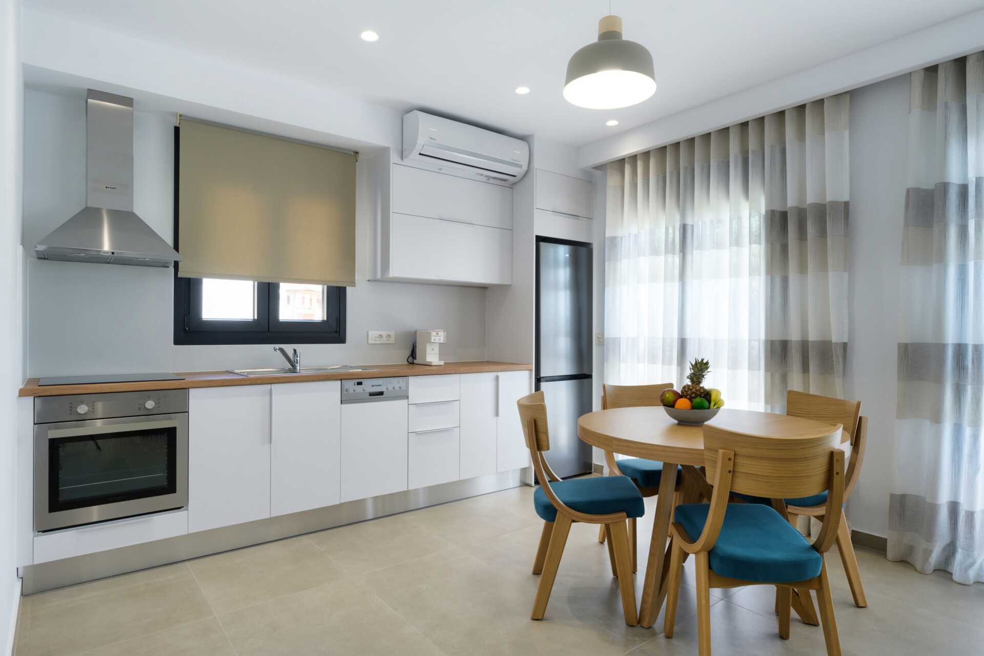 Treromsleilighet med balkong. To soverom og en stue med minikjøkken. Minikjøkken med kokeplater, stekeovn, kjøleskap, kaffetrakter, vannkoker, espresso kaffemaskin (kapsler inkludert) og enkelt kjøkkenutstyr. Wifi, luftkondisjonering og safe inkludert. TV. Badekåper og tøfler. Hårføner. Dusj og wc. Rengjøring 6 ggr/uke.