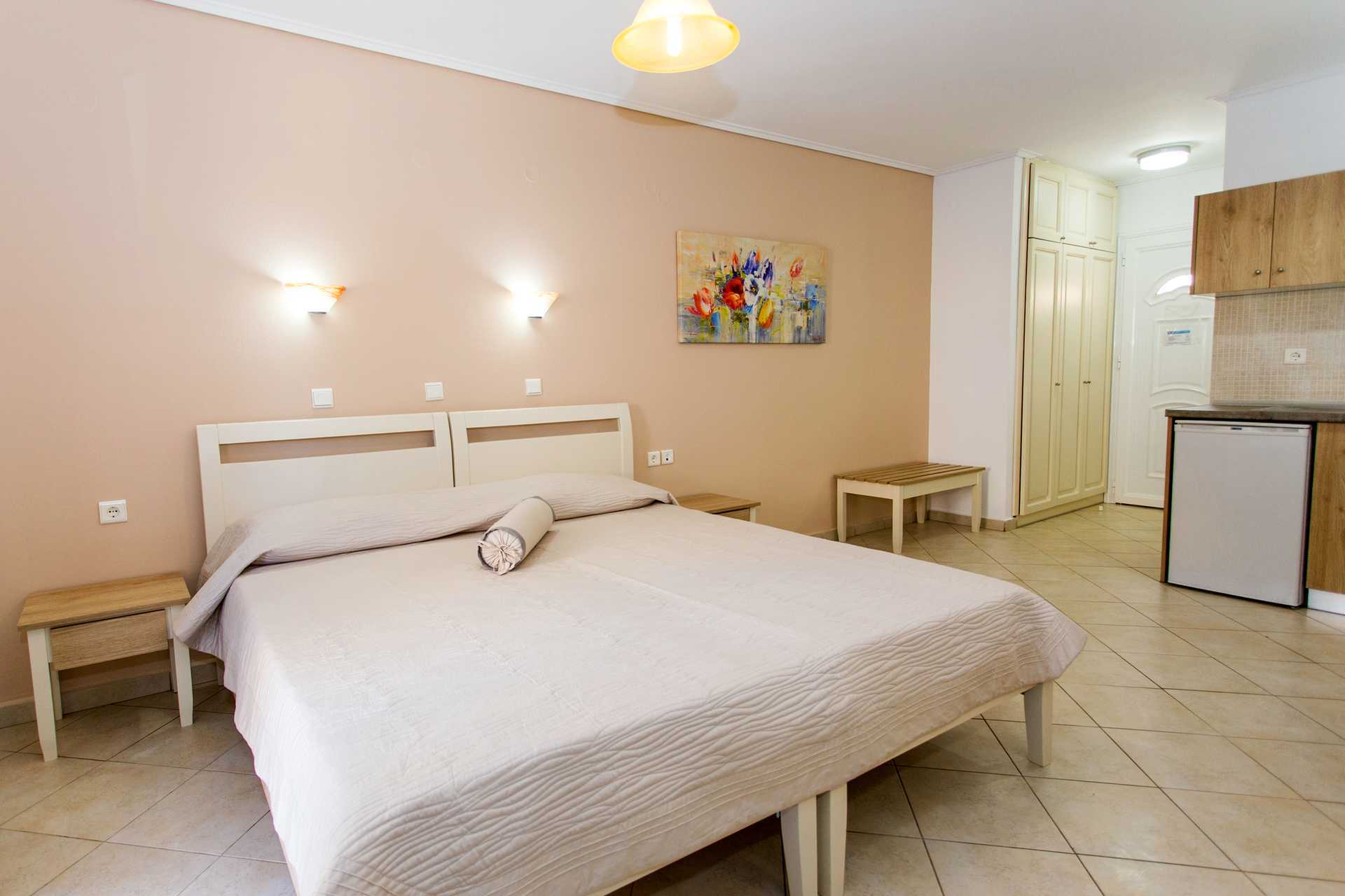 Ettromsleilighet med balkong. Kombinert soverom og minikjøkken. En dobbeltseng eller to enkeltsenger. Minikjøkken med kjøleskap, kokeplater, mikrobølgeovn og enkelt kjøkkenutstyr. Wifi og safe inkludert. Luftkondisjonering mot avgift. TV med lokale kanaler. Dusj og wc. Rengjøring 6 ggr/uke. Barn under 2 år regnes inn i maksantallet i leiligheten.