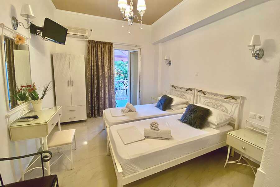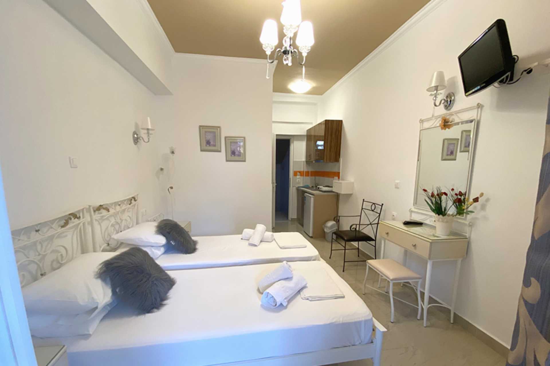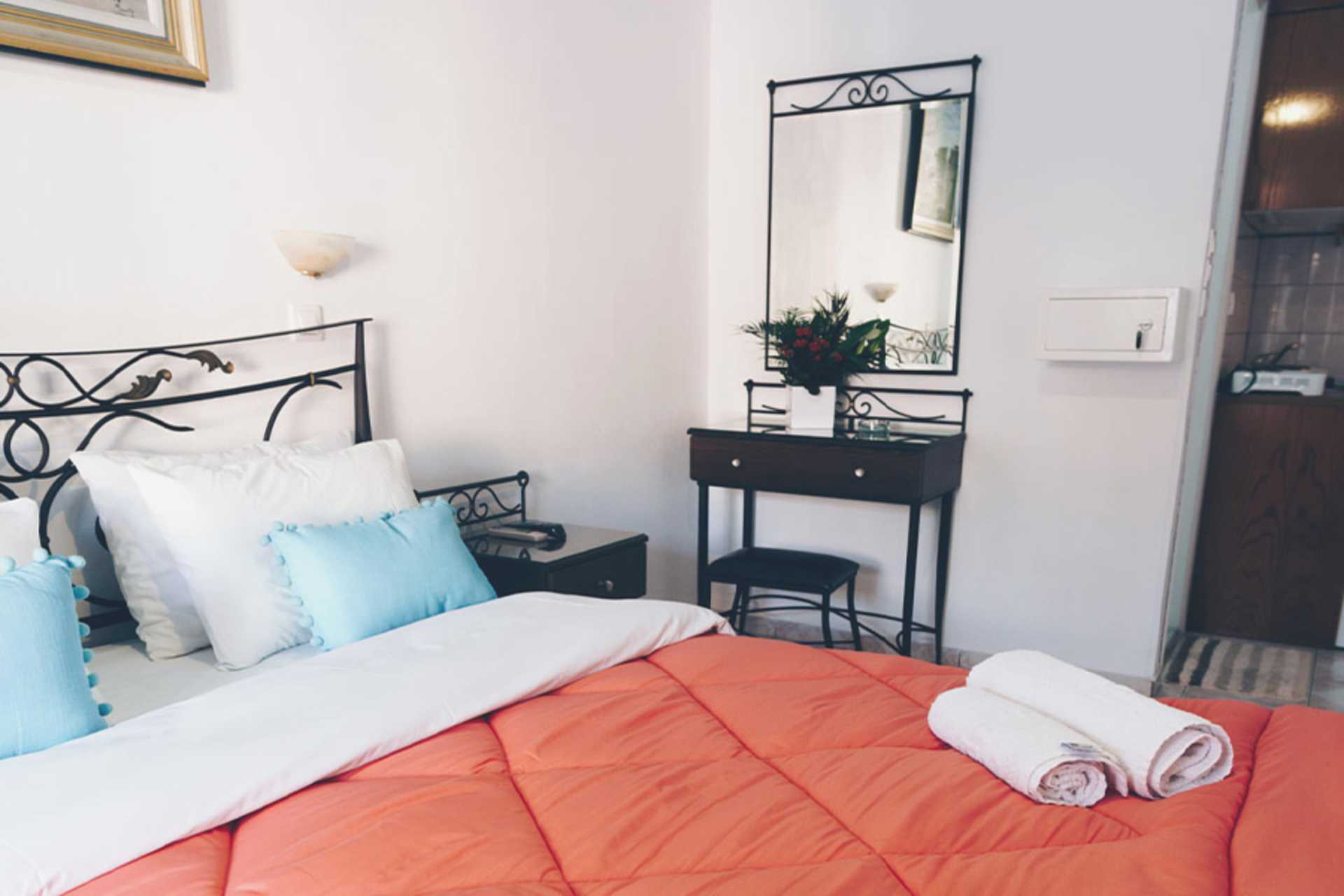 Ettromsleilighet med balkong eller markterrasse. Minikjøkken. En dobbeltseng eller to enkeltsenger. Wifi inkludert. Luftkondisjonering og safe mot avgift. Minikjøkken med kjøleskap, kokeplater og enkelt kjøkkenutstyr. TV. Dusj og wc. Rengjøring 7 ggr/uke. Barn under 2 år regnes inn i maksantallet i rommet.