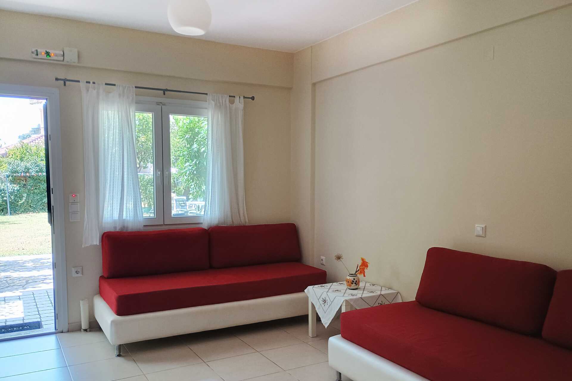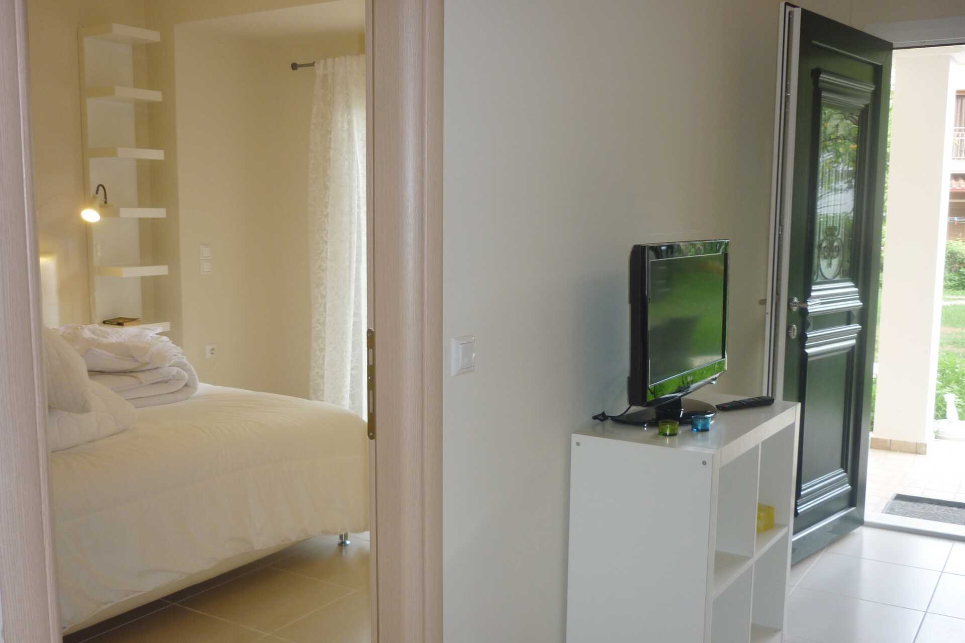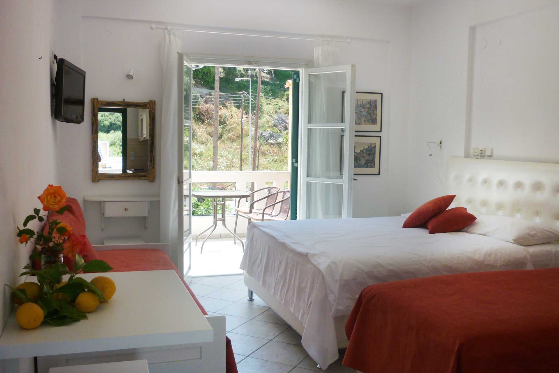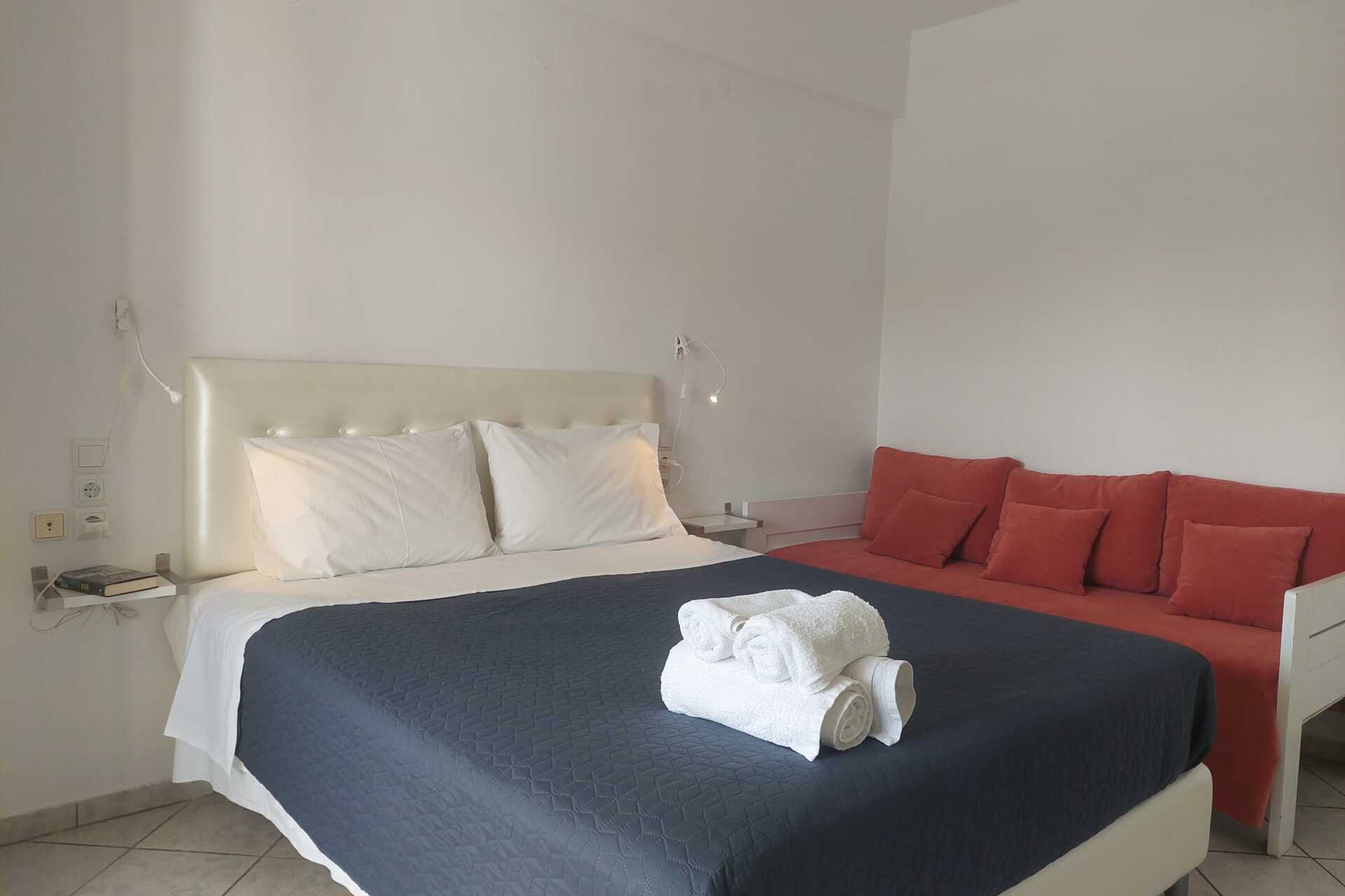 Toromsleilighet med markterrasse. Et soverom og en stue med minikjøkken. En dobbeltseng og to enkeltsenger. Minikjøkken med kokeplater, kjøleskap, brødrister og enkelt kjøkkenutstyr. Wifi inkludert. Luftkondisjonering og safe mot avgift. TV. Dusj og wc. Rengjøring 6 ggr/uke. Barn under 2 år regnes inn i maksantallet i rommet.