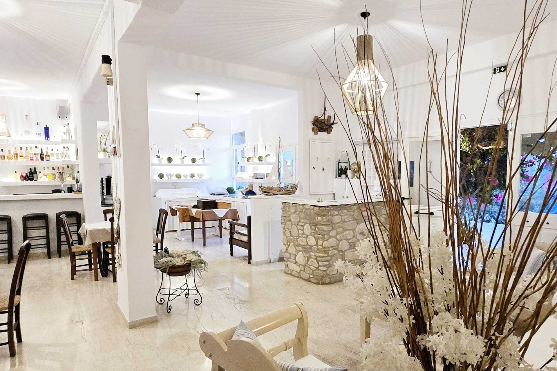 Afrodite Boutique Hotel i tradisjonell kykladisk stil, har et bassengområde med basseng, omgitt av grøntområder som klatrer opp på taket og veggene og gir en fin skygge mens du slapper av på solsengen. Bassenghåndklær inkludert. Ved bassengområdet ligger også den kombinerte baren og frokostserveringen. Du kan også nyte frokosten ute under vinrankene. Vil du bade i sjøen er det flere fine strender etter en litt lengre spasertur.