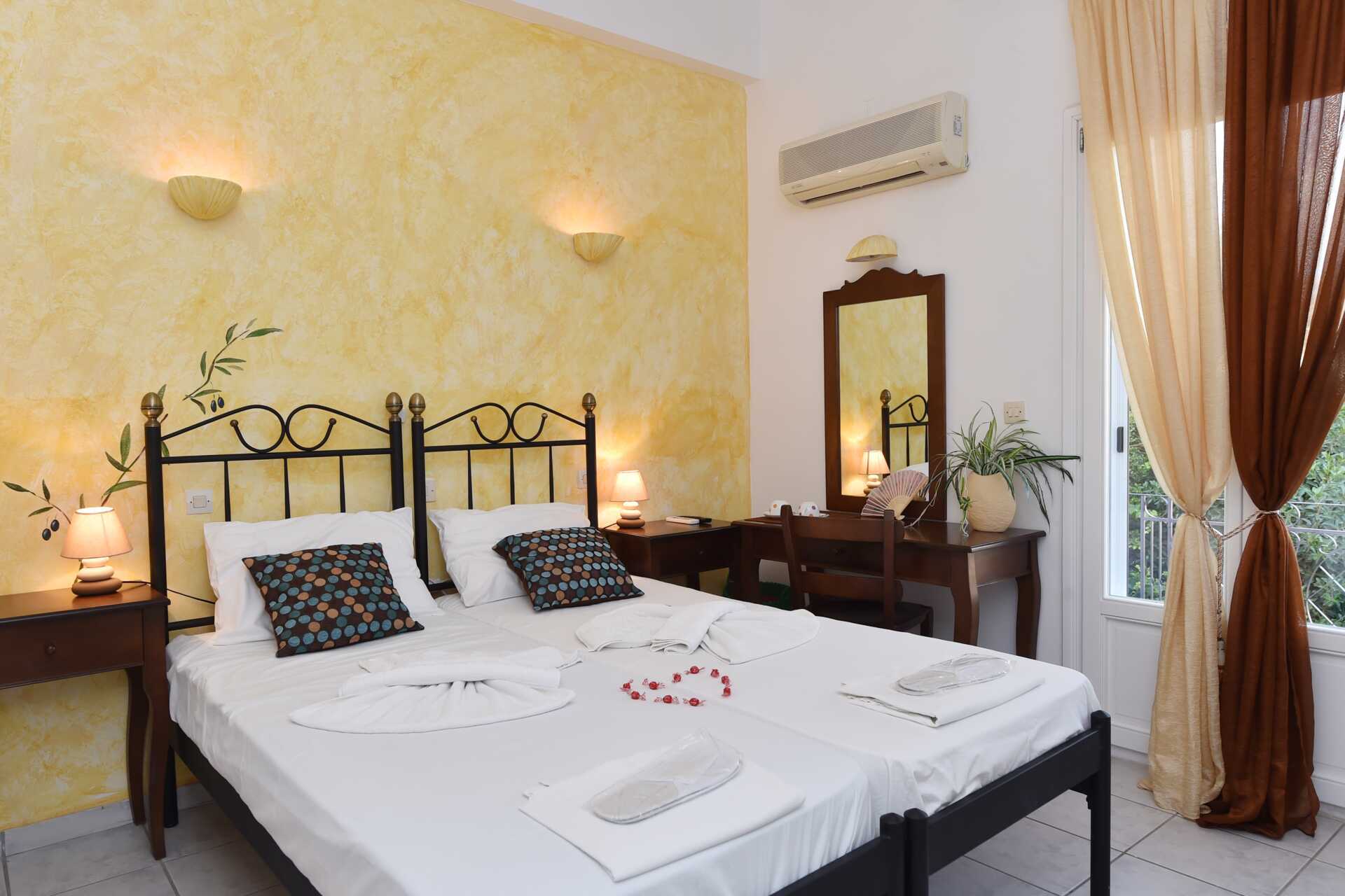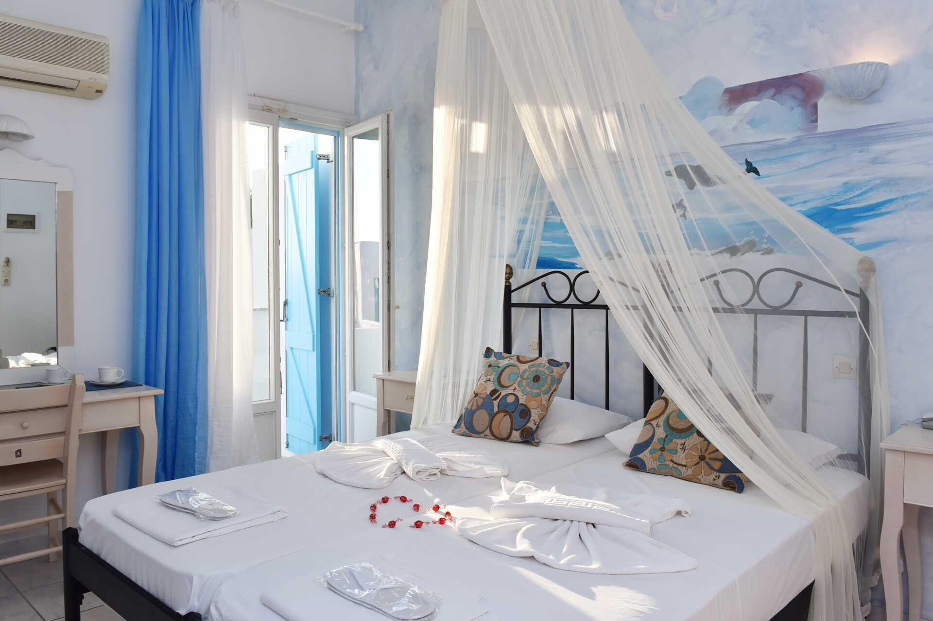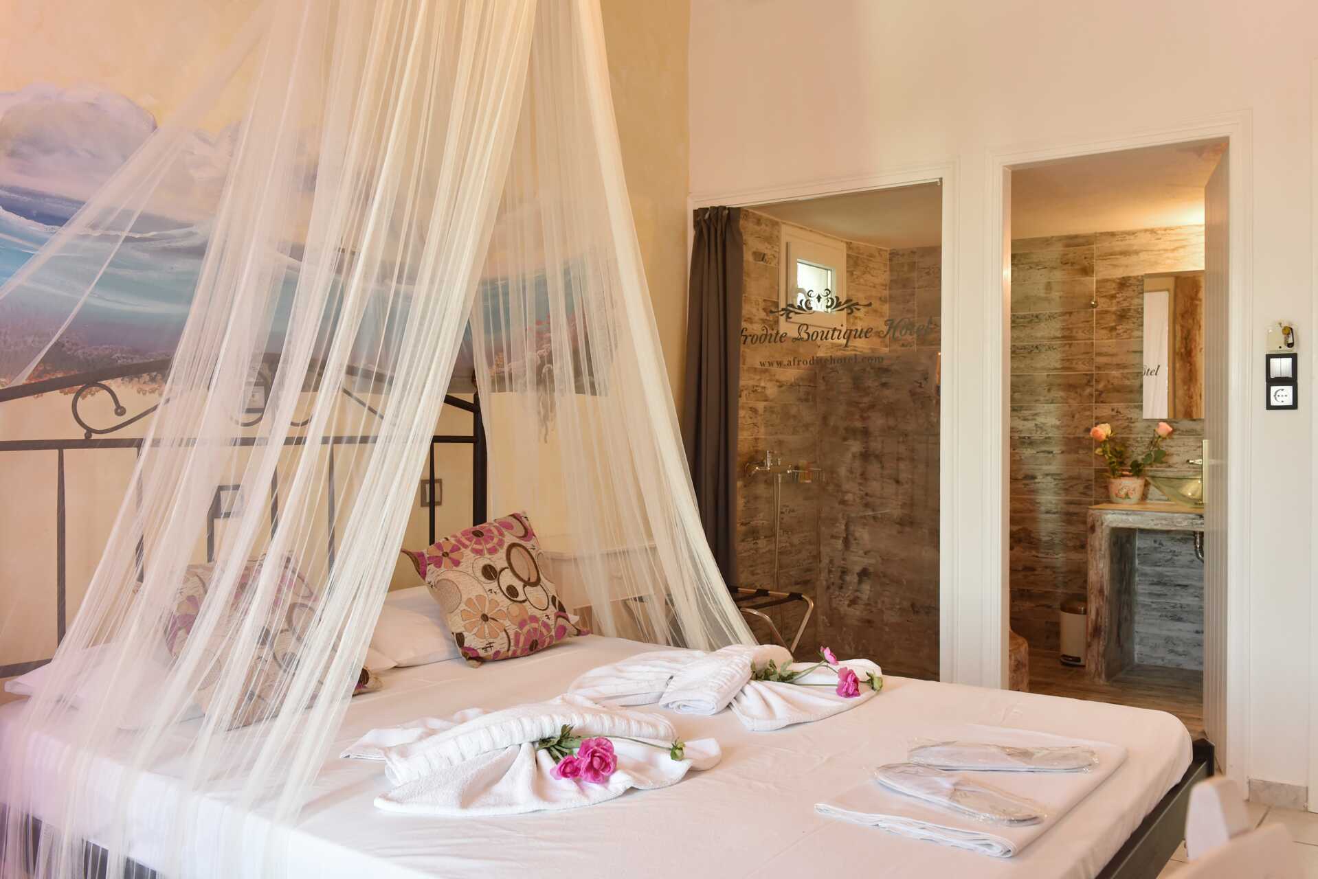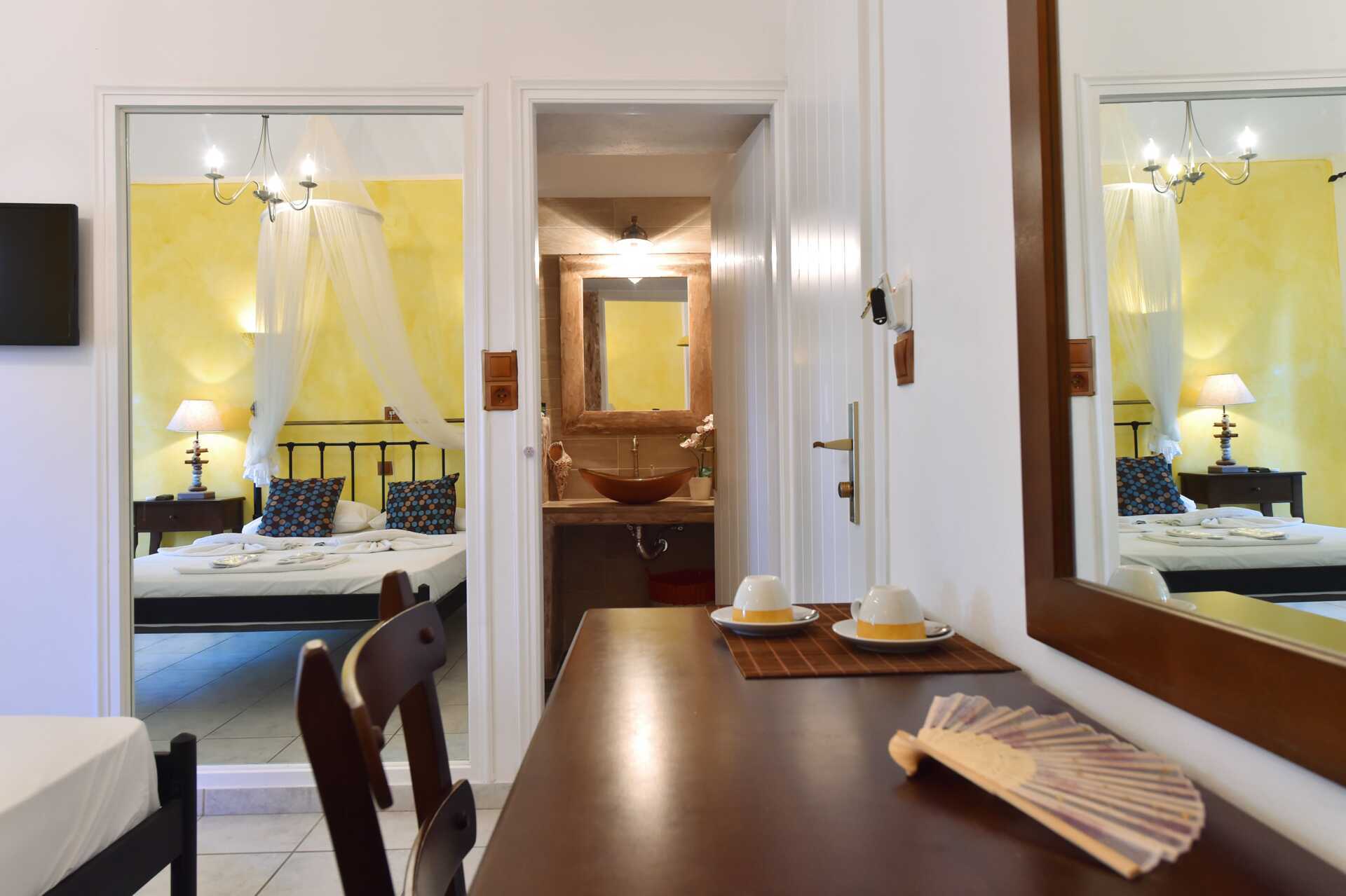 Superiorrom med balkong eller terrasse. Liten og smal jacuzzi på uteplassen eller på badet. En dobbeltseng eller to enkeltsenger. Wifi og luftkondisjonering er inkludert. Kjøleskap. Vannkoker. TV. Hårføner. Dusj og wc. Rengjøring 7 ggr/uke.