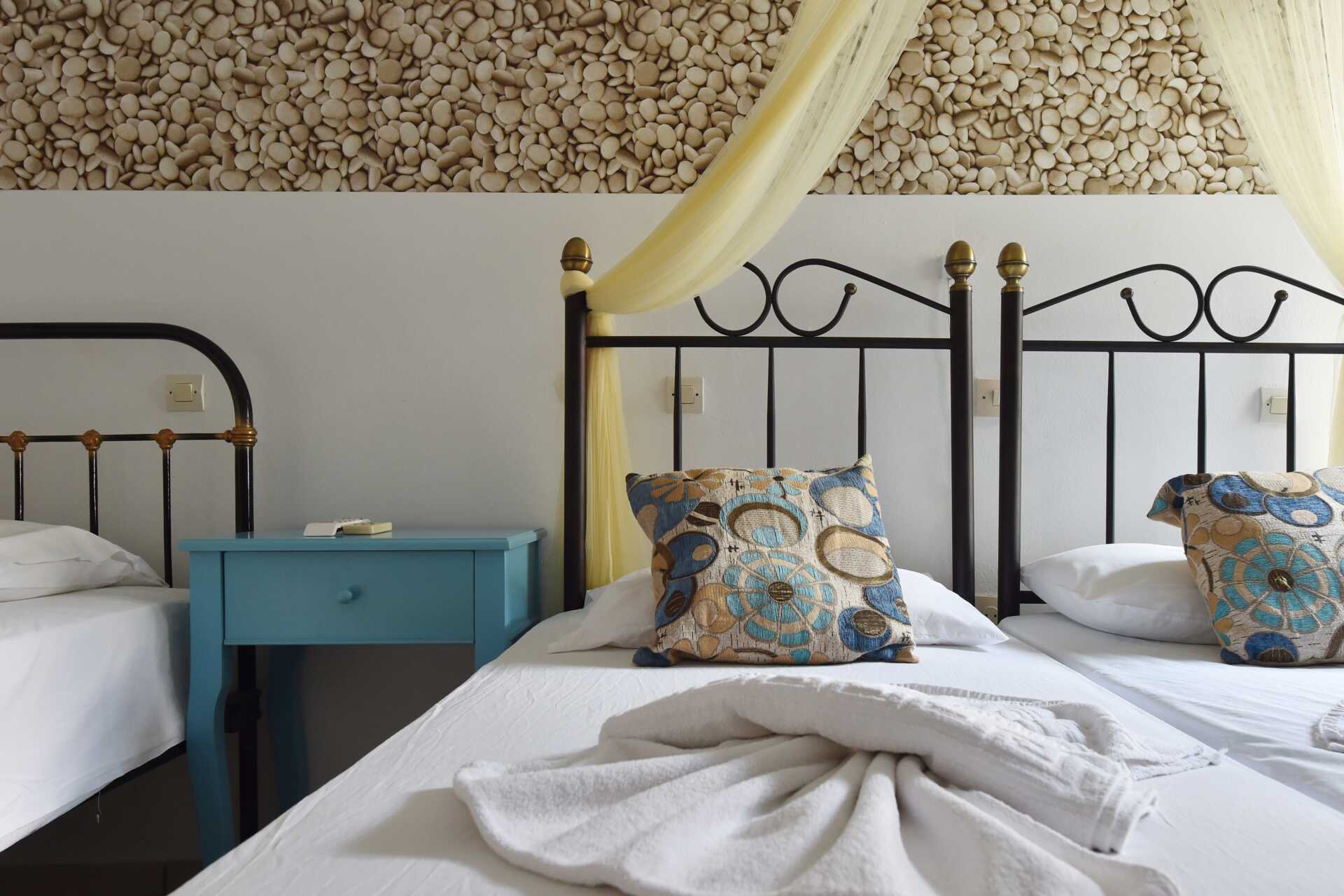 Trippelrom med balkong eller terrasse. En dobbeltseng og en enkeltseng eller tre enkeltsenger. Wifi og luftkondisjonering er inkludert. Kjøleskap. Vannkoker. TV. Hårføner. Dusj og wc. Rengjøring 7 ggr/uke.