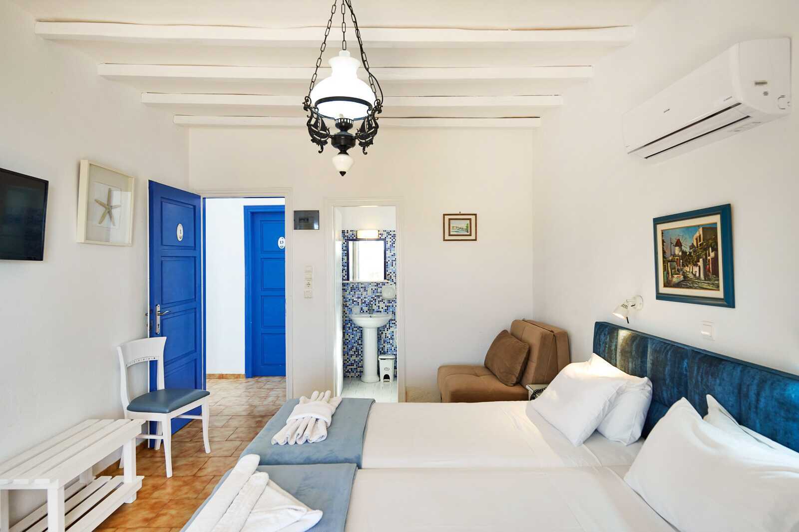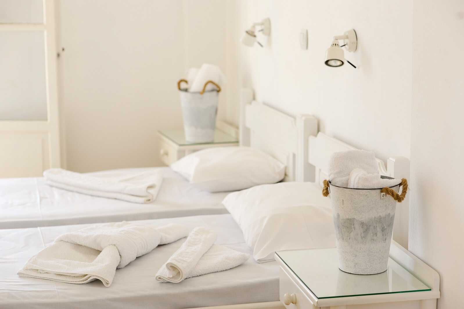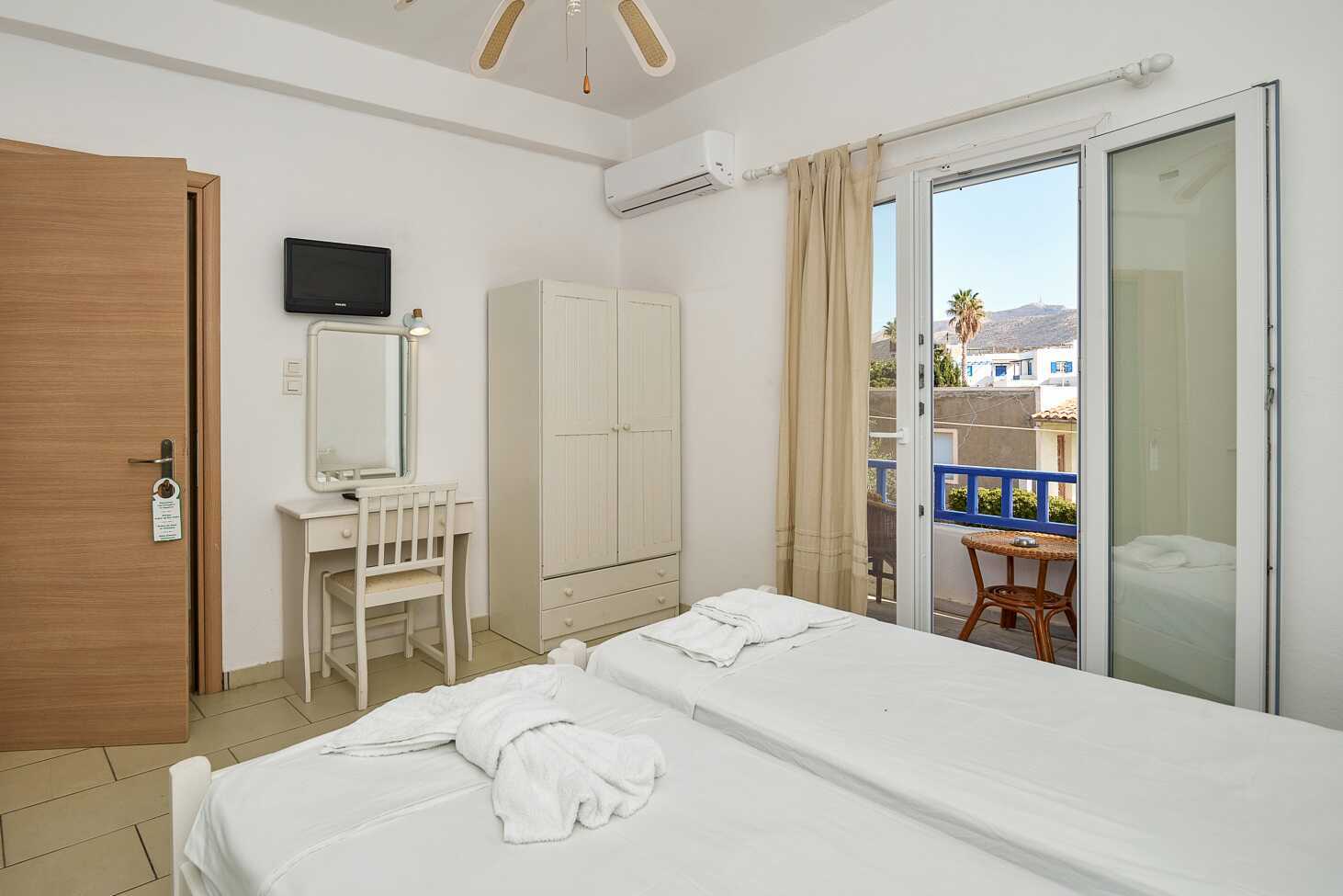 Dobbeltrom med balkong. Noen med havutsikt. En dobbeltseng eller to enkeltsenger. Wifi og luftkondisjonering er inkludert. Kjøleskap. TV. Hårføner. Dusj og wc. Rengjøring 7 ggr/uke. Barn under 2 år regnes inn i maksantallet i rommet.