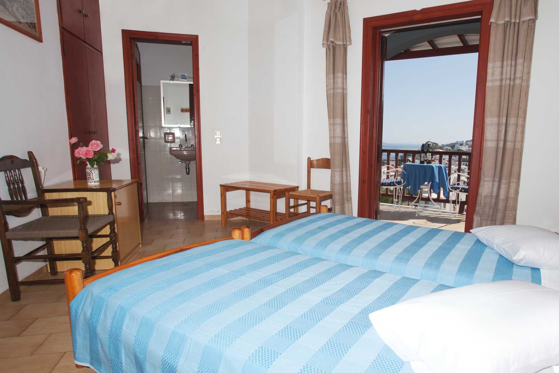 Fra Castelli på Patmos har du en fantastisk utsikt over havna i Skala. Hotellet er enkelt og bekvemt. Frokostservering.