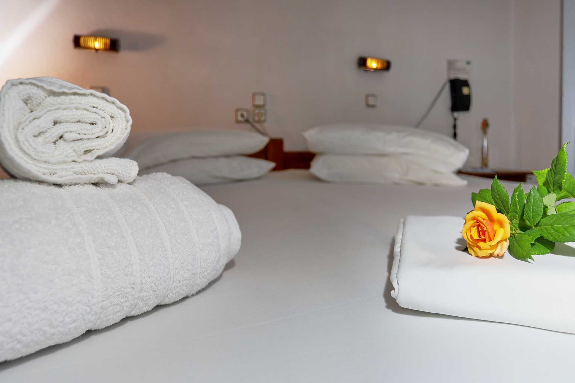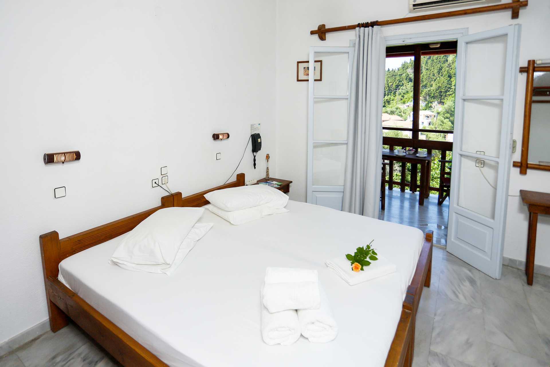 Dobbeltrom med balkong eller terrasse. En dobbeltseng eller to enkeltsenger. Wifi, luftkondisjonering og safe inkludert. Wifi er kun tilgjengelig på uteplassen. Kjøleskap. TV. Hårføner. Badekar eller dusj og wc. Rengjøring 7 ggr/uke.