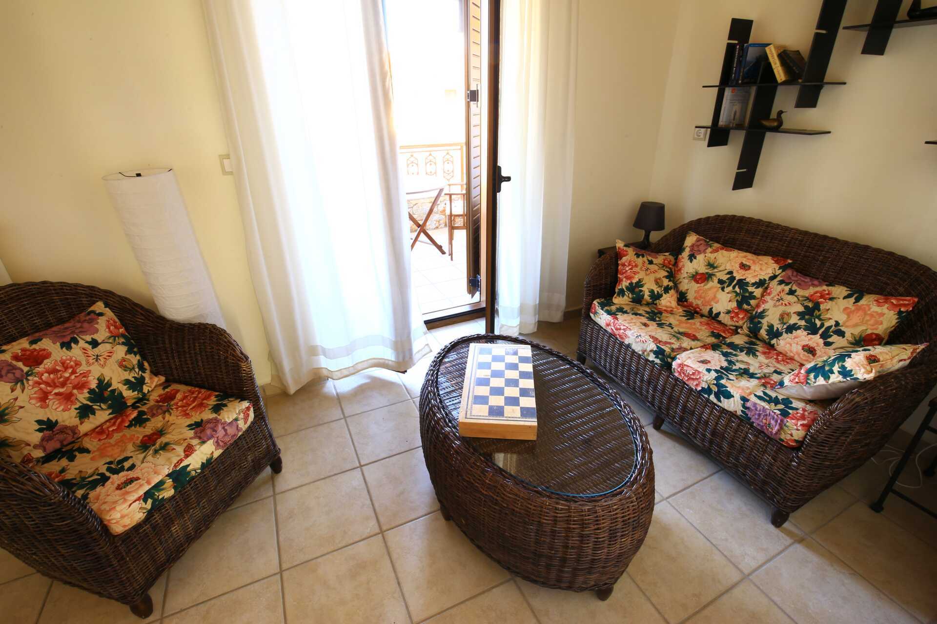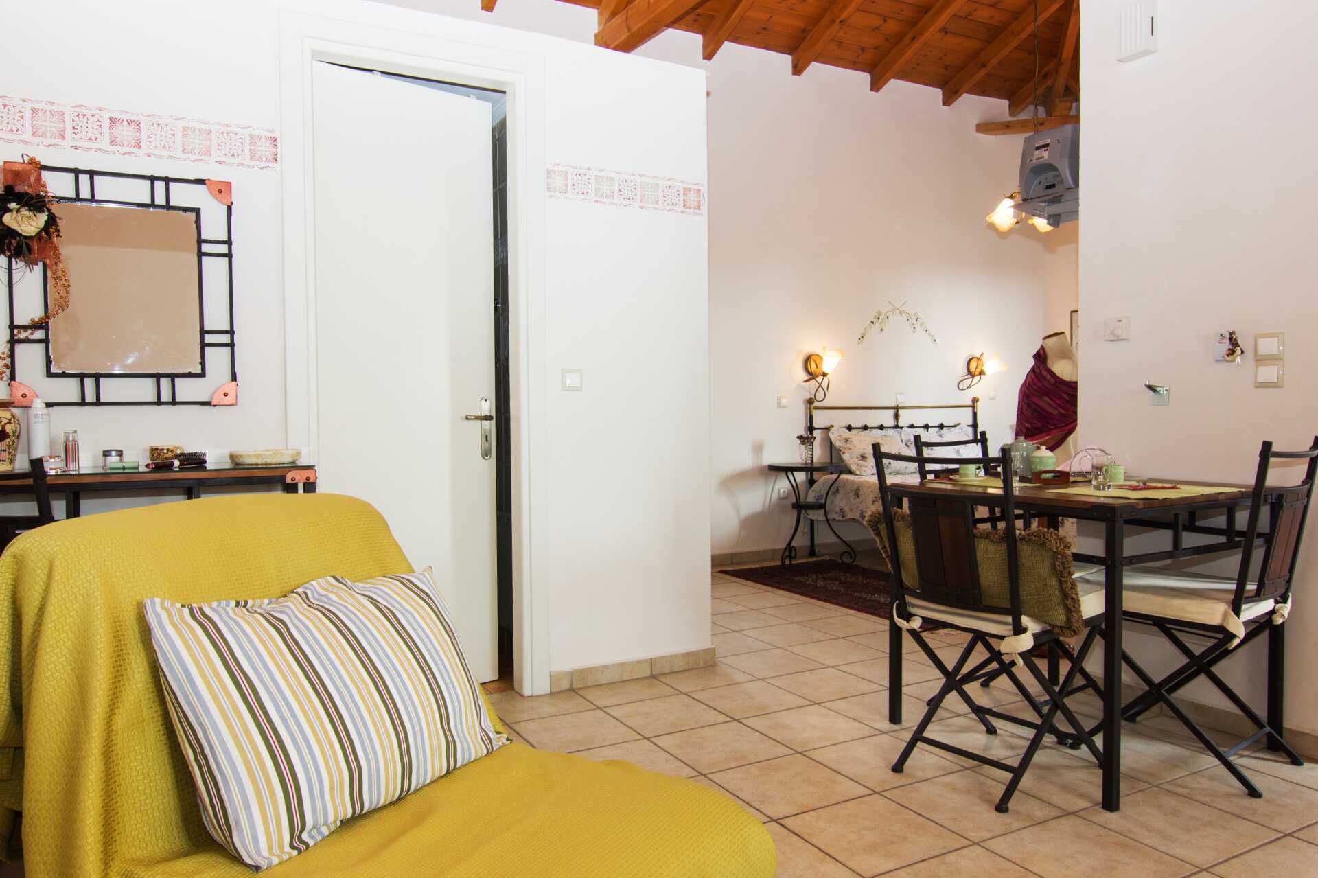 Ettromsleilighet i etasje med balkong eller terrasse. Det er oppholdsrom i inngangsetasjen med sovesofa og et bad med dusj og wc. En trapp opp er det et soverom med en dobbeltseng, balkong og bad med dusj og wc. Minikjøkken med komfyr med stekeovn, kjøleskap med fryserom, vannkoker, sandwichgrill, brødrister og enkel kjøkkenutstyr. Wifi, luftkondisjonering og safe er inkludert. TV. Hårføner. Dusj og wc. Rengjøring 6 ggr/uke.