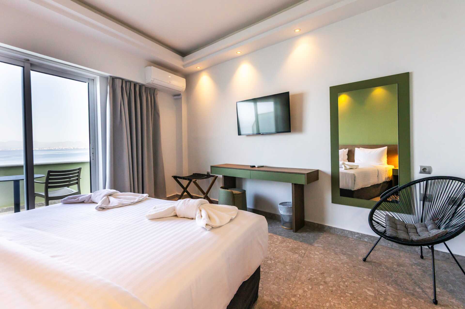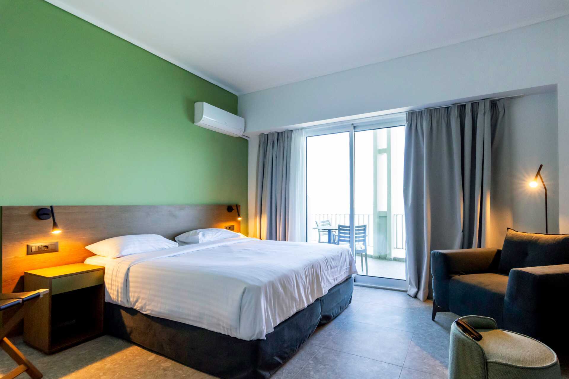 Dobbeltrom med balkong og havutsikt. En dobbeltseng eller to enkeltsenger. Mulig med ekstraseng i feltseng. Wifi, luftkondisjonering og safe inkludert. Kjøleskap. TV. Hårføner. Badekar eller dusj samt wc. Rengjøring 7 ggr/uke.