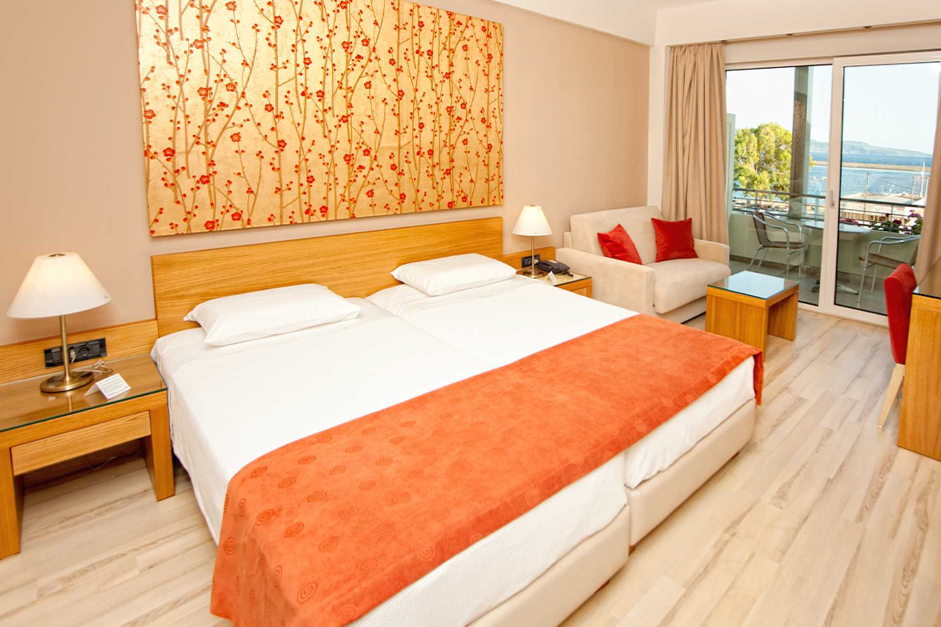 Superiorrom med balkong og havutsikt. En dobbeltseng eller to enkeltsenger. Mulig med en ekstraseng i en sovesofa eller i en oppredbar lenestol. Wifi, luftkondisjonering og safe inkludert. Kjøleskap. Vannkoker samt kaffe og te. TV. Hårføner. Badekar eller dusj og wc. Rengjøring 7 ggr/uke. Barn under 2 år regnes inn i maksantallet i rommet.