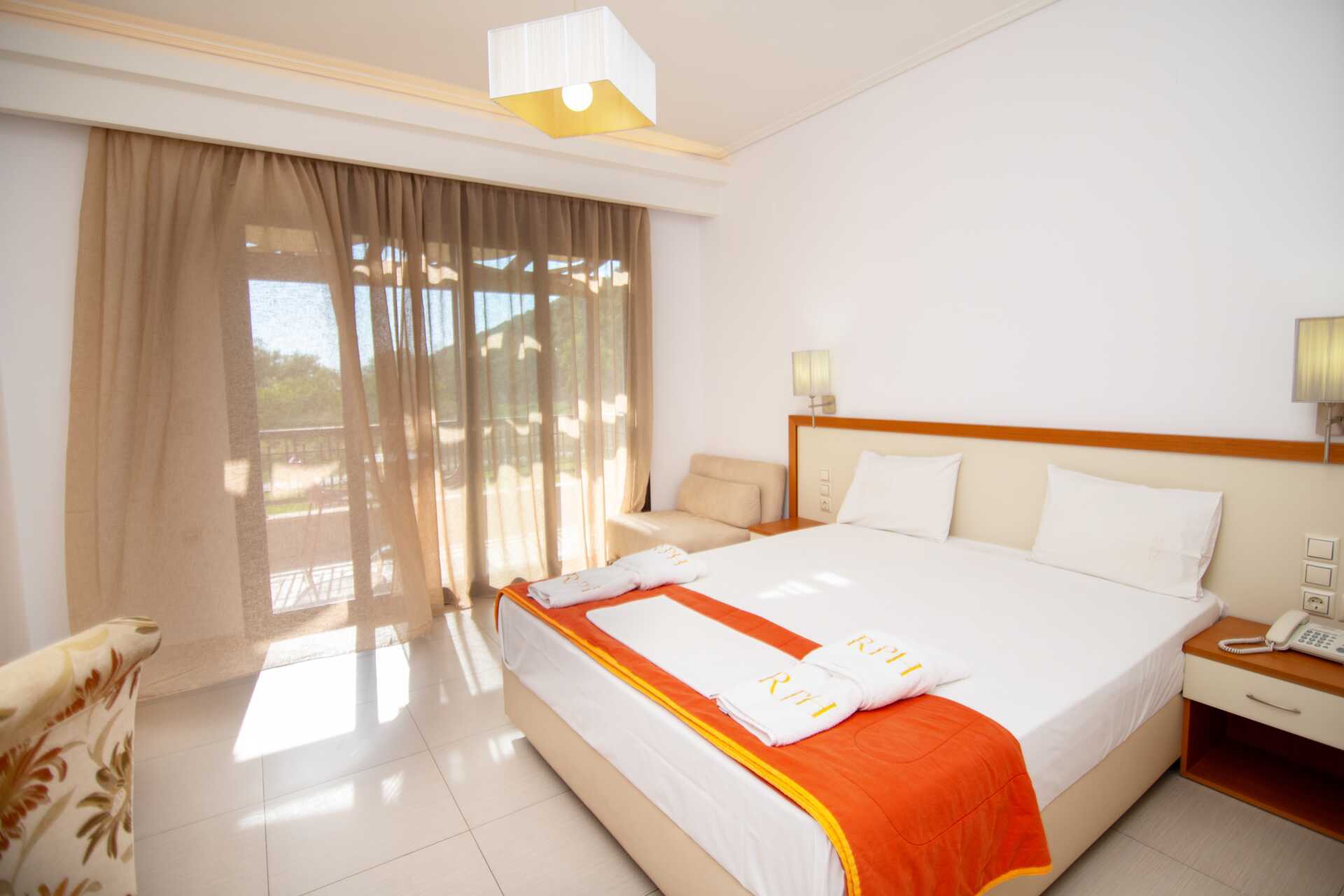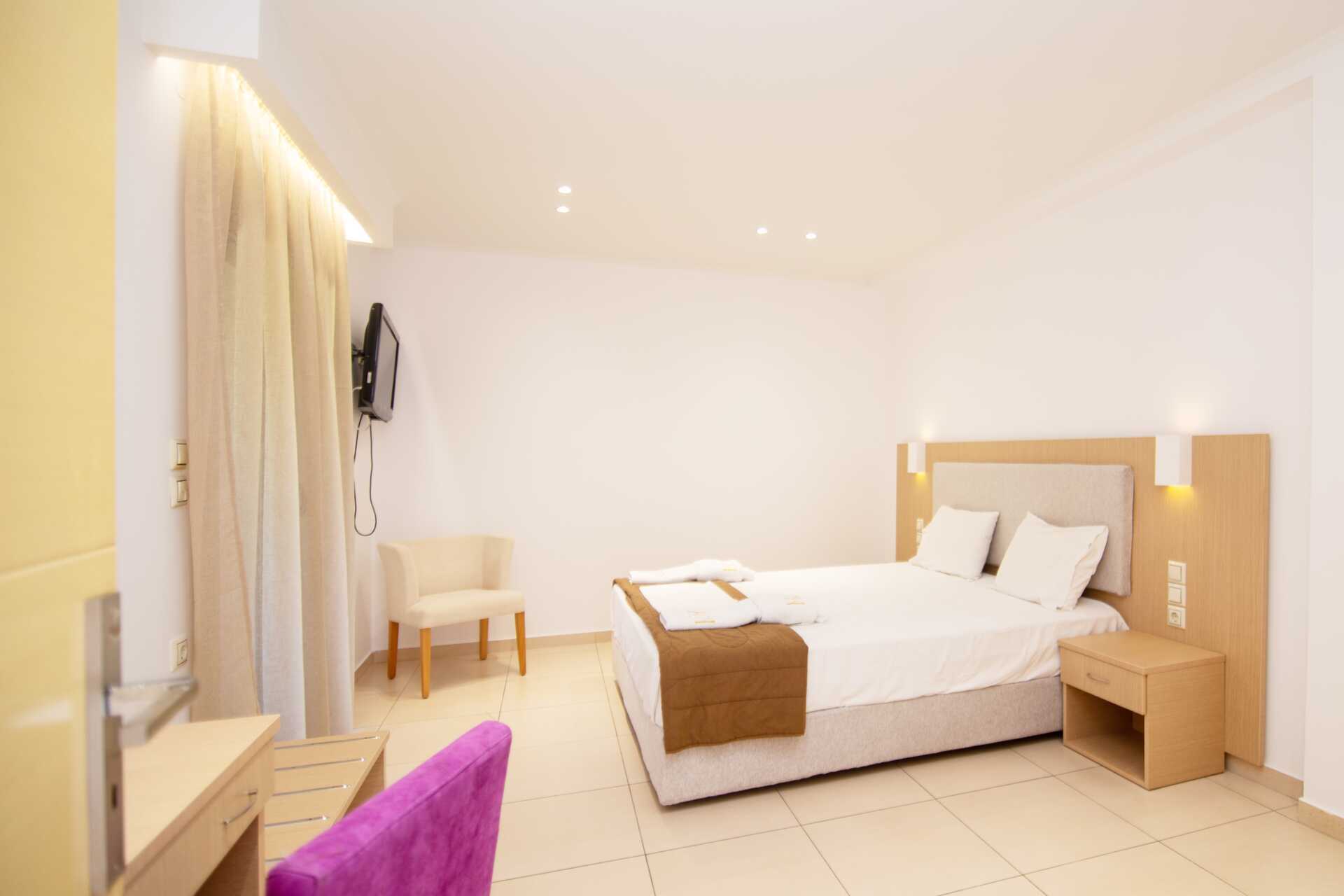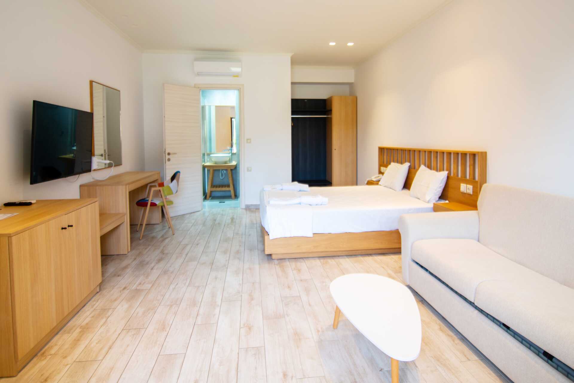 Dobbeltrom med balkong. En dobbeltseng. Mulighet med ekstraseng i sovesofa. Wifi, luftkondisjonering og safe inkludert. Minibar. TV. Hårføner. Dusj og wc. Rengjøring 6 ggr/uke.