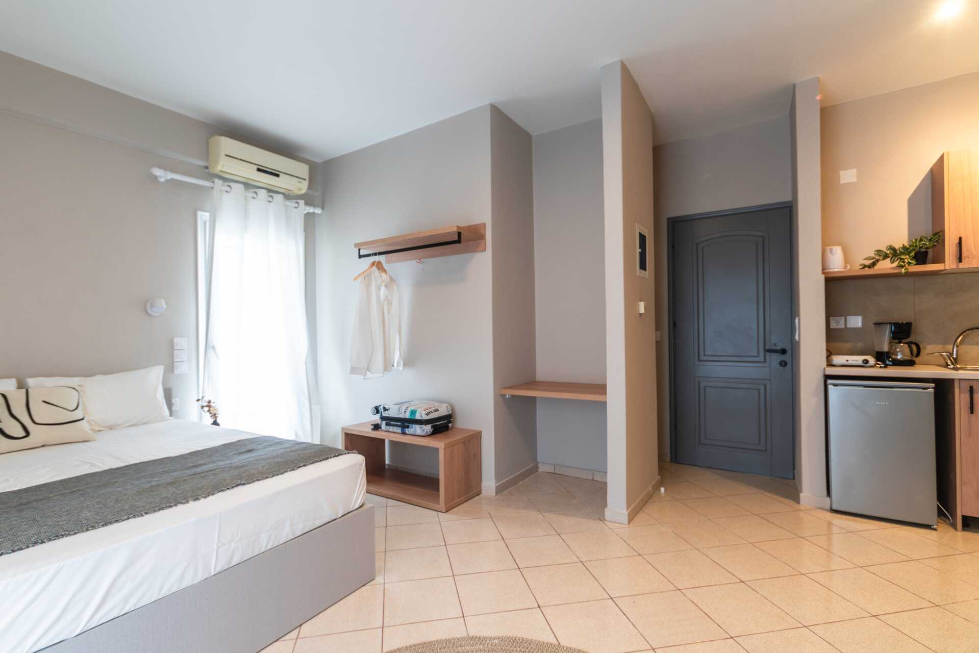 Dobbeltrom med balkong, noen med havutsikt. Minikjøkken. En dobbeltseng eller to enkeltsenger. Mulig med ekstraseng i ordinær seng. Wifi og luftkondisjonering er inkludert. Kjøleskap. TV med lokale kanaler. Tøfler. Dusj og wc. Rengjøring 5 ggr/uke.