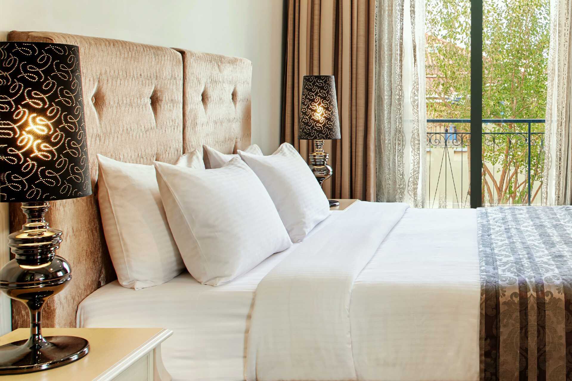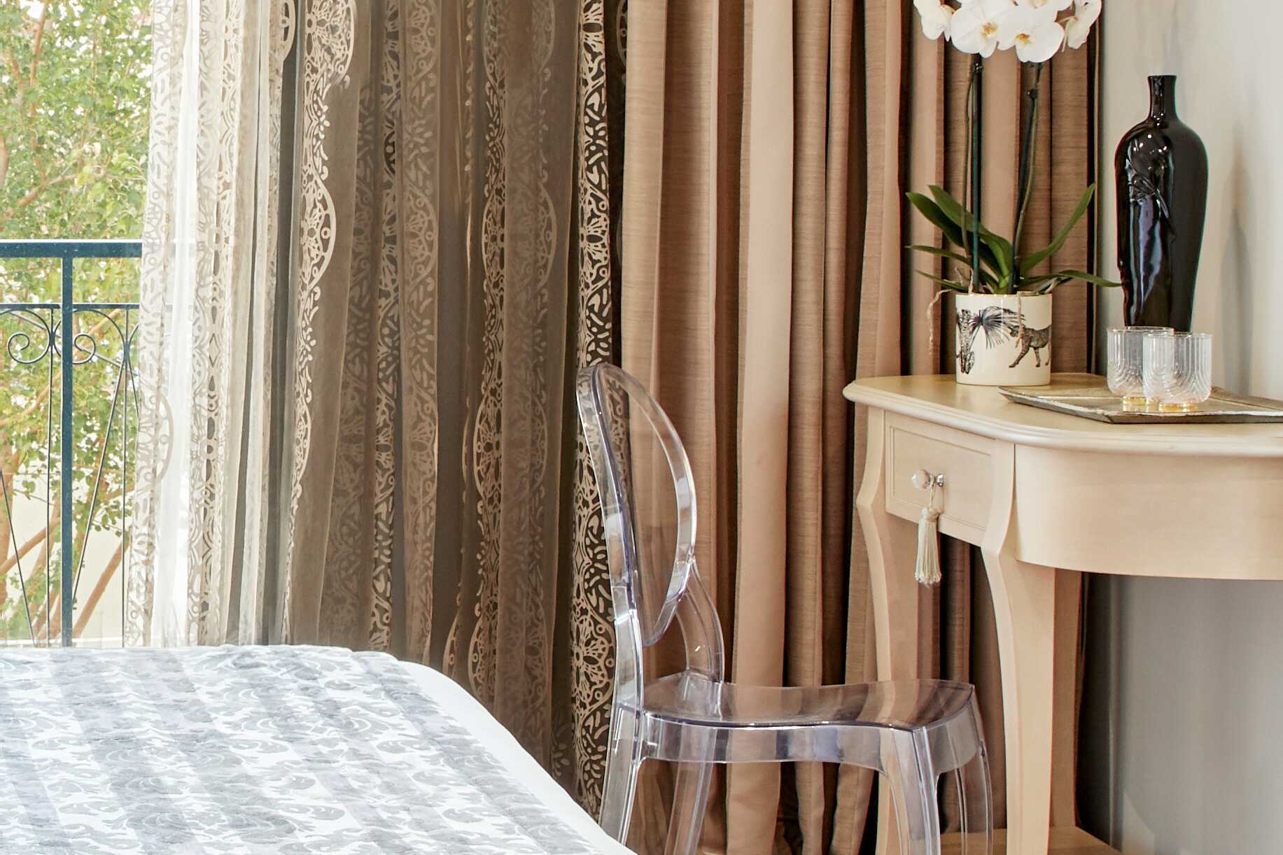 Deluxesuite med fransk balkong. Rommet har et soverom og en stue med sovesofa. En dobbeltseng og mulighet for en ekstraseng i sovesofa. Wifi, luftkondisjonering og safe inkludert. Kjøleskap. Nespresso kaffemaskin, kapsler inkludert. TV. Hårføner. Tøfler. Bad med dusj og wc. Rengjøring 7 ggr/uke. Barn under 2 år regnes inn i maksantallet i rommet.